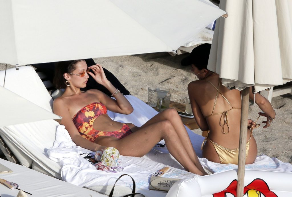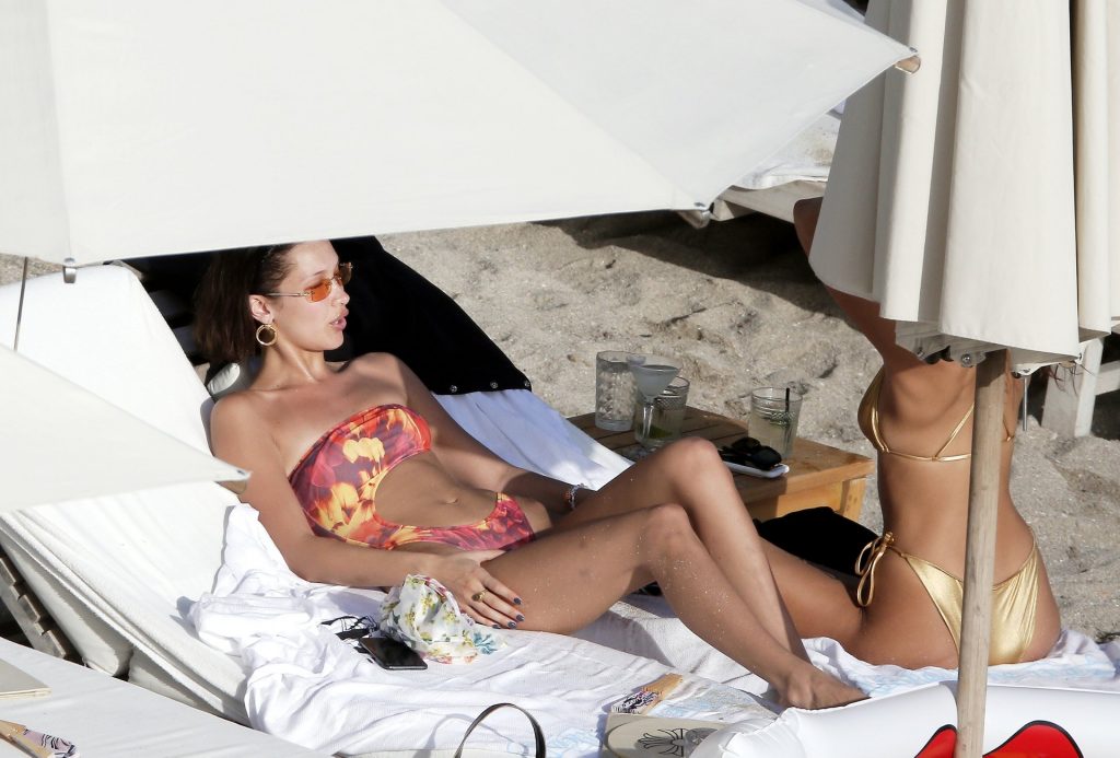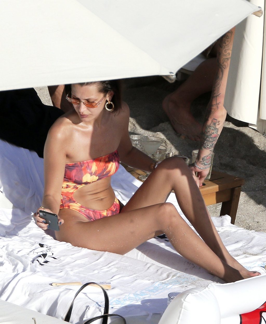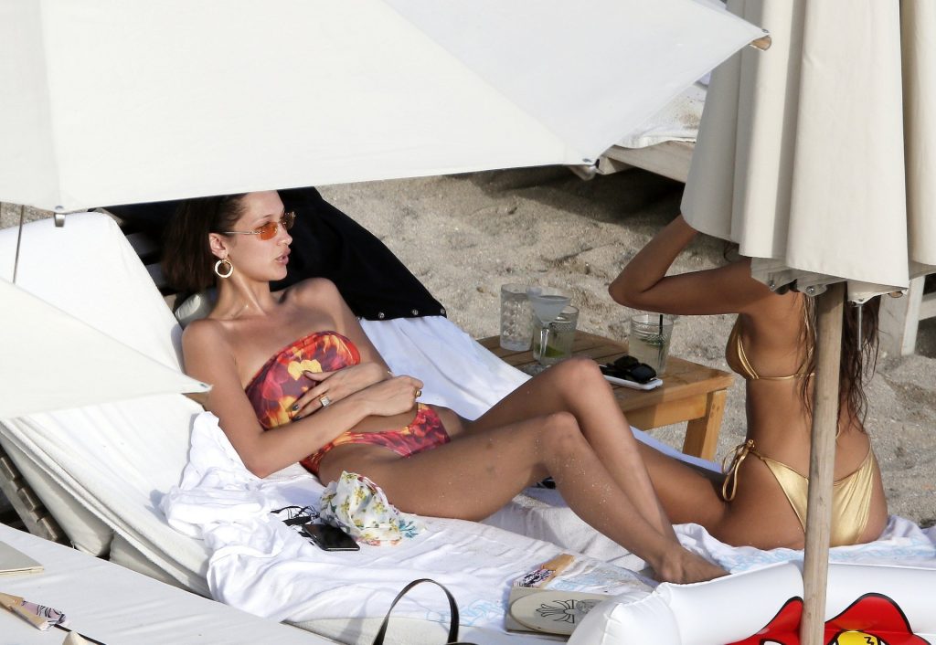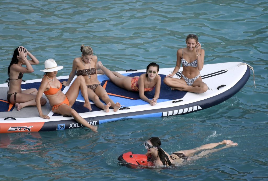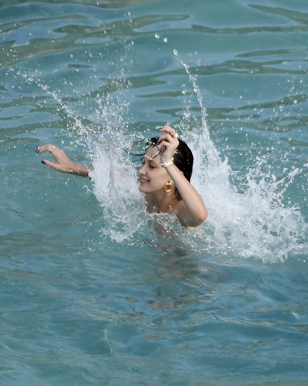 Bella Hadid exibe seu físico incrível em um biquíni minúsculo enquanto aproveita o sol do Caribe com amigos incluindo Jesse Jo Stark, Jordan Barrett, Devon Carlson e Lauren Perez em St Barths, 12/07/2019.