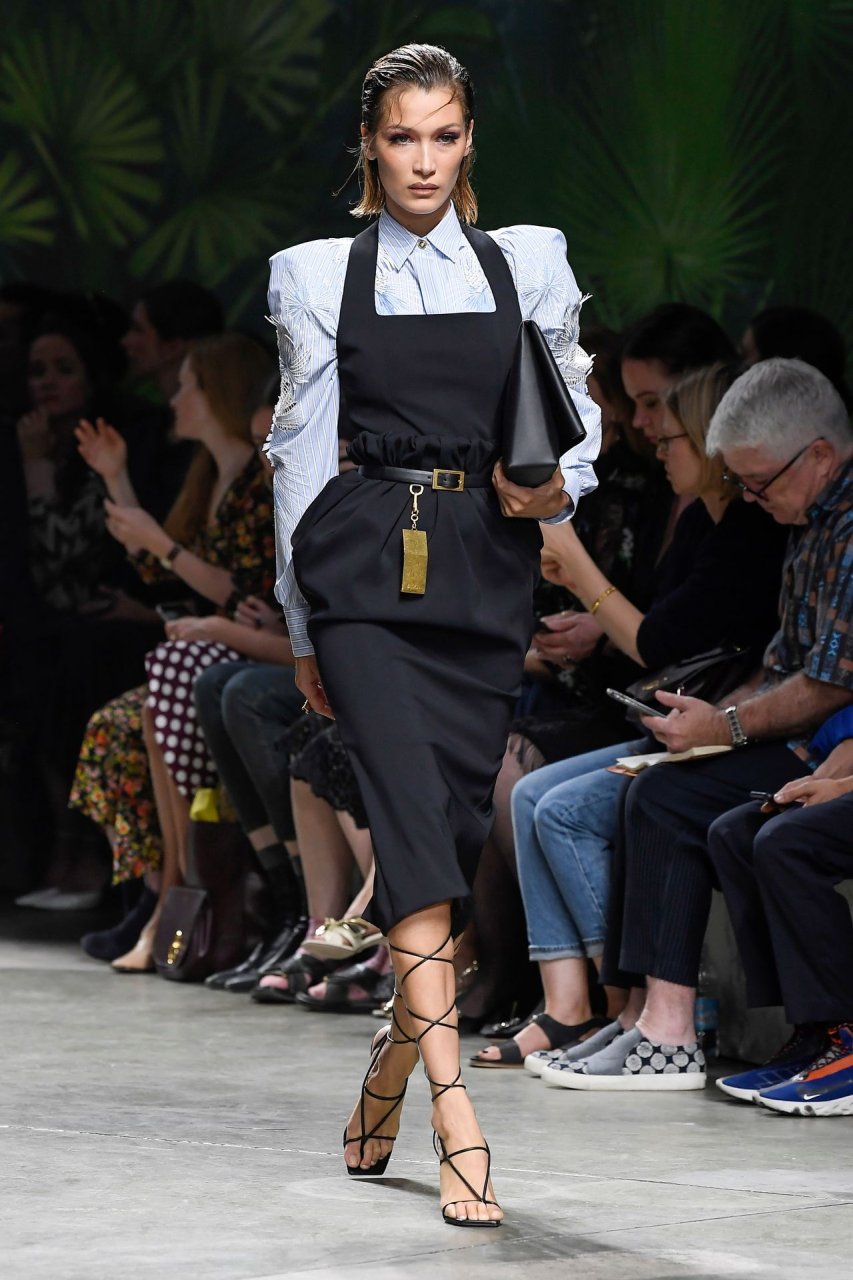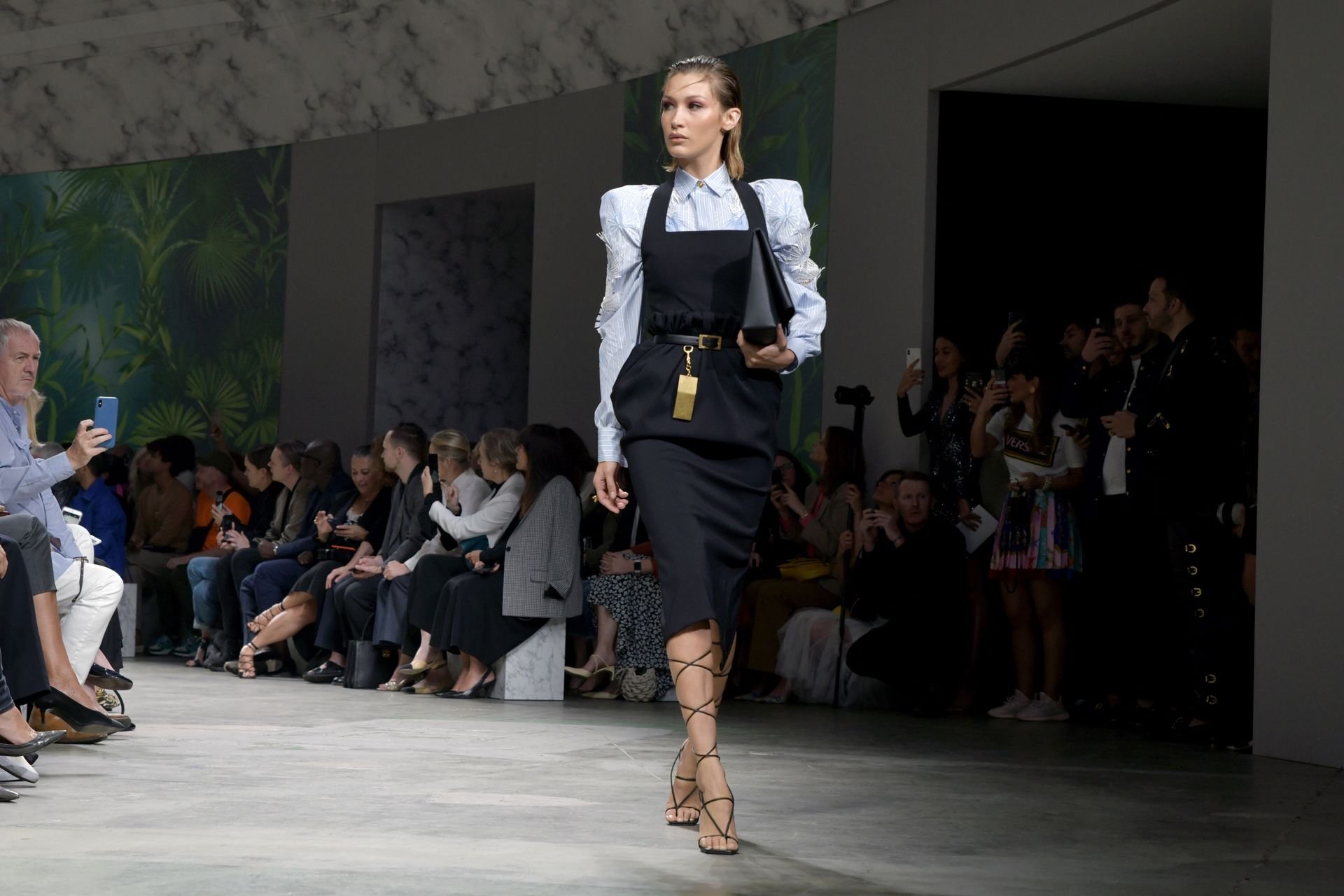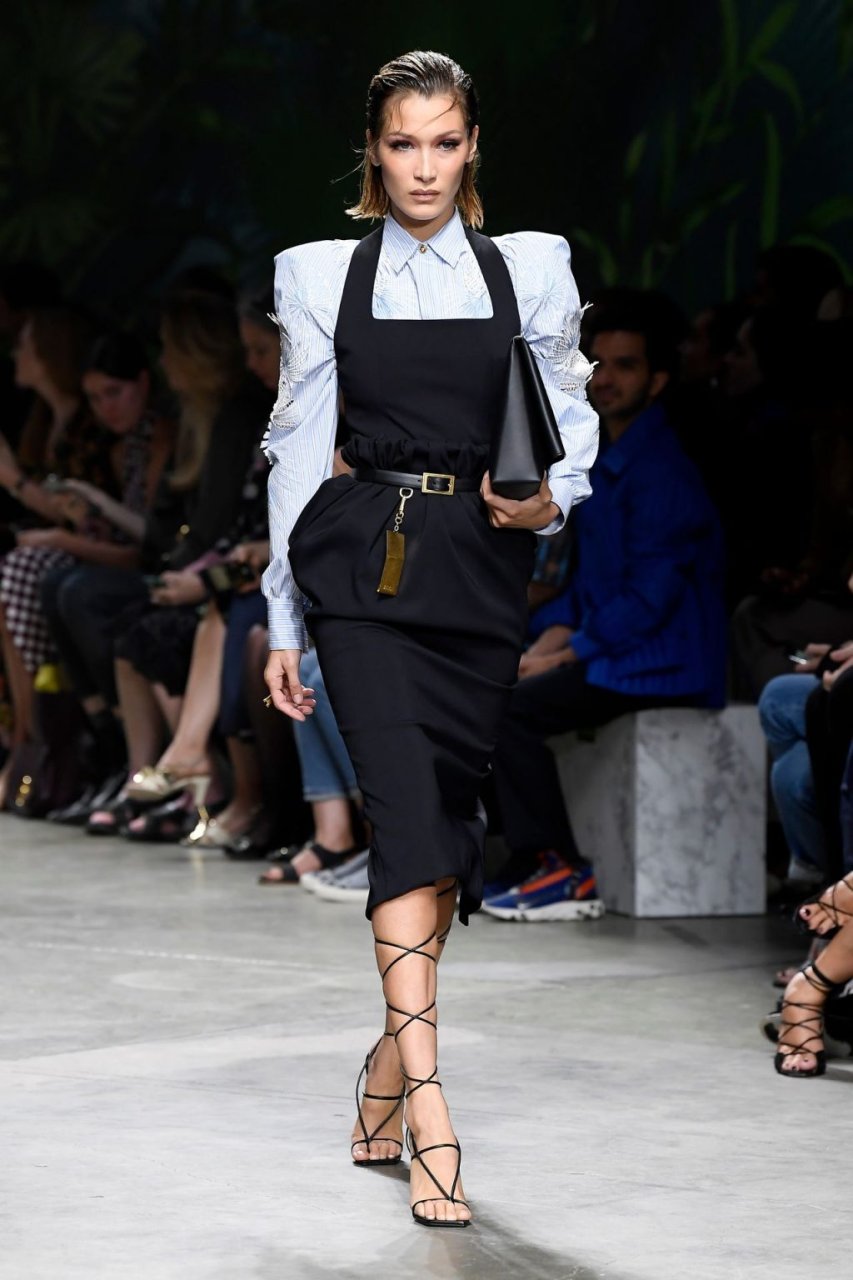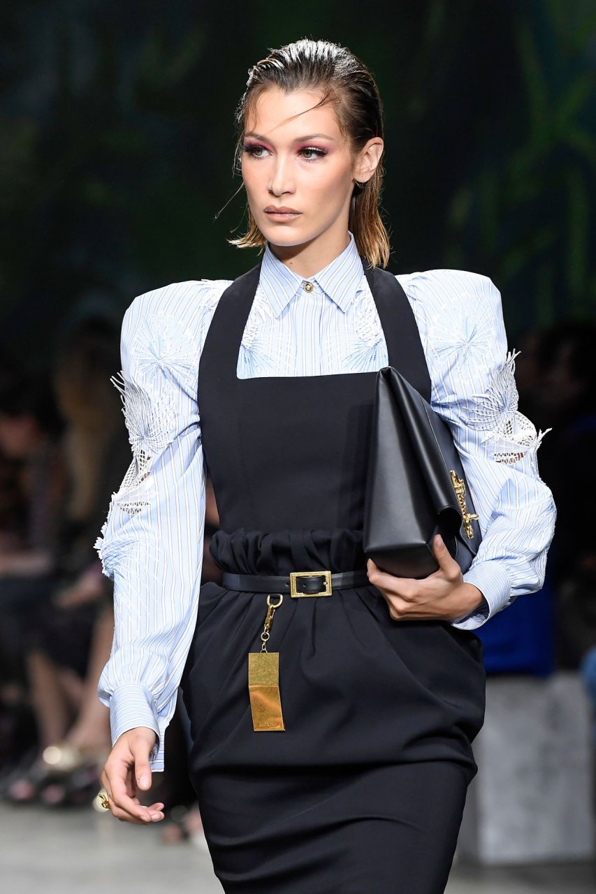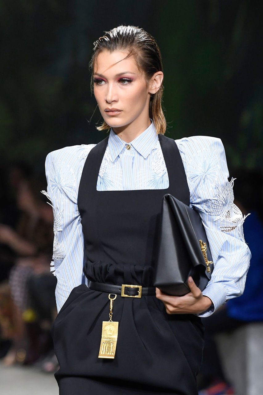 Model Bella Hadid na passarela com diferentes roupas no desfile Versace Primavera/Verão 2020 durante a Semana de Moda de Milão na Itália, 20/09/2019.
