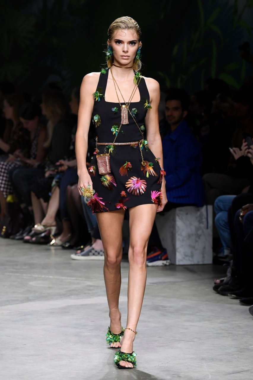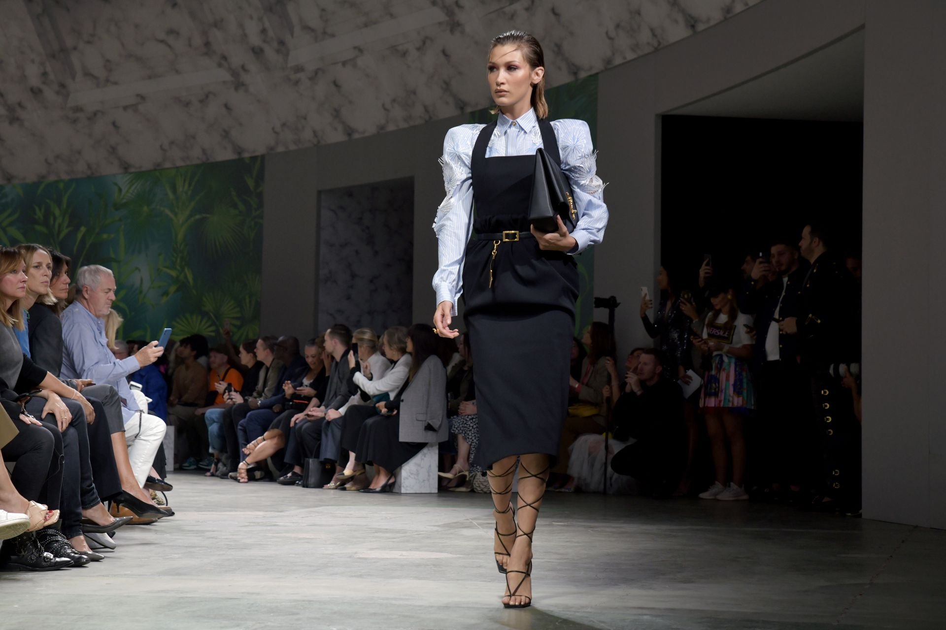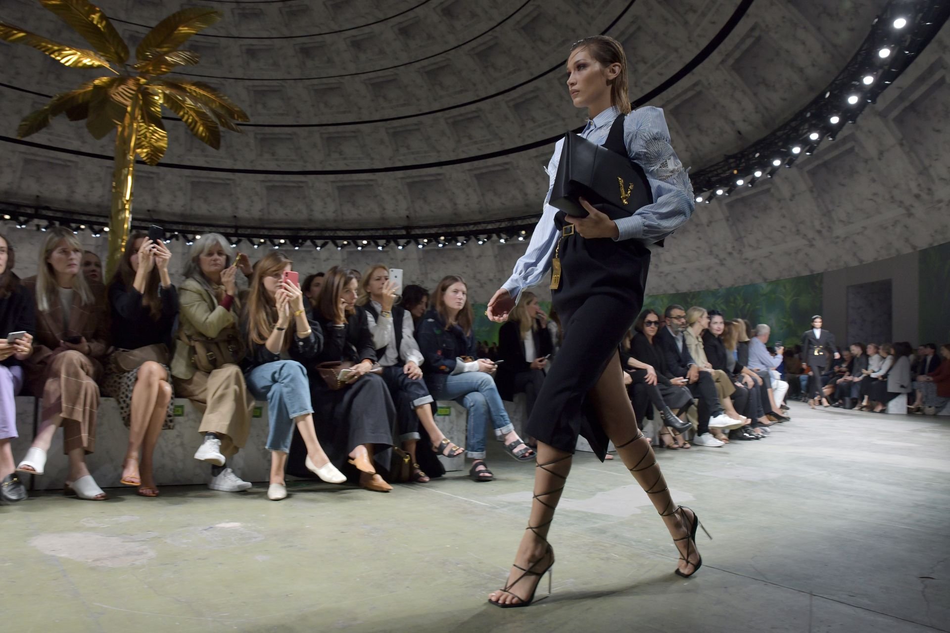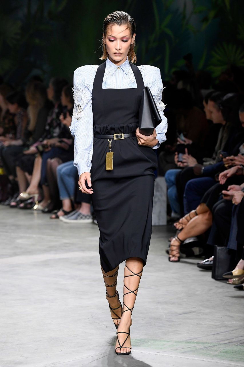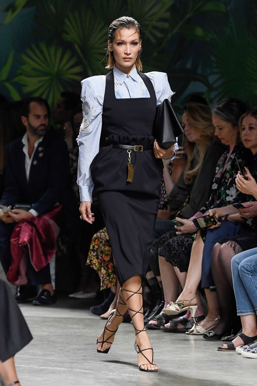 Model Bella Hadid na passarela com diferentes roupas no desfile Versace Primavera/Verão 2020 durante a Semana de Moda de Milão na Itália, 20/09/2019.