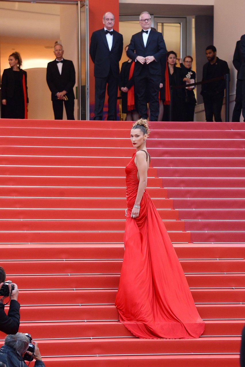 Model Bella Hadid foi vista usando um vestido vermelho na estreia de “Dolor Y Gloria” durante o 72º Festival de Cinema de Cannes em Cannes, França, 17/05/2019.