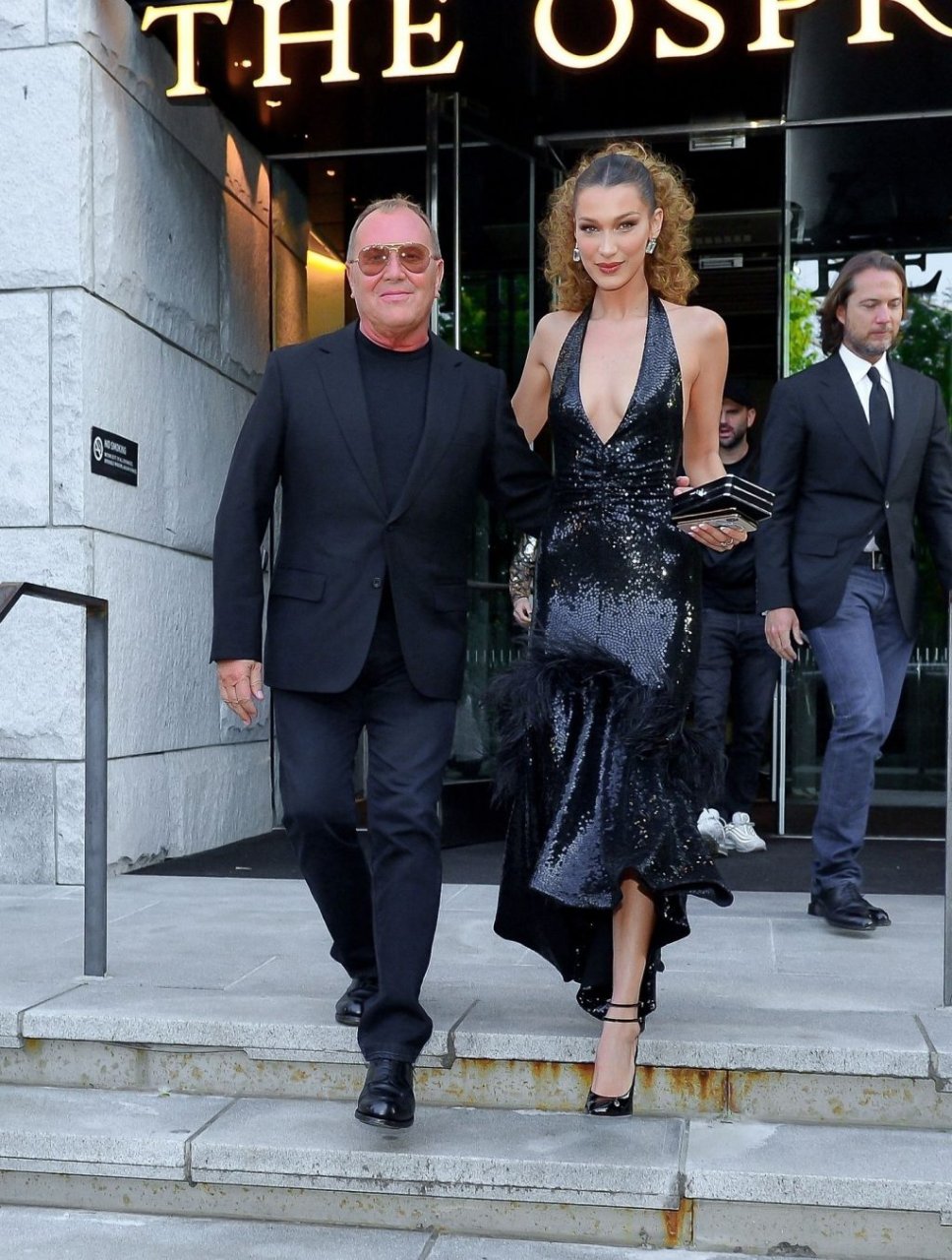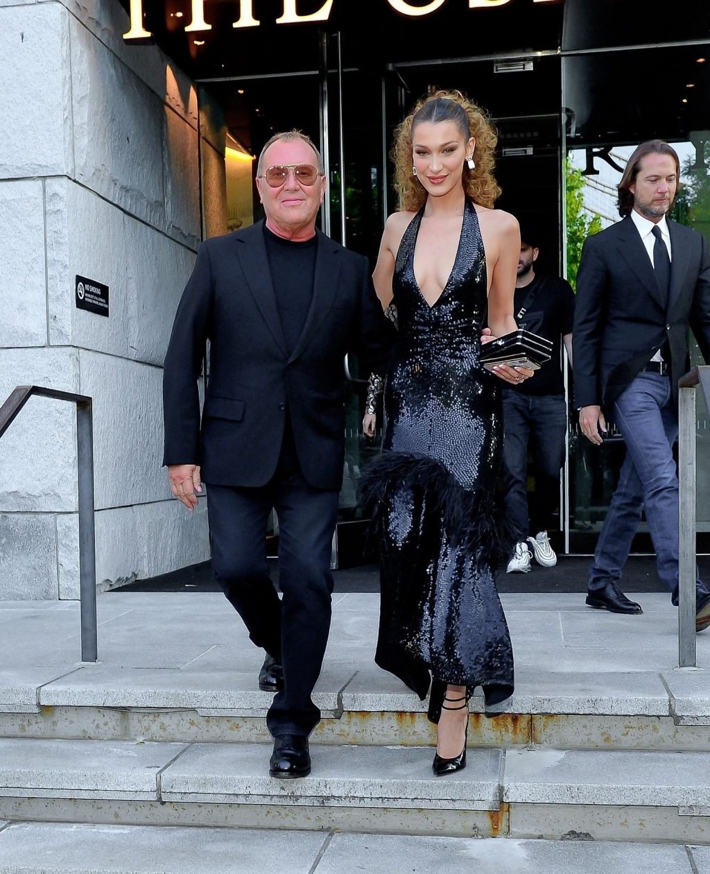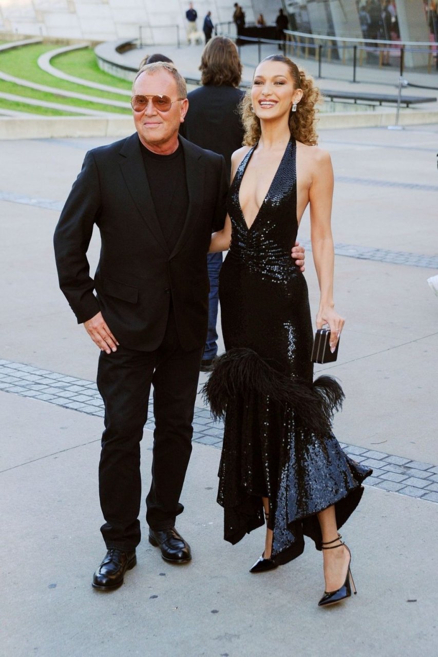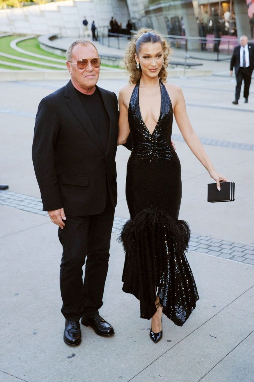 Modelo Bella Hadid usa vestido cintilante decotado no CFDA Fashion Awards com Michael Kors em Nova York, 03/06/2019.