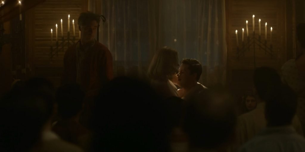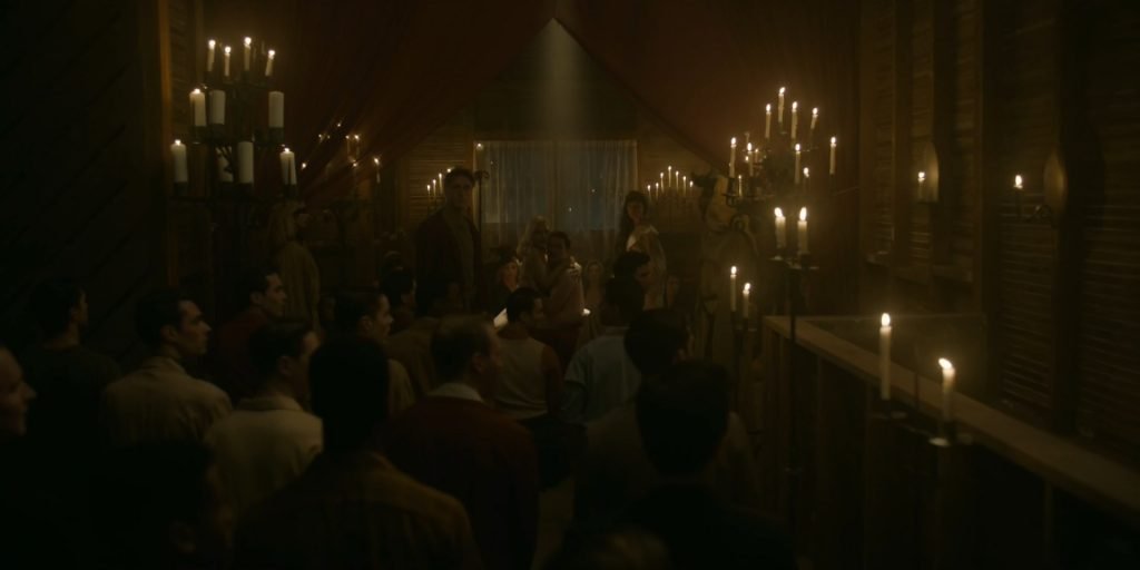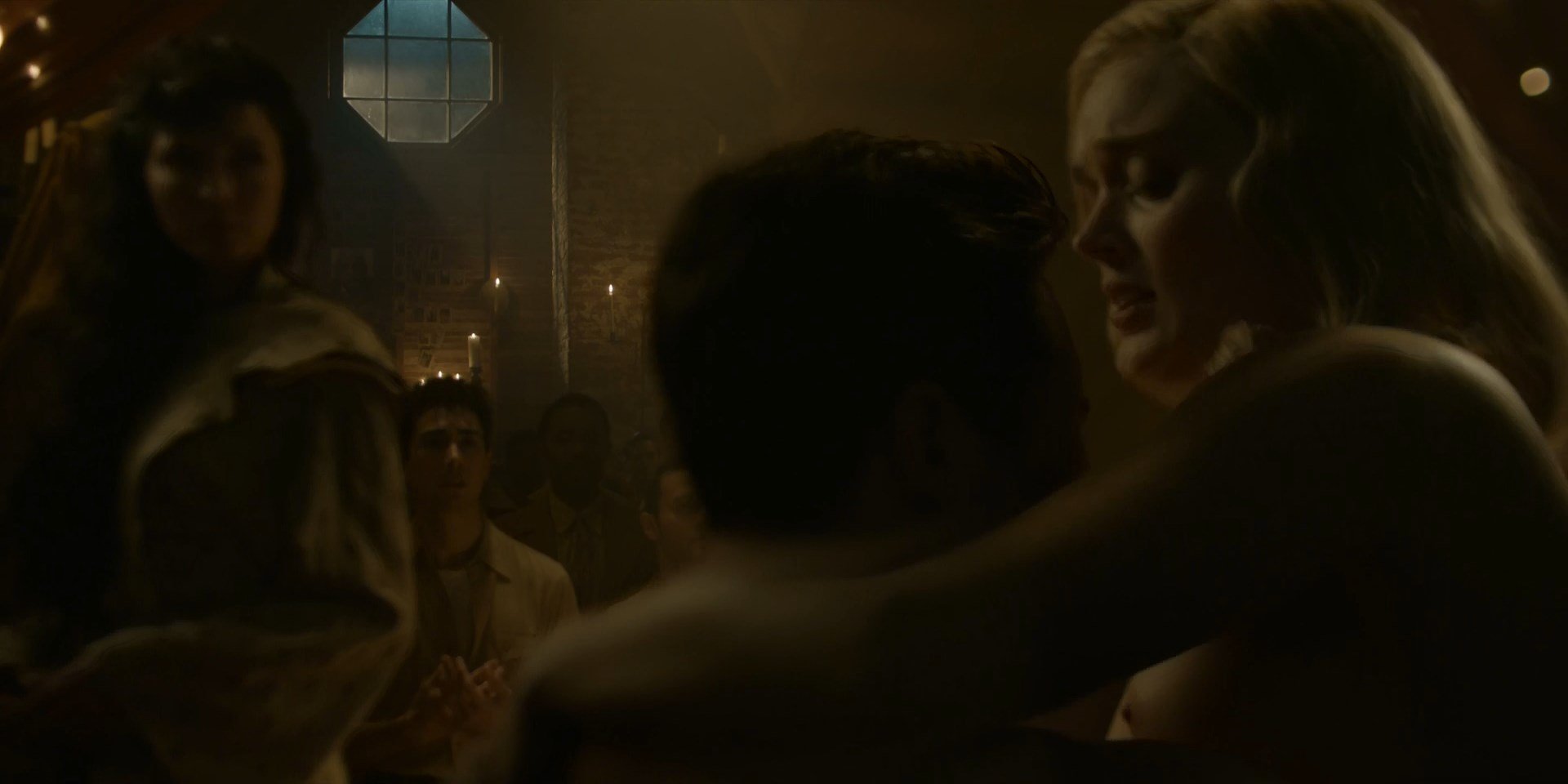 Assista à cena nua de Bella Heathcote em “Strange Angel” (2019) Temporada 2 Episódio 1 (s02e01), onde você pode ver seus seios enquanto ela se movimenta para cima e para baixo nos braços do rapaz. Ela está fazendo sexo no colo de um homem na frente de um grupo de pessoas assistindo a um ritual.