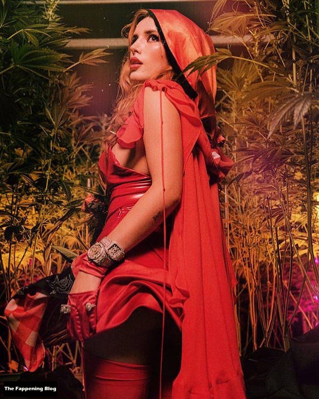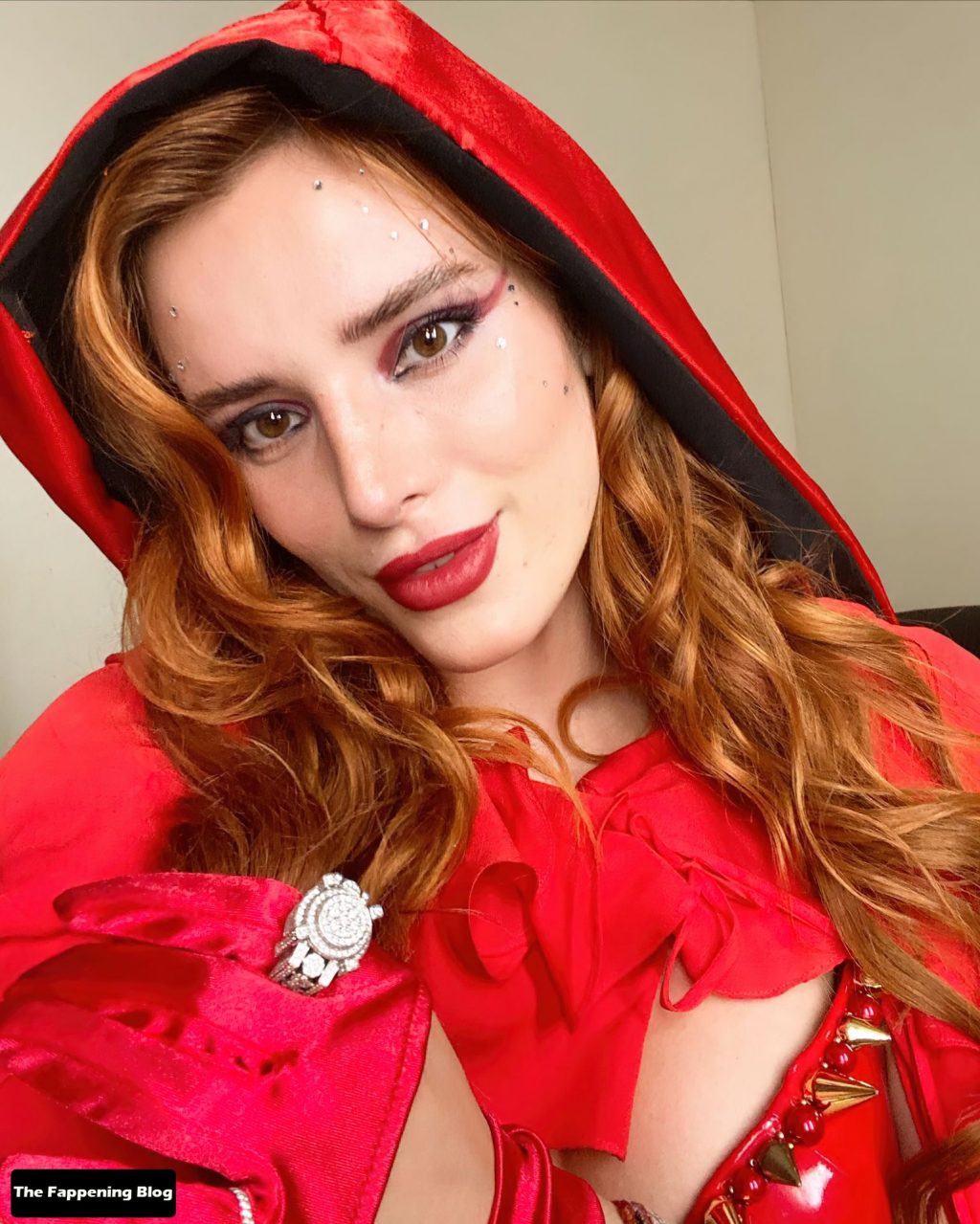 A estrela de The Fappening Bella Thorne exibe seus lindos seios vestida como Chapeuzinho Vermelho (outubro de 2021).