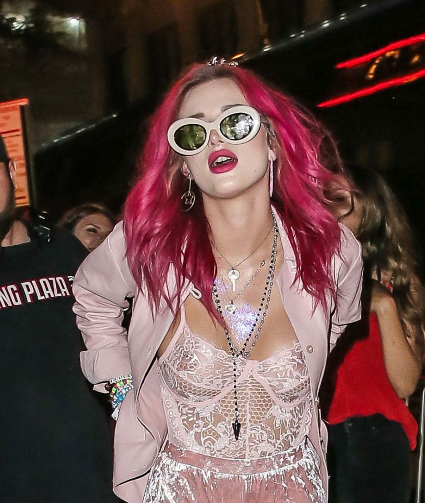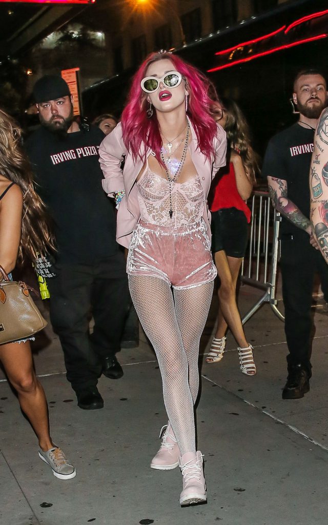 Bella Thorne usa uma lingerie rosa transparente no Irving Plaza em Nova York, 08/07/2017. Bella Thorne é modelo, atriz (Be Here Now), cantora e estrela das redes sociais. Idade: 19.