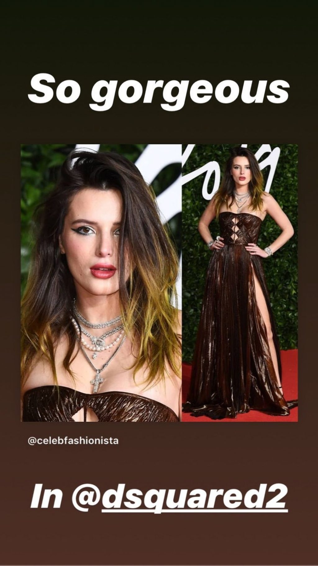 Bella Thorne foi vista enquanto participava do The Fashion Awards 2019 e da afterparty no Royal Albert Hall em Londres, 02/12/2019. A atriz/cantora escolheu um vestido marrom para o evento, exibindo sua perna.