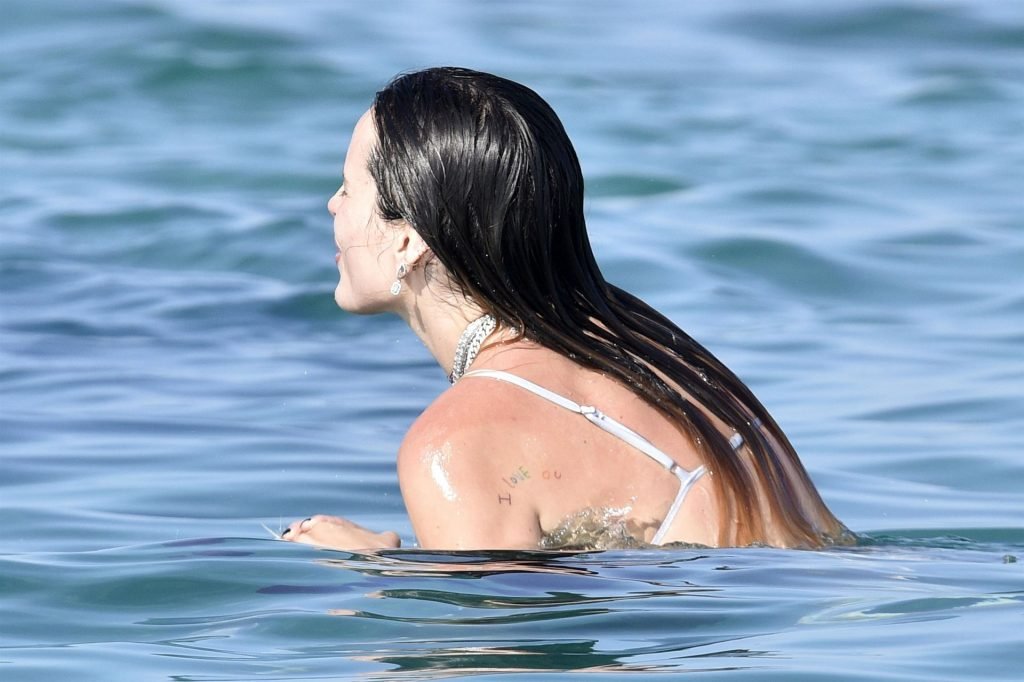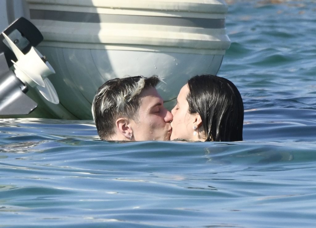 O casal apaixonado é visto nadando, se beijando na água e Bella até encontra tempo para beber uma cerveja enquanto está no mar! Enquanto isso, o casal feliz parece incrível em trajes de banho, Bella está usando um biquíni prateado.