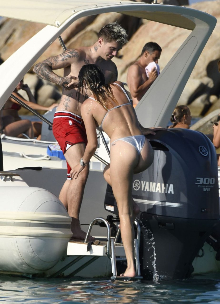 Bella Thorne exibe sua forma enquanto aproveita as férias na Sardenha com seu namorado Benjamin Mascolo, 21/08/2019. O novo casal foi visto se divertindo em suas férias cheias de demonstrações públicas de afeto.