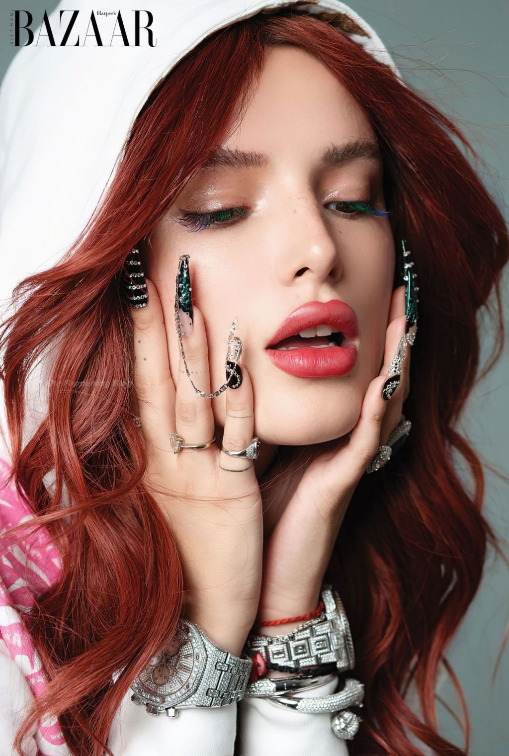A estrela de The Fappening Bella Thorne esquece seu marido e os fãs do OF e posa sem nudez em um ensaio fotográfico sexy para a edição de maio de 2021 da Harper’s Bazaar Vietnam.