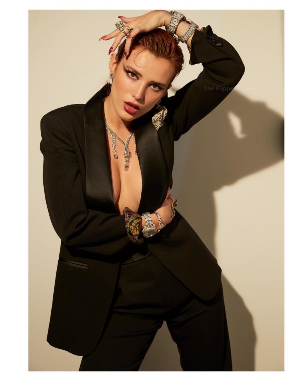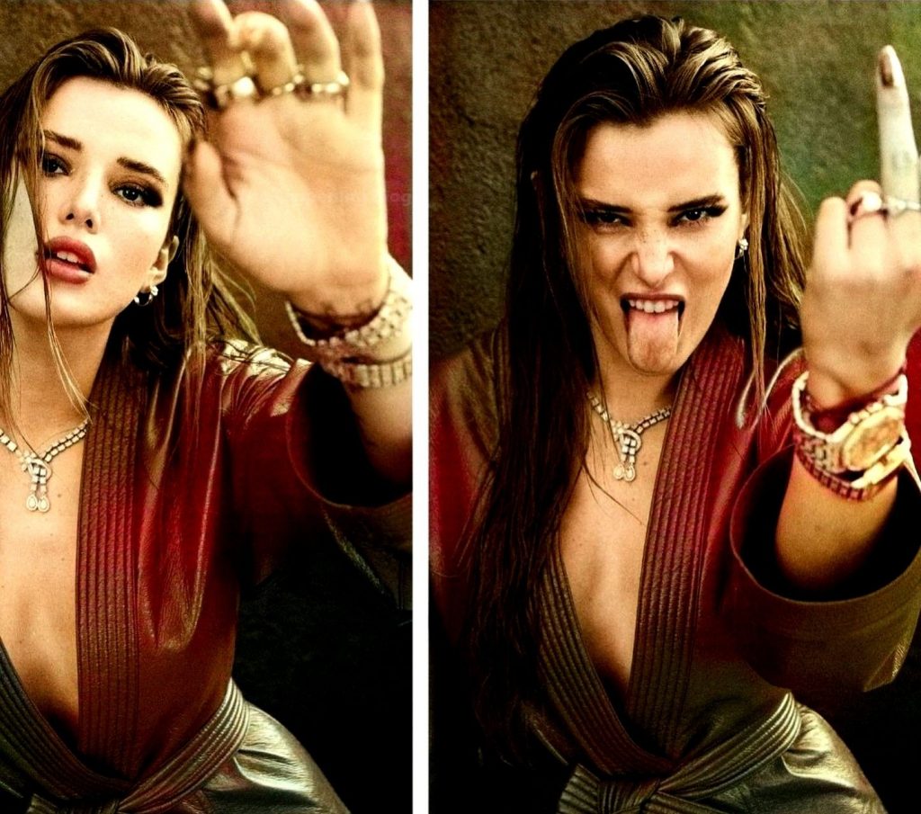 A estrela do Fappening Bella Thorne posa sem sutiã e quase topless, mostrando seus seios e exibindo a silhueta em roupas sensuais em um ensaio fotográfico de Max Abadian para a revista Grazia (2020).