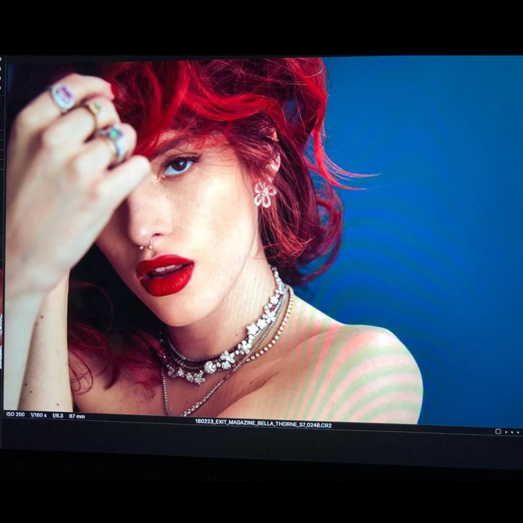 Atriz e cantora Bella Thorne compartilhou três fotos BTS topless (cobertas) para a revista Exit e promove seu novo videoclipe no Instagram, 20/05/2018.