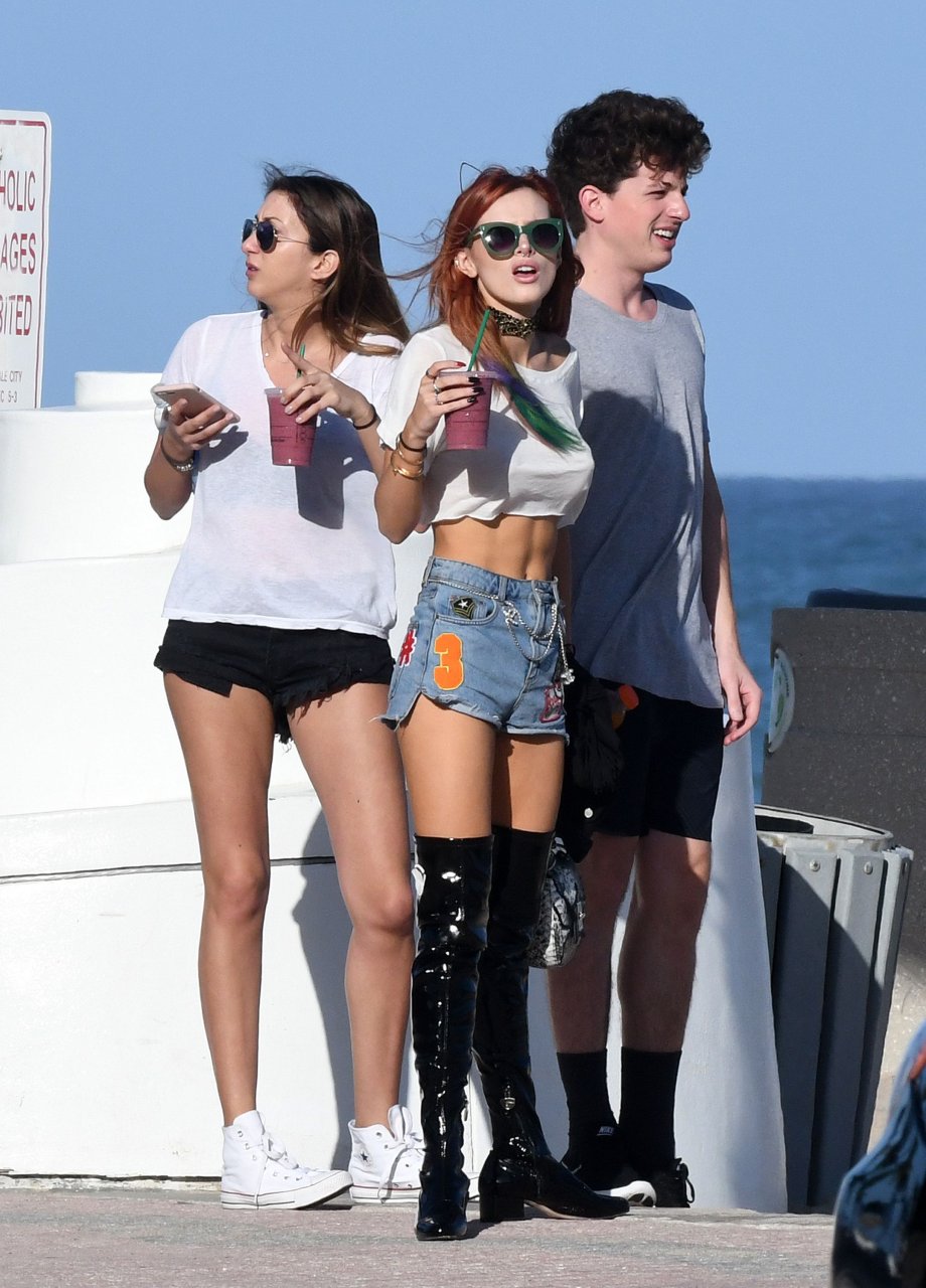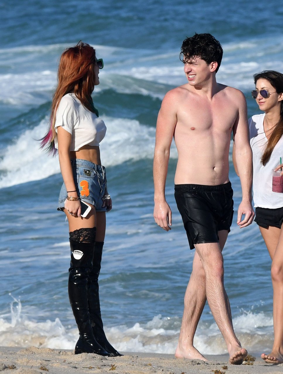 Bella Thorne aparece sem sutiã com um top cropped minúsculo na praia em Miami, 18/12/16. Bella Thorne é uma atriz americana (The Death and Life of John F. Donovan (2018)), cantora, modelo. Idade: 19 (8 de outubro de 1997).