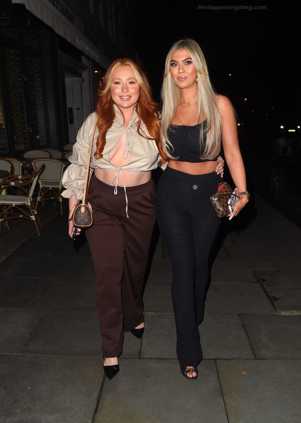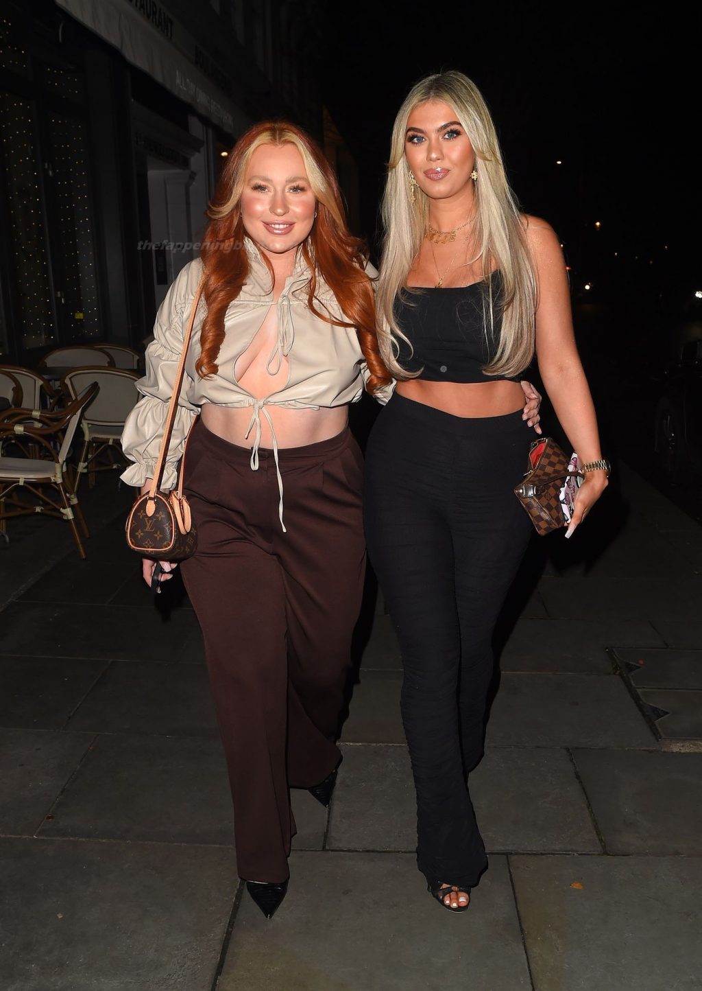 A estrela voluptuosa de reality show Belle Hassan foi vista chegando ao restaurante e bar Ours em Londres, 15/12/2020.