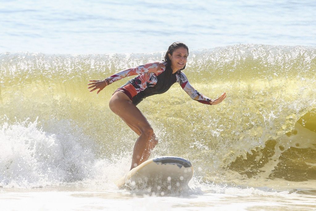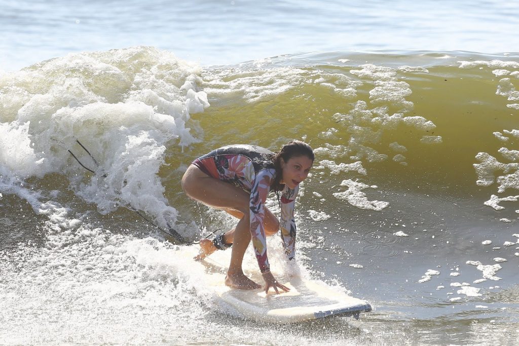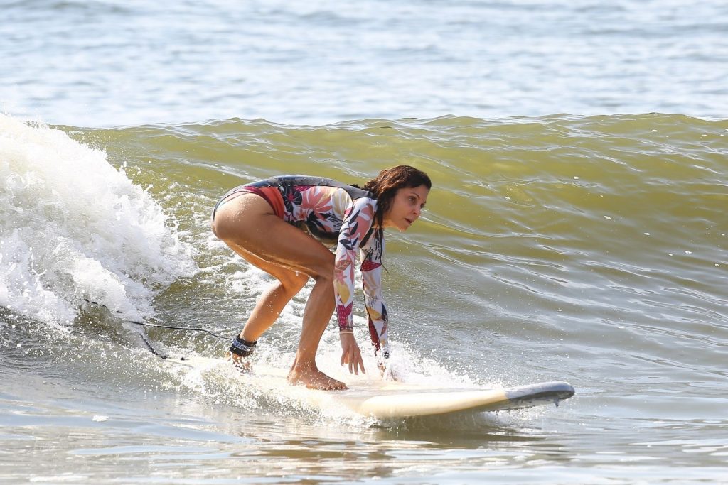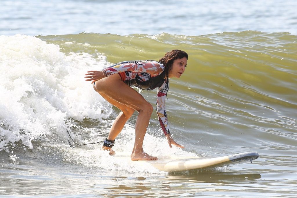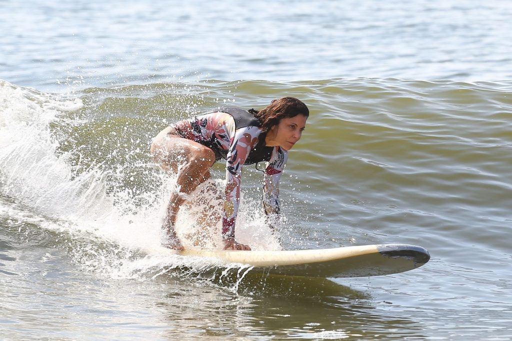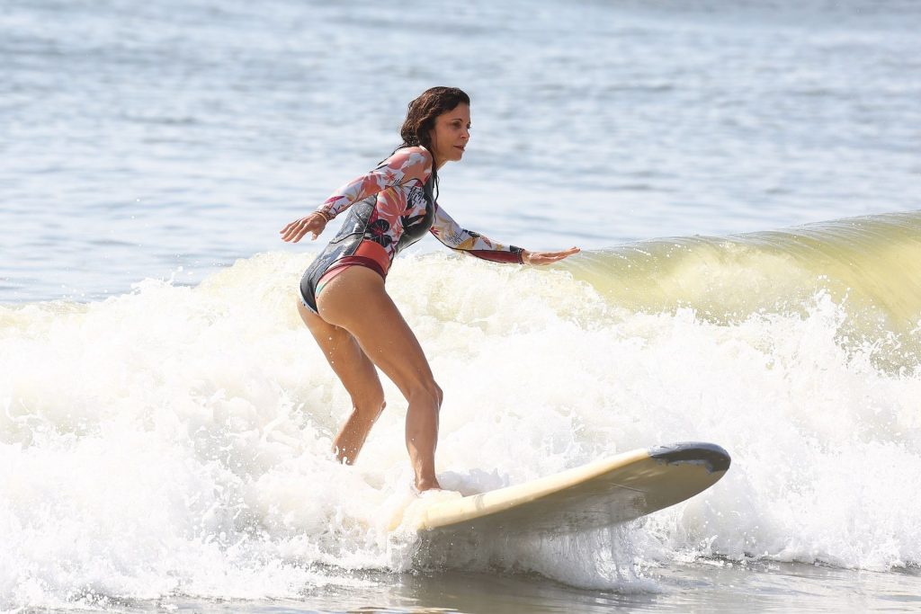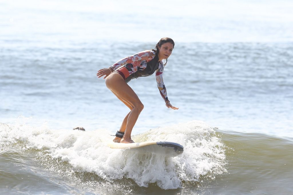 Sexy Bethenny Frankel é vista aproveitando um dia de aula de surf em The Hamptons, 08/09/2020.