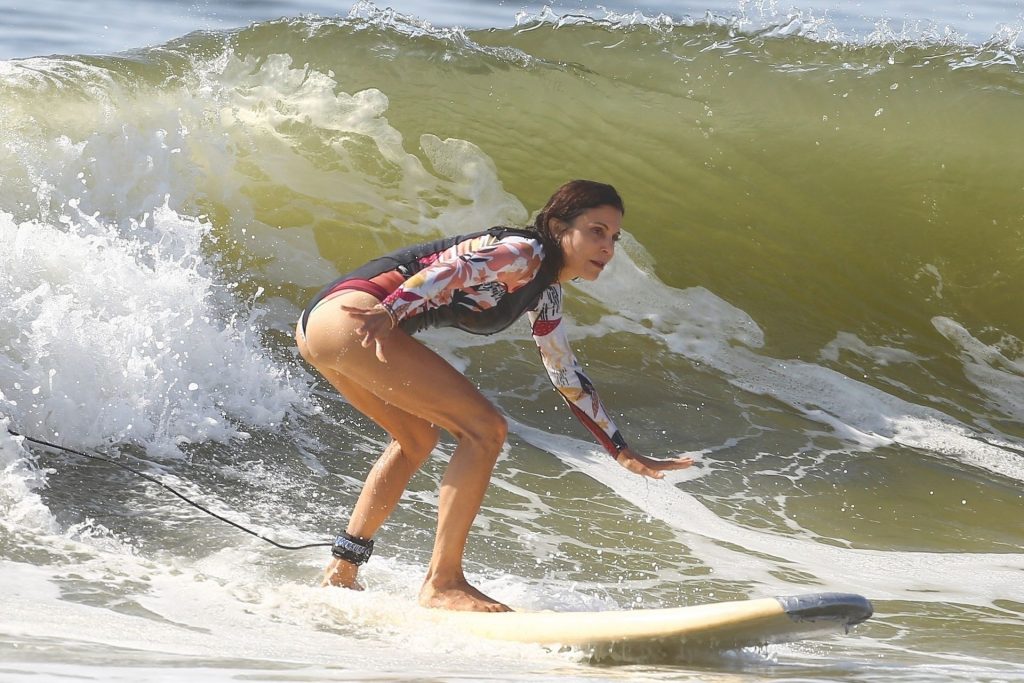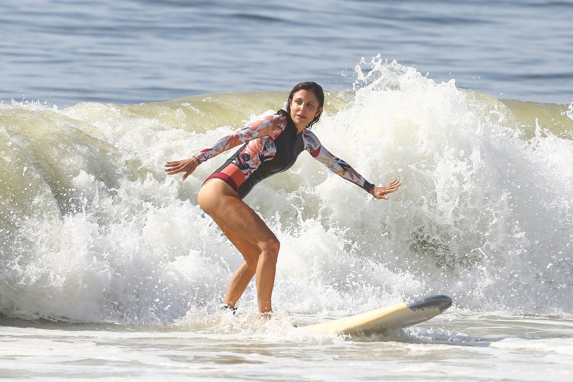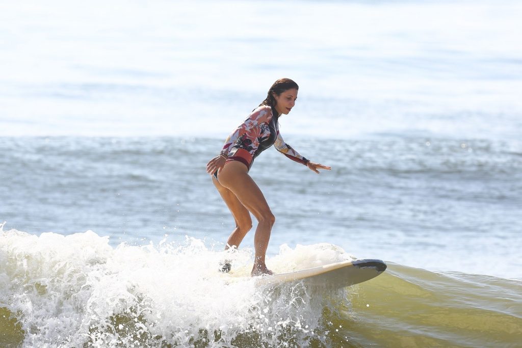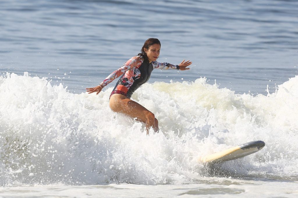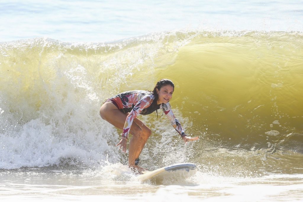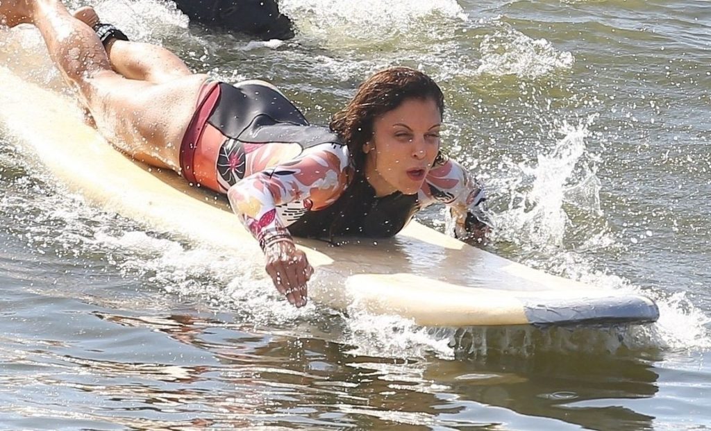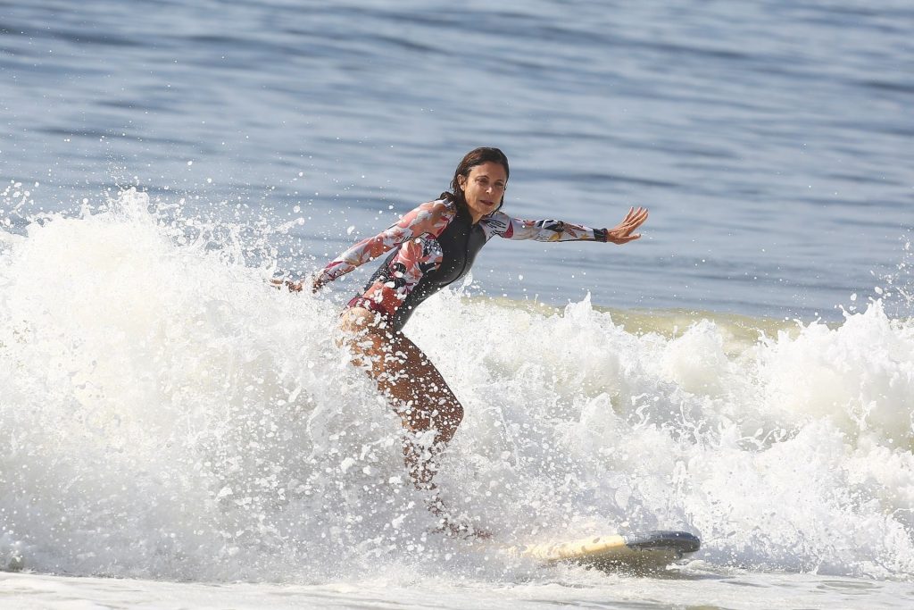 Sexy Bethenny Frankel é vista aproveitando um dia de aula de surf em The Hamptons, 08/09/2020.