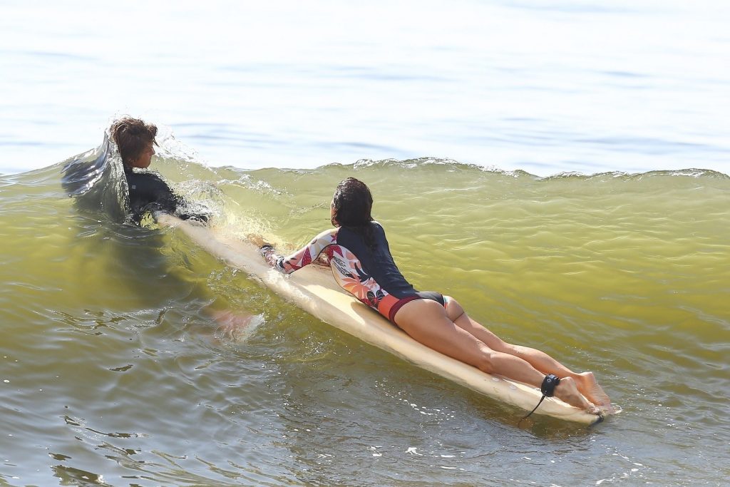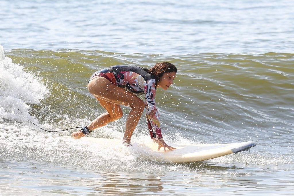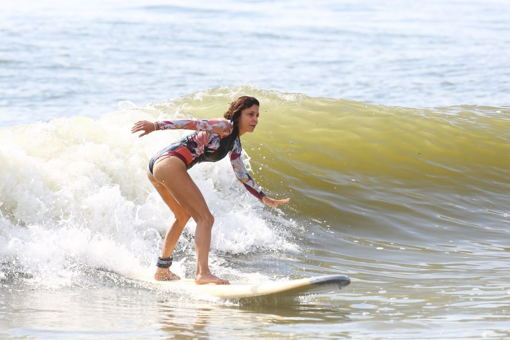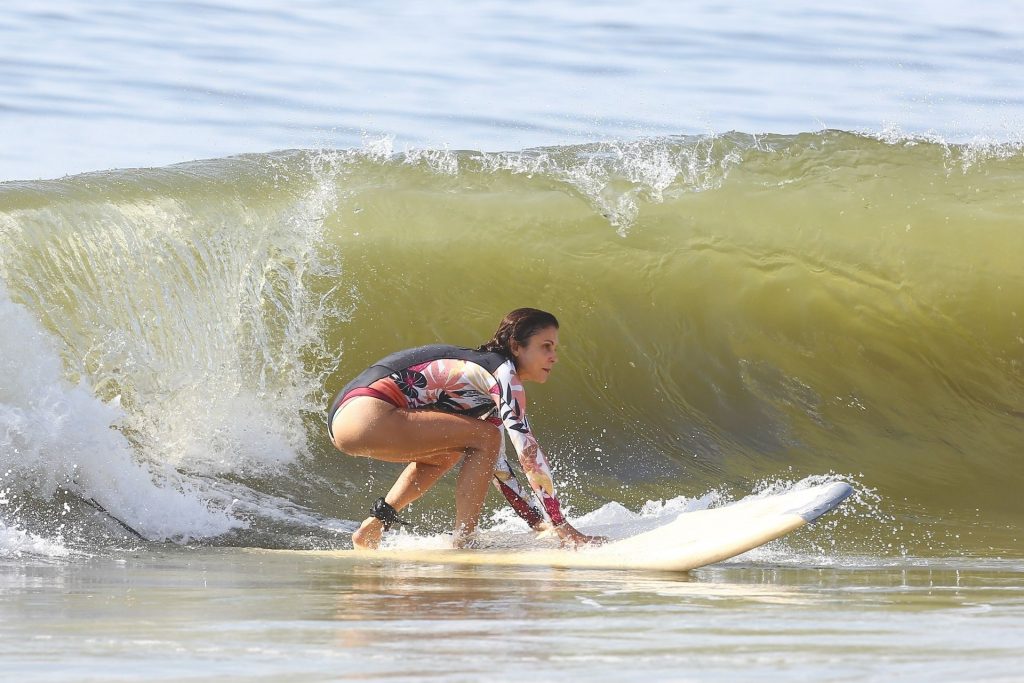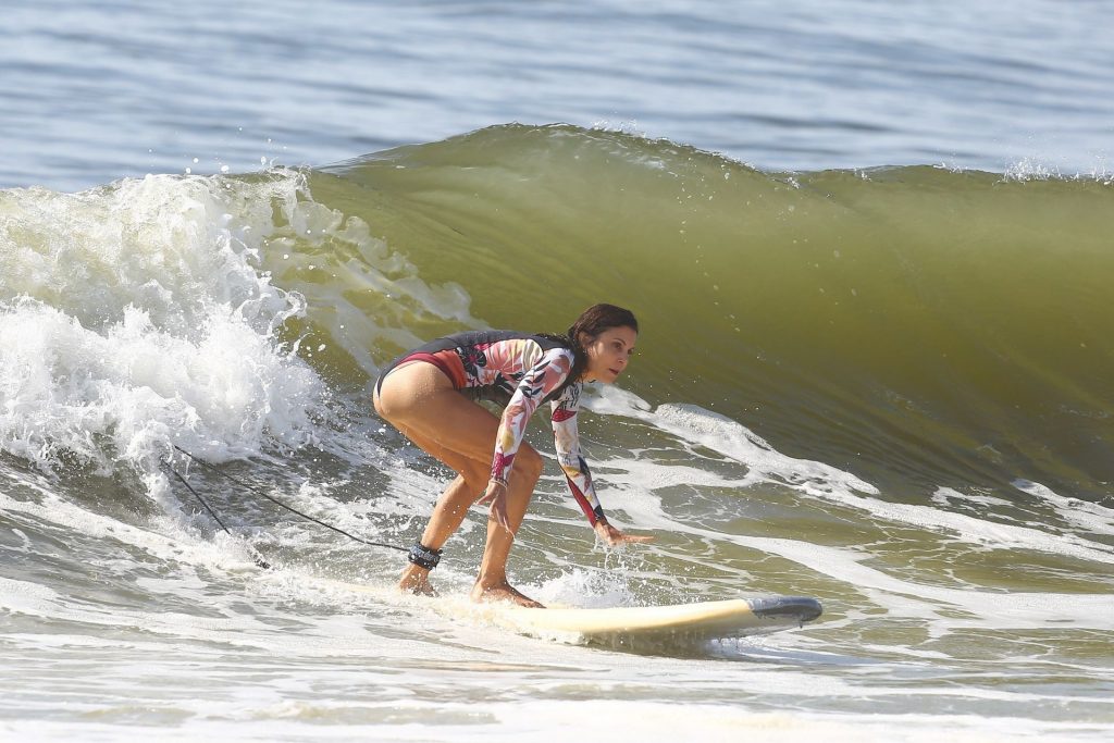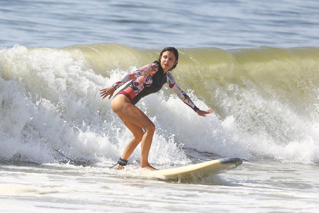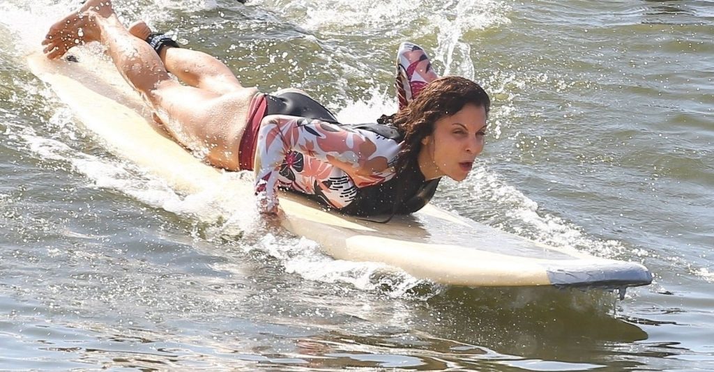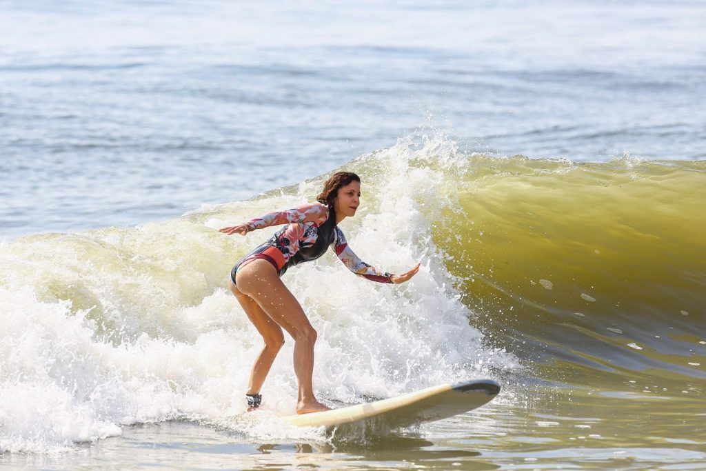 Sexy Bethenny Frankel é vista aproveitando um dia de aula de surf em The Hamptons, 08/09/2020.