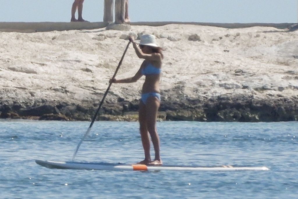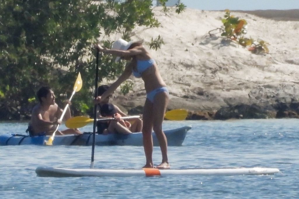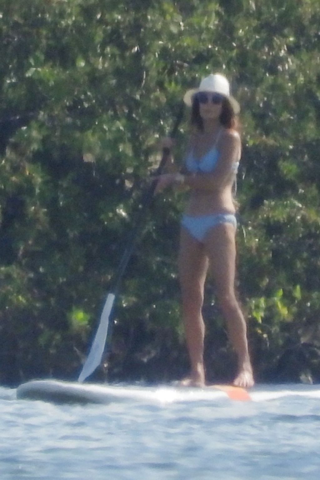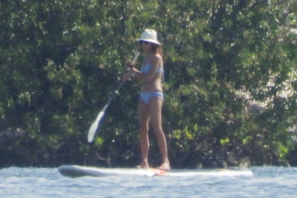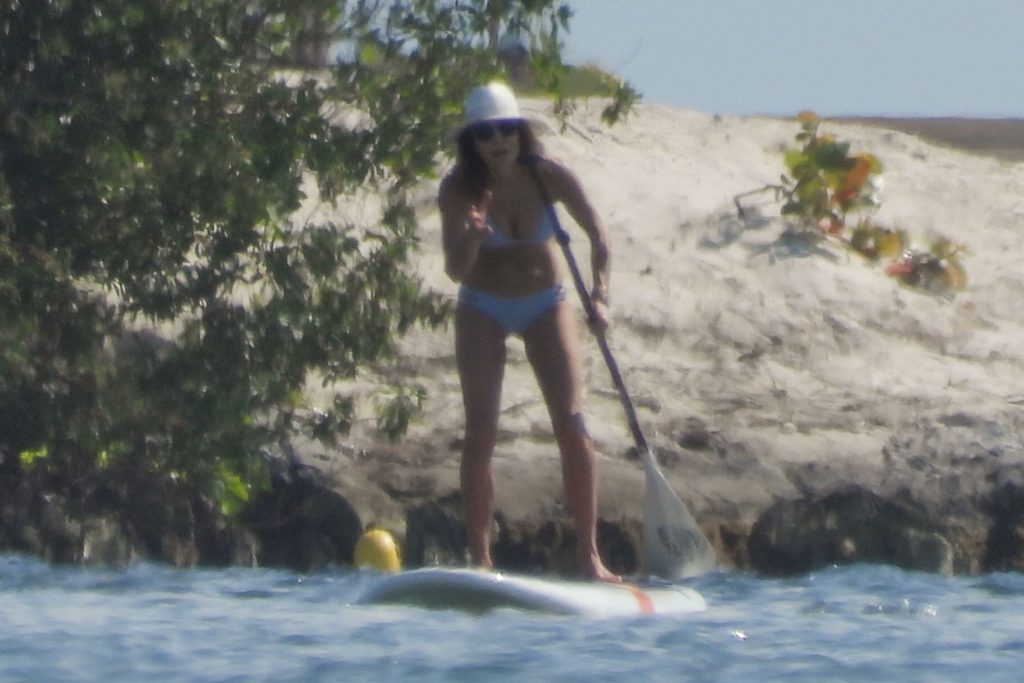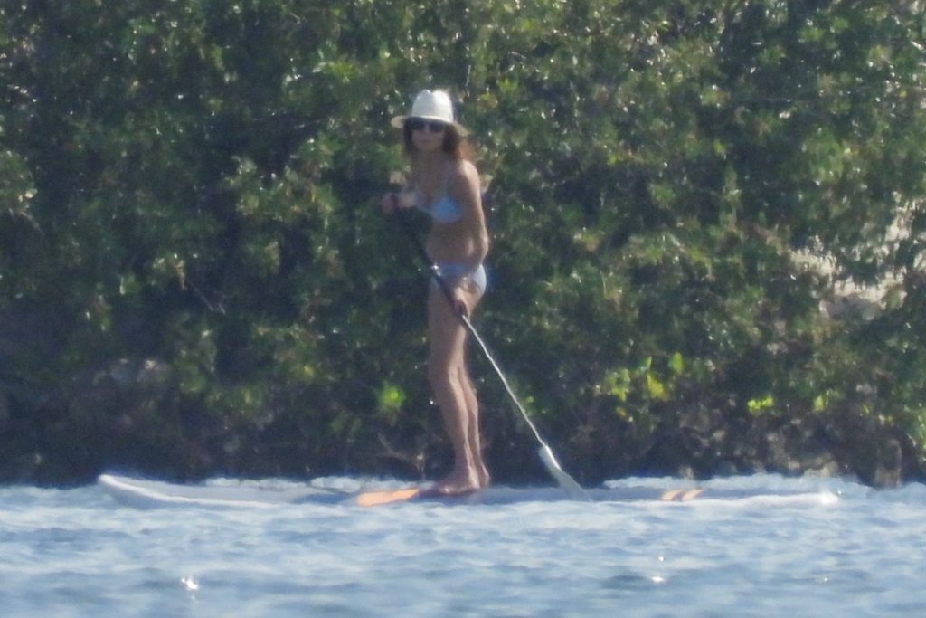 Bethenny Frankel termina 2019 com um treino de stand up paddle em Cancun, 01/01/2020. A estrela de reality show e empresária exibiu seu físico em forma com um biquíni azul claro enquanto aproveitava as férias com o parceiro Paul Bernon e a filha Bryn Hoppy.