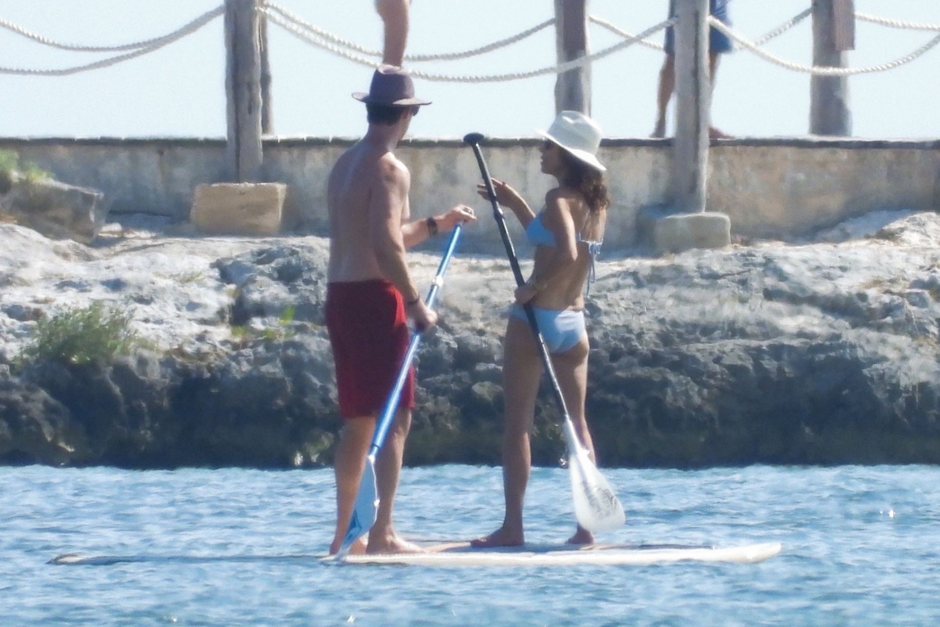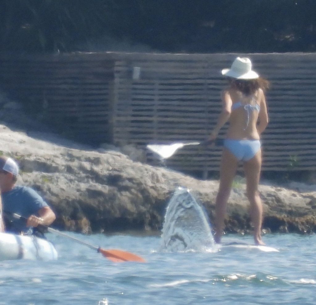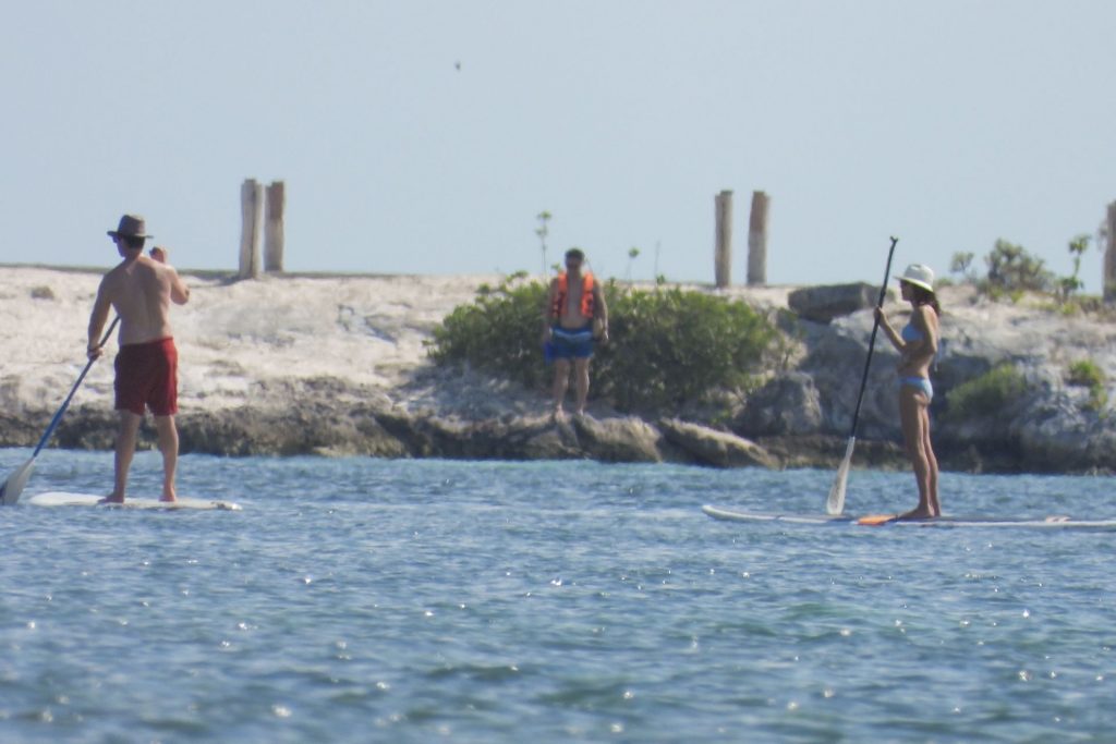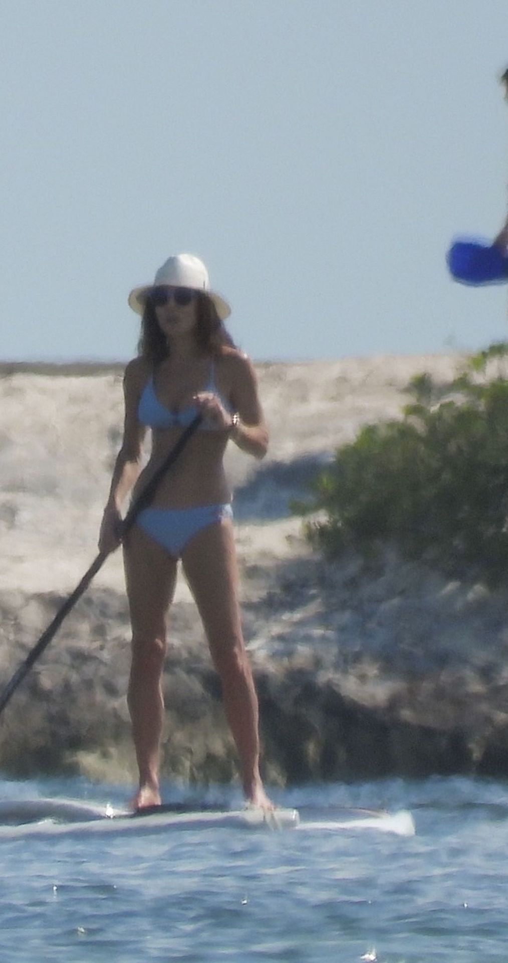 Bethenny Frankel termina 2019 com um treino de stand up paddle em Cancun, 01/01/2020. A estrela de reality show e empresária exibiu seu físico em forma com um biquíni azul claro enquanto aproveitava as férias com o parceiro Paul Bernon e a filha Bryn Hoppy.