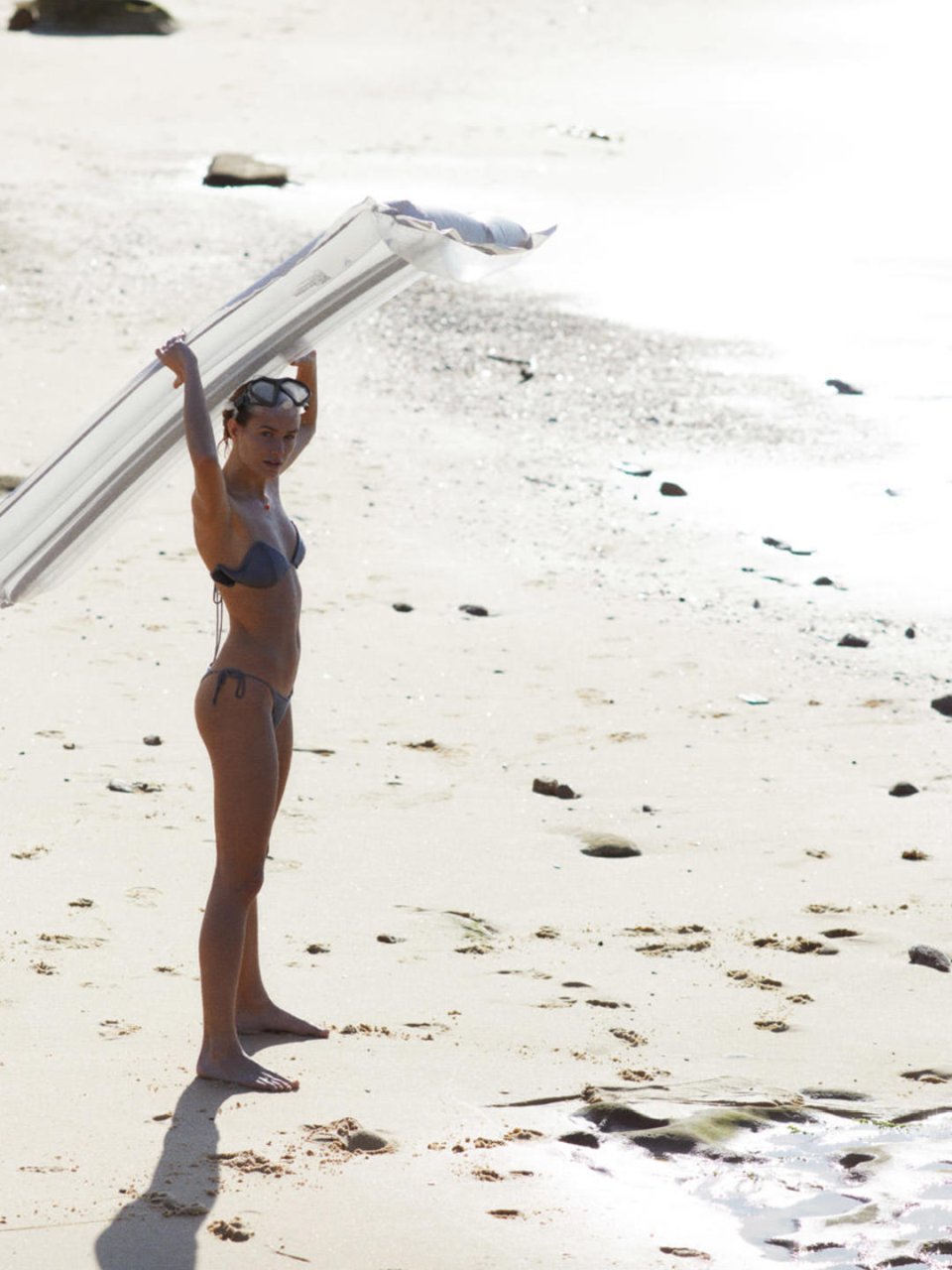 A garota magra posou topless e de maiô para um ensaio fotográfico quente. Ela mostrou seus pequenos seios, pernas esbeltas e bronzeadas, e bumbum.