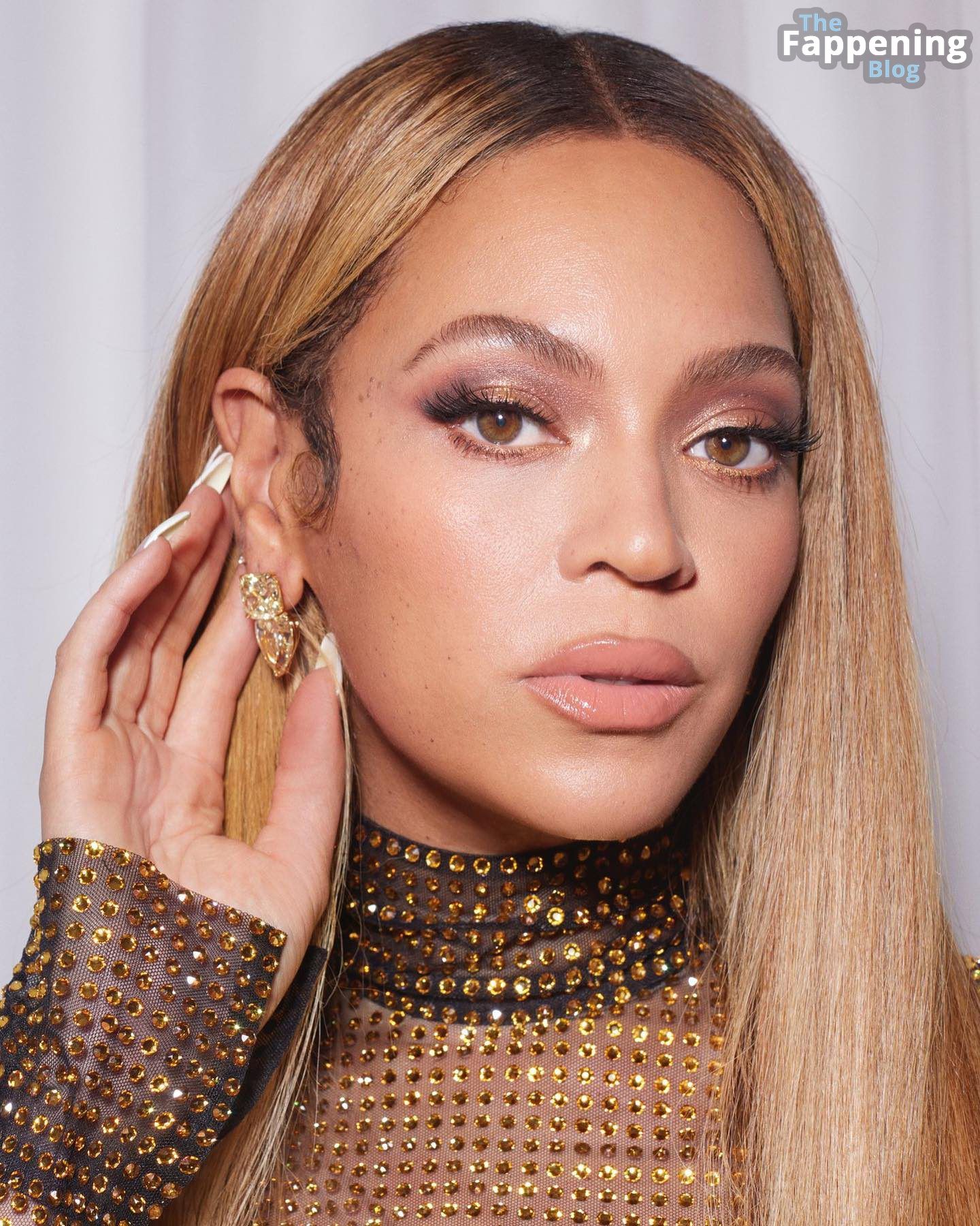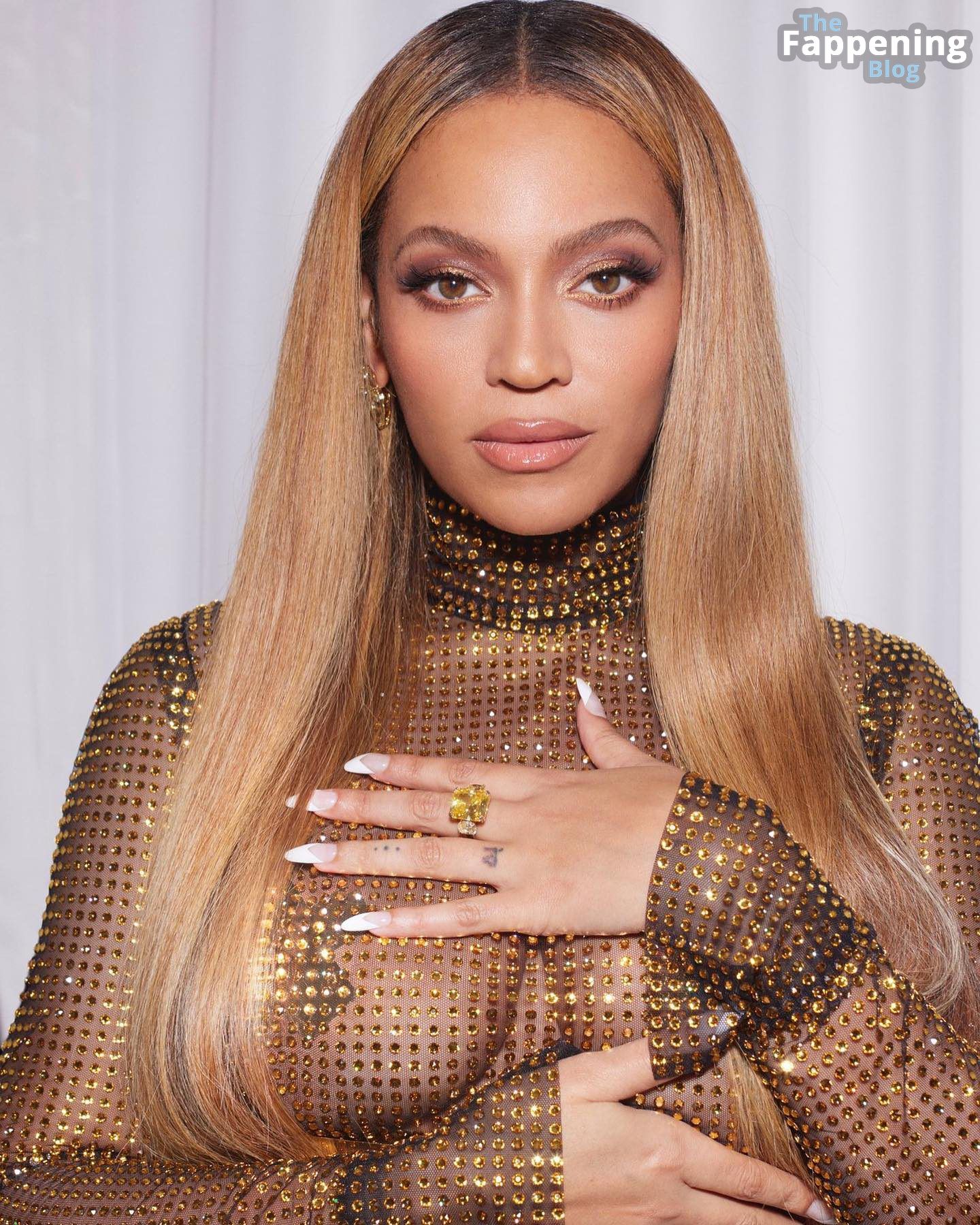 Confira a Beyoncé arrasando na cena com seu estilo ousado sem sutiã, exibindo seus atributos em um look transparente. É todo aquele charme sedutor e a vibe inconfundível de rainha do pop sem desculpas.