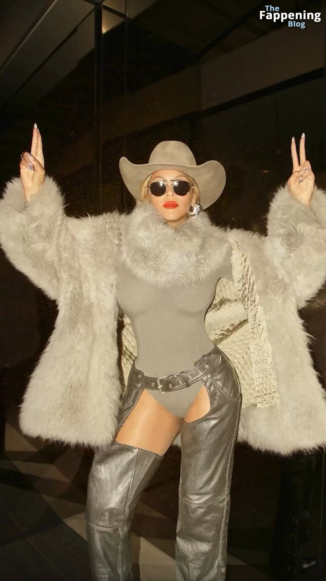 Beyoncé está arrasando com muita atitude em um body fio dental que destaca suas curvas e combinando com umas chaps de couro incríveis, tudo isso enquanto exibe mais um chapéu de cowboy nessas fotos super sensuais.