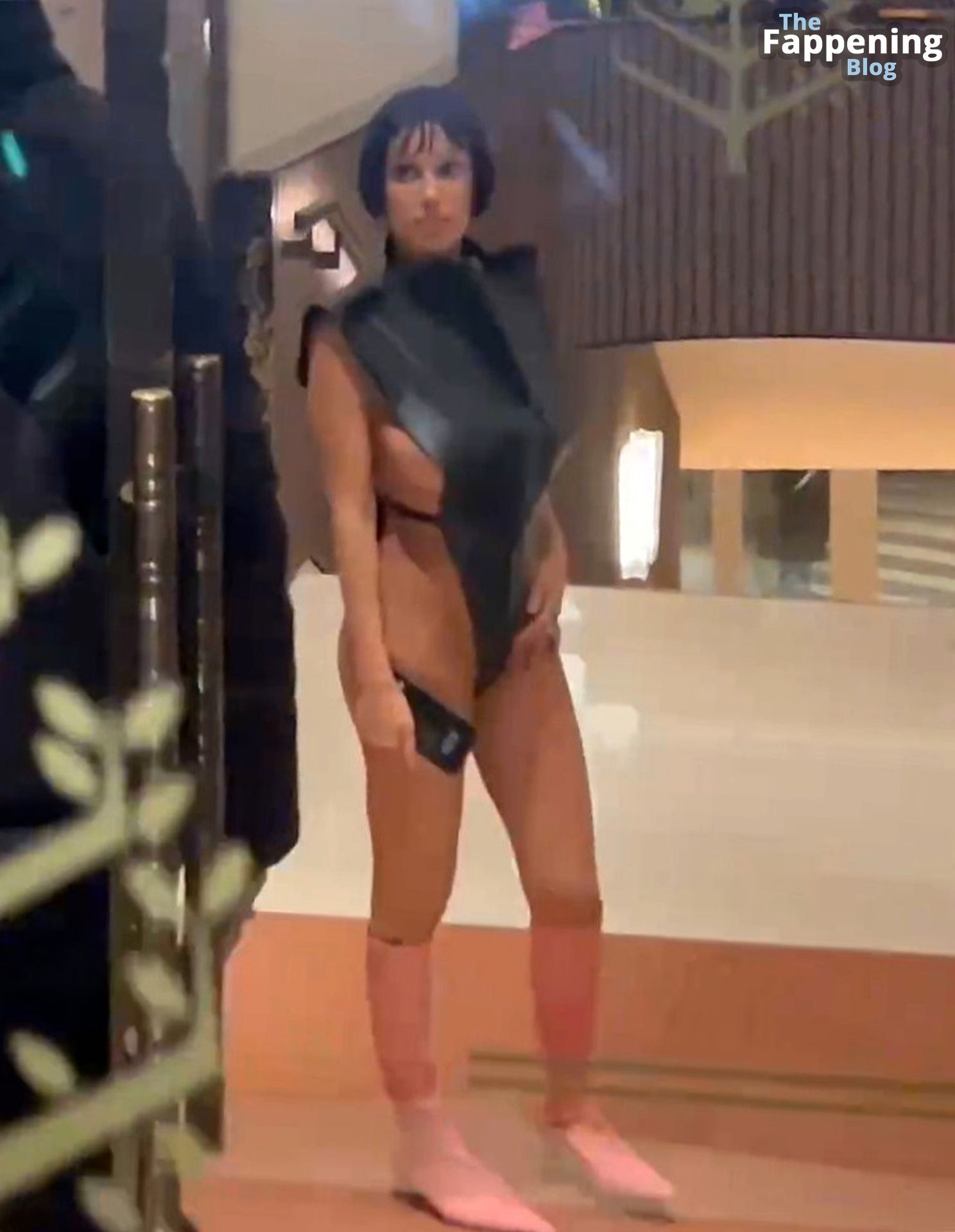 Ela é até bonita, mas esse deve ser o look menos sexy de todos. Parece que alguém cortou alguns buracos em um saco de lixo de couro. Estimulante, sim, mas sexy, não.