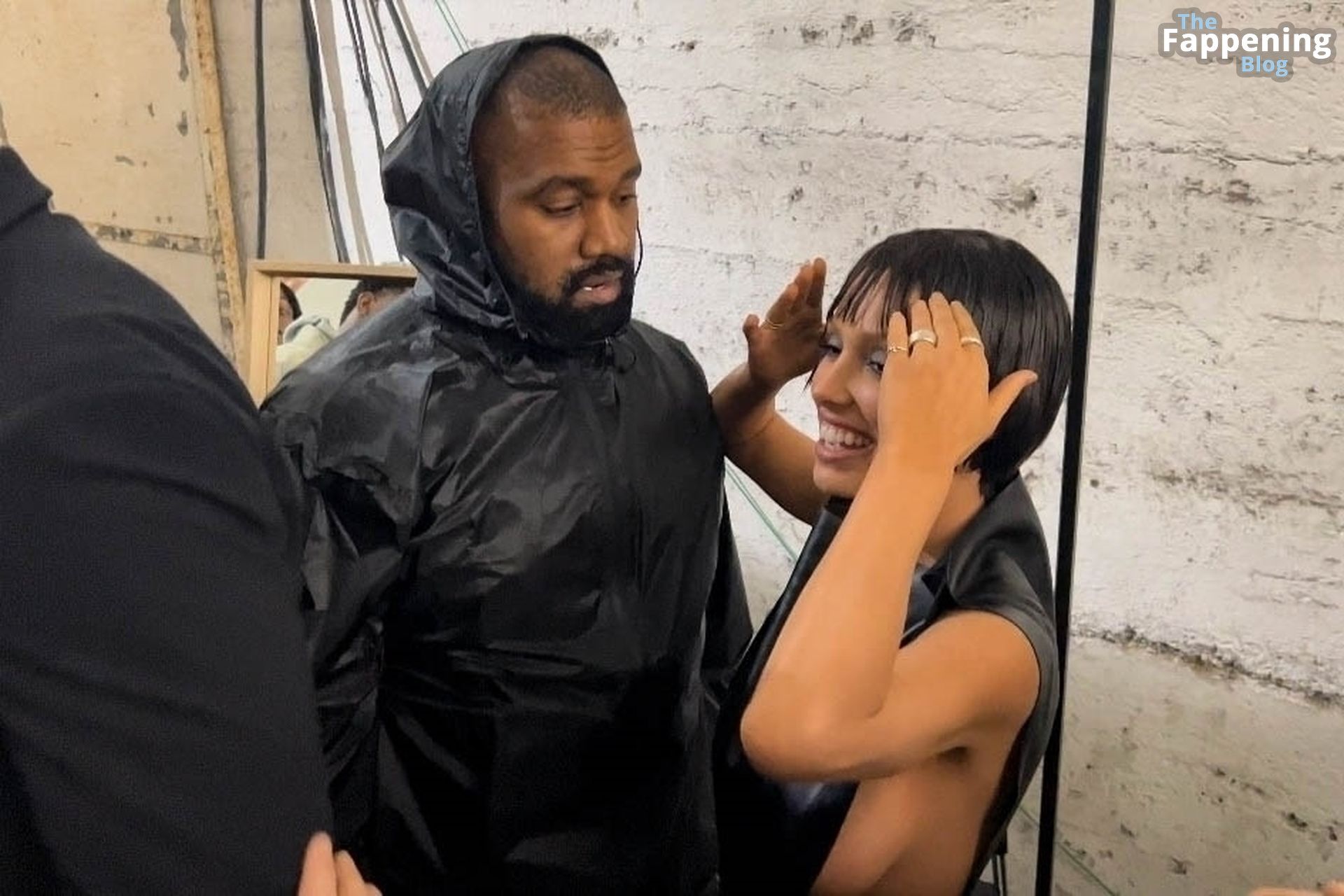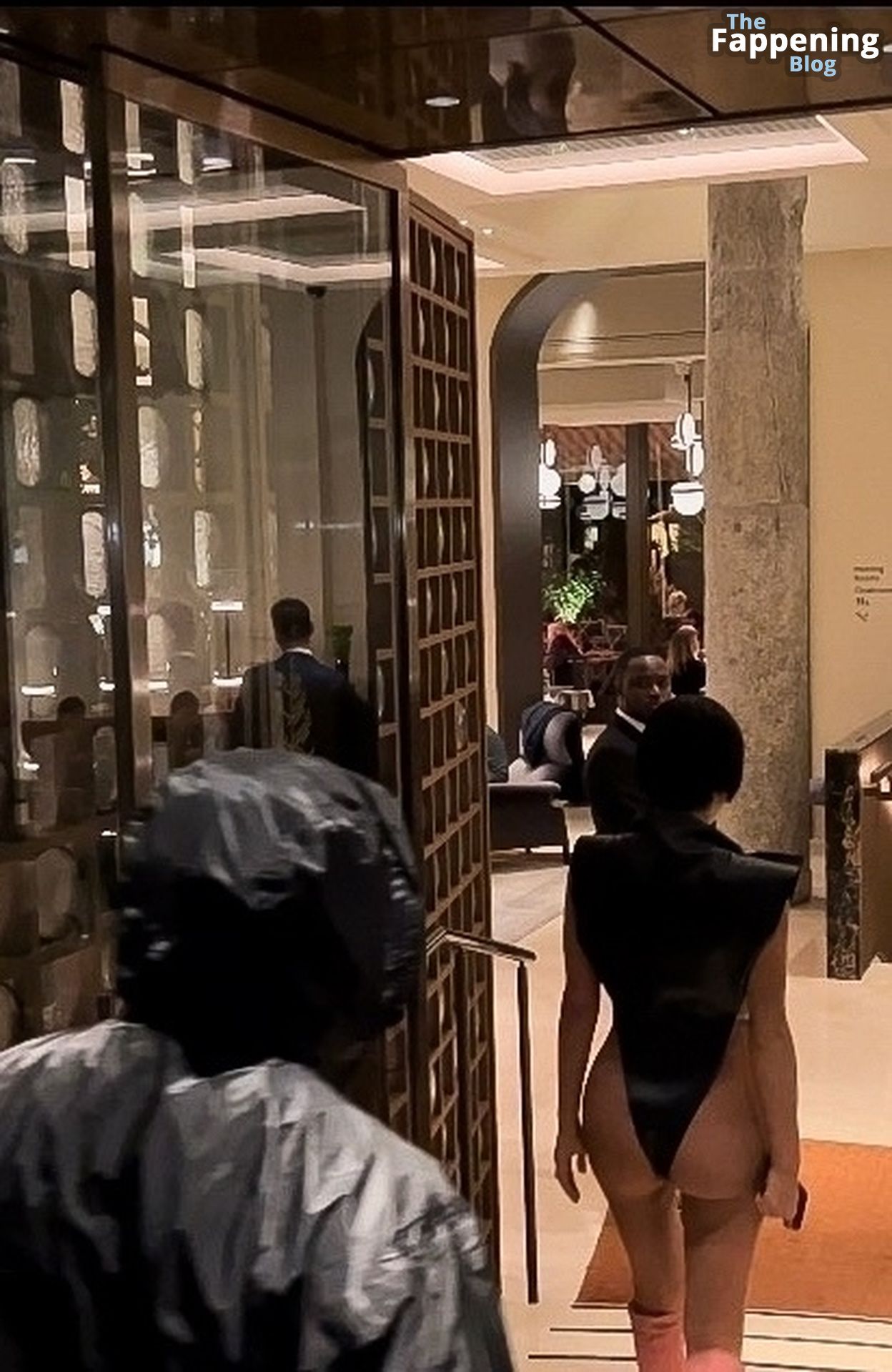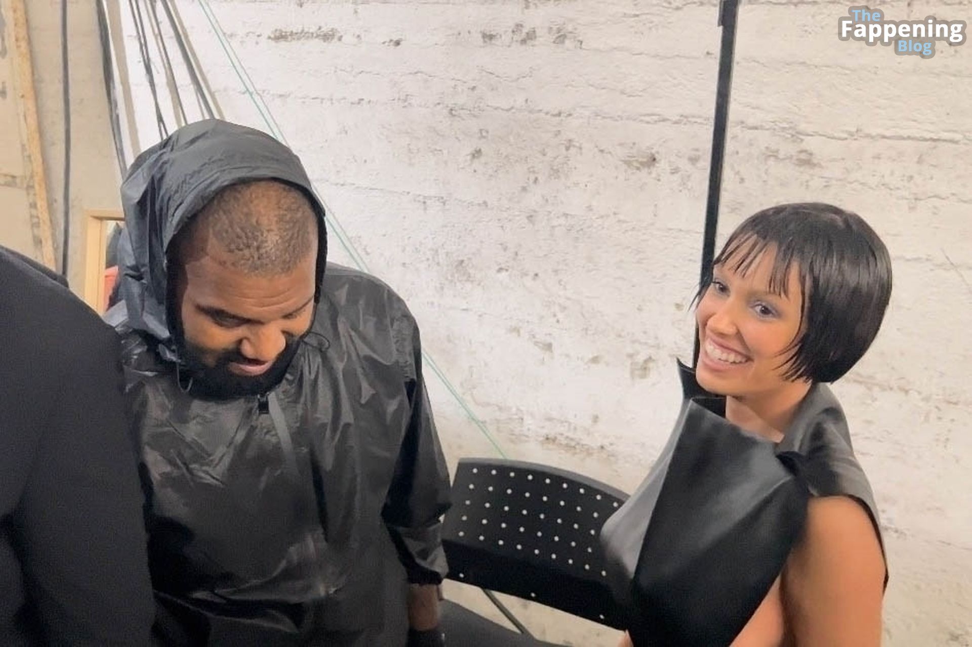 O rapper americano Kanye West e Bianca Censori chegam pela entrada dos fundos no restaurante Cracco em Milão.