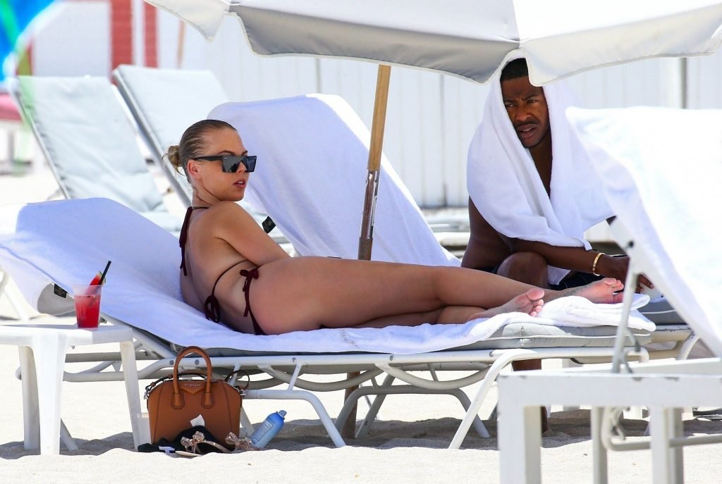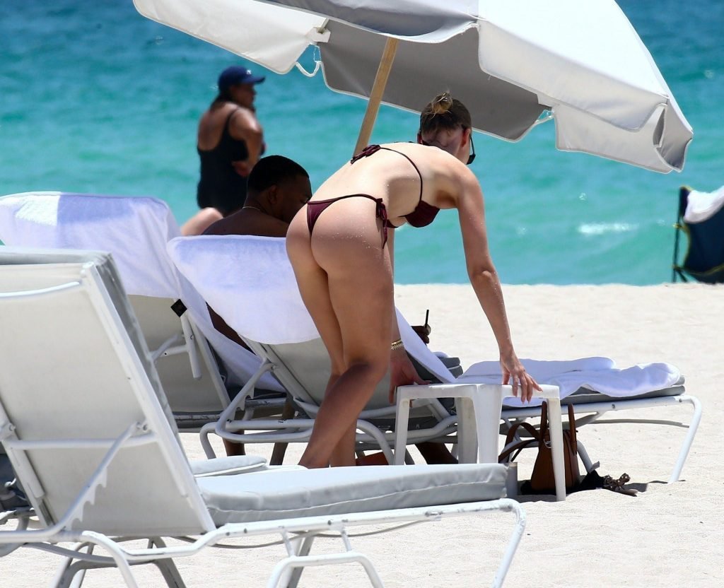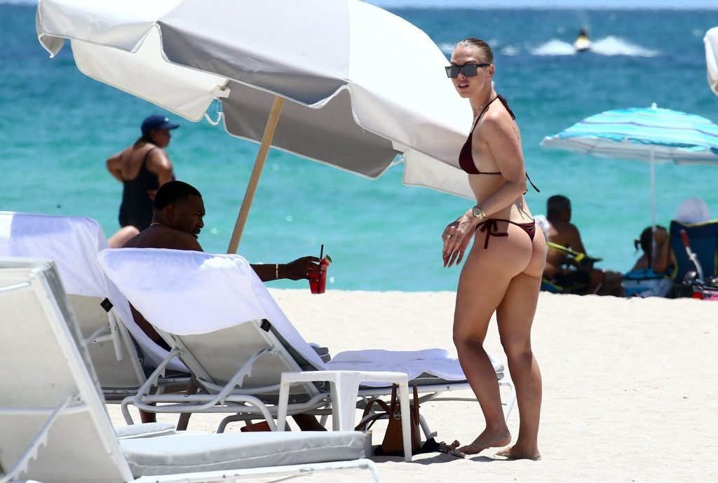 Bianca Elouise exibe seu doce bumbum na praia em Miami, 26/06/2017. Bianca Elouise é uma designer de trajes de banho da Austrália (Myra Swim). Idade: 27 anos.