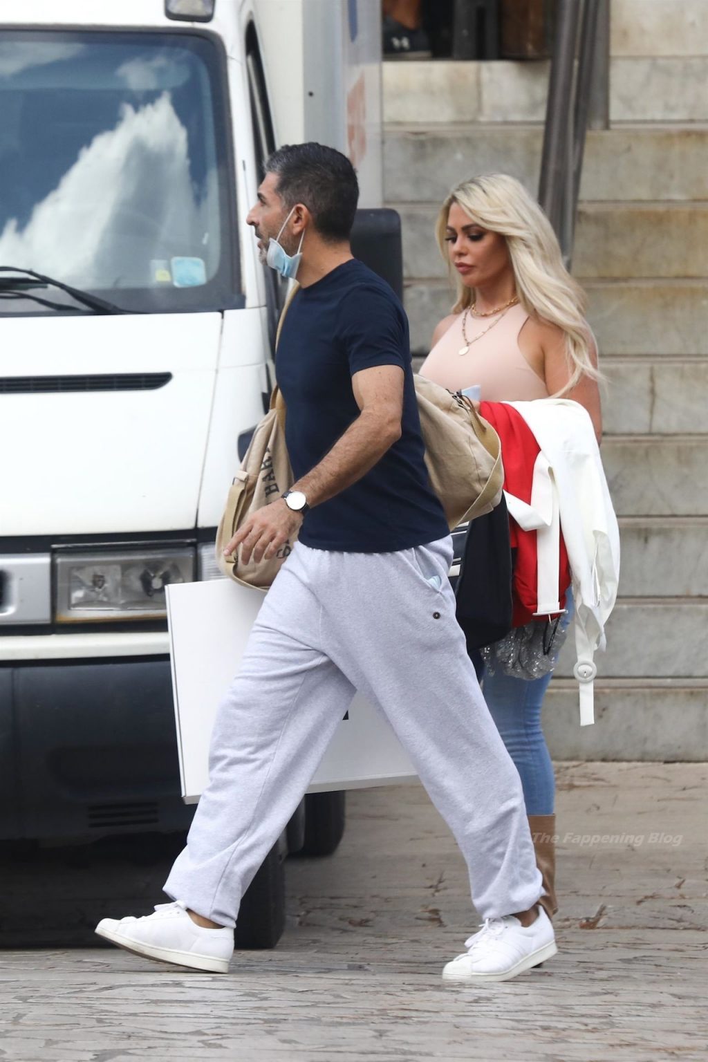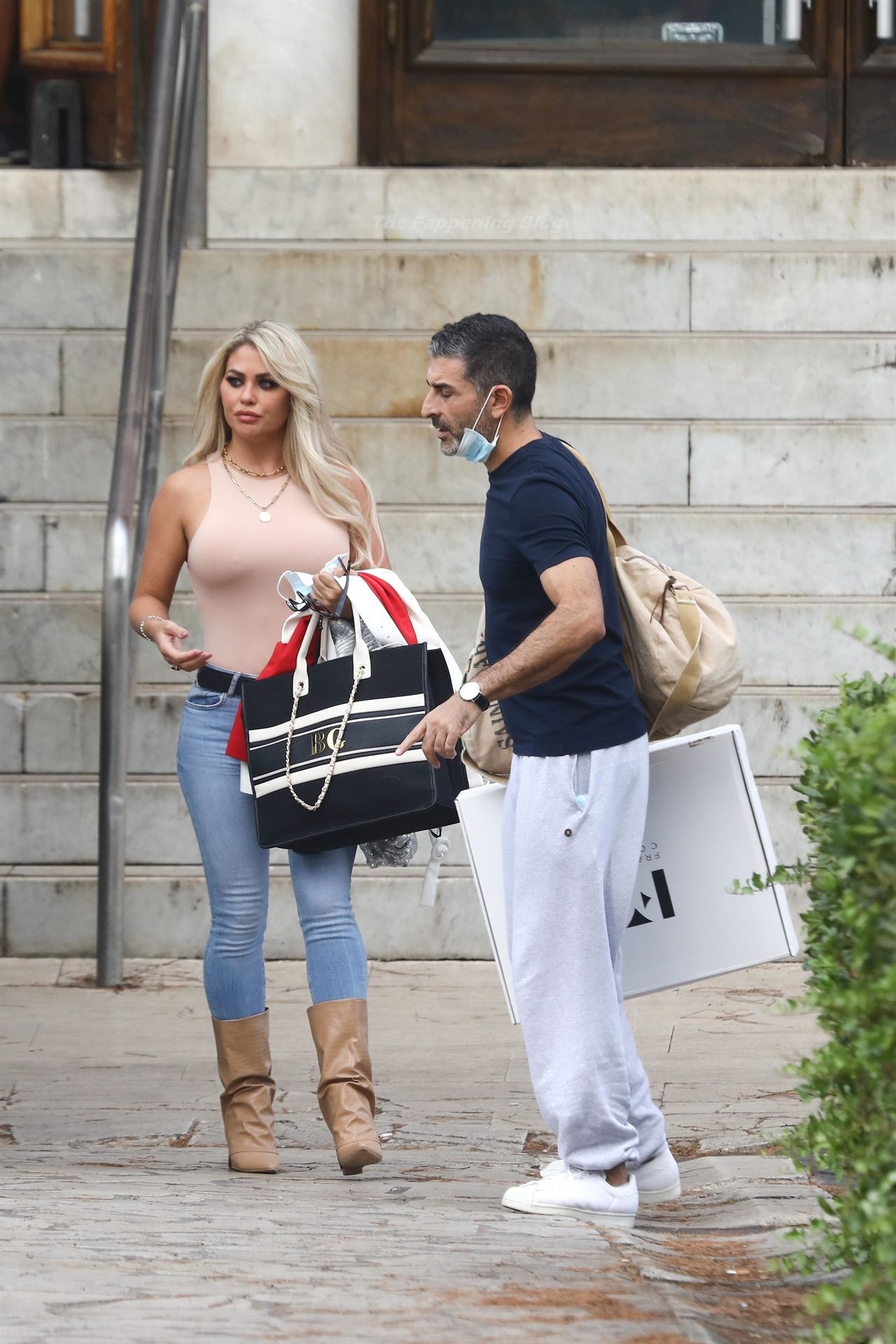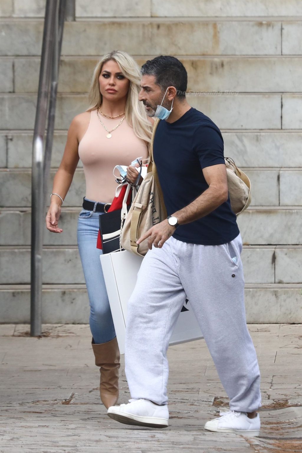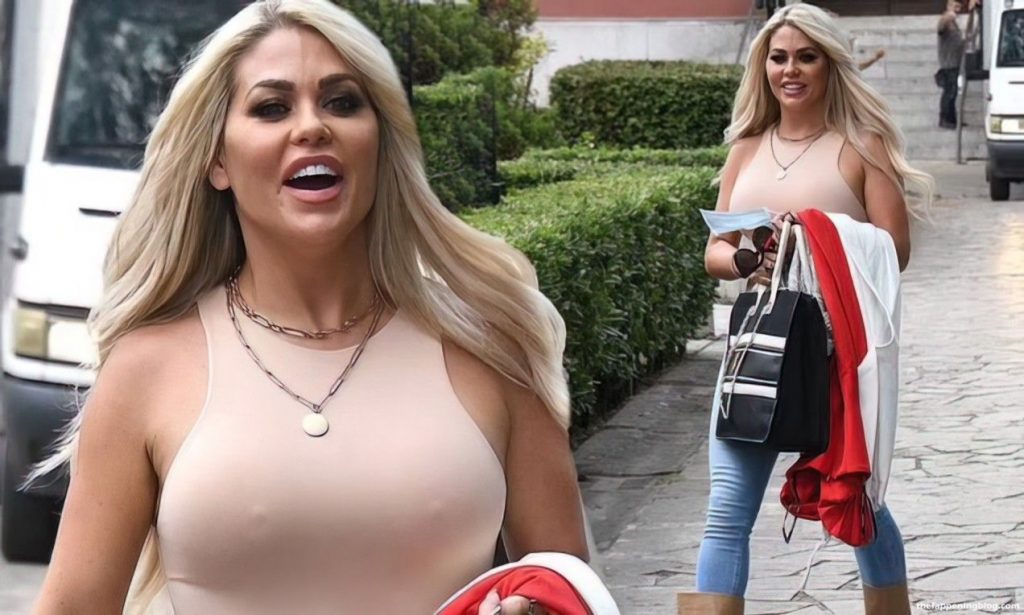 Braless reality TV star Bianca Gascoigne chama atenção com top “nude” justo ao corpo e jeans a caminho dos ensaios do “Dancing With The Stars” da Itália, 27/08/2021.
