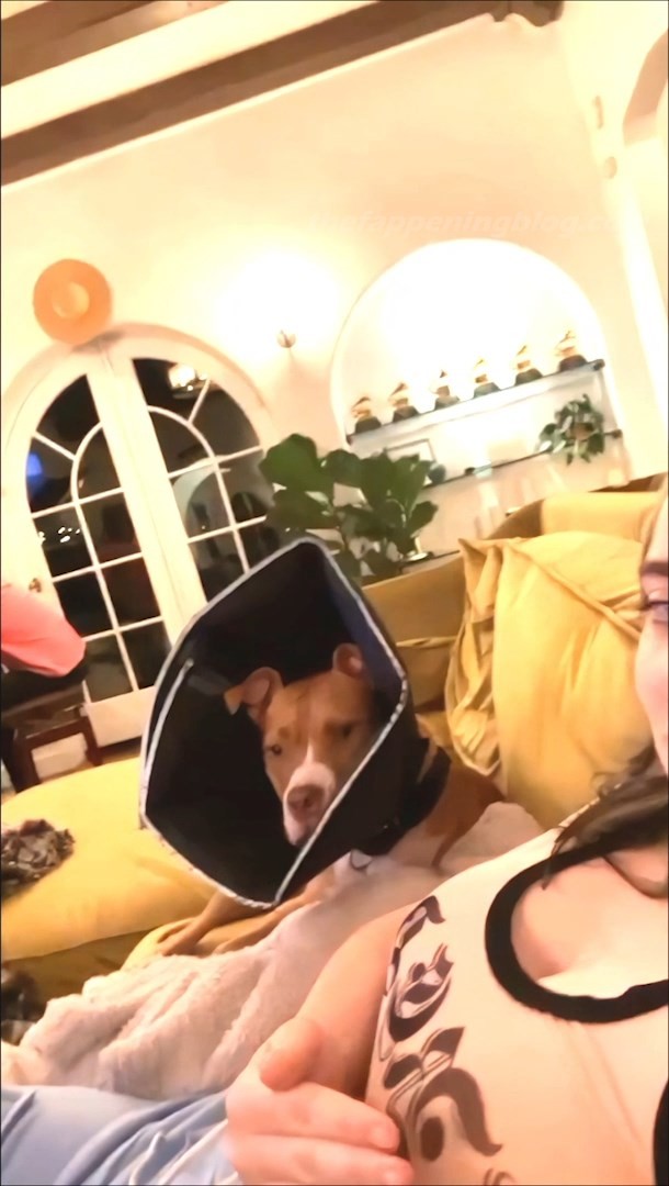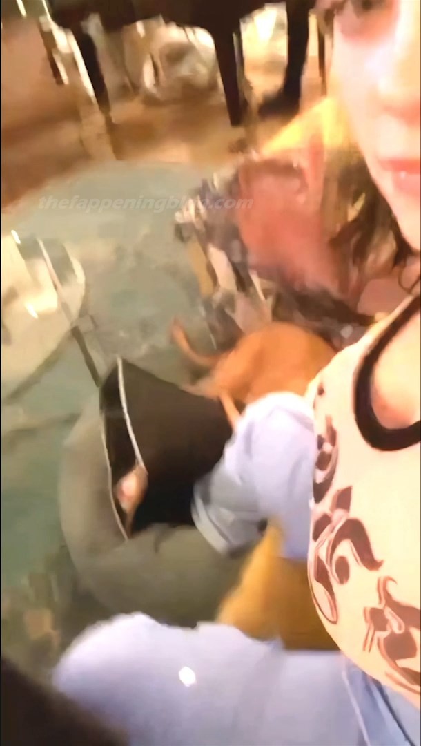 A cantora tem um novo hobby – dar tapas nos seus seios e assustar o cachorro com isso. Nossos fãs são muito corajosos, então ela pode dar tapas em seus peitos nus!