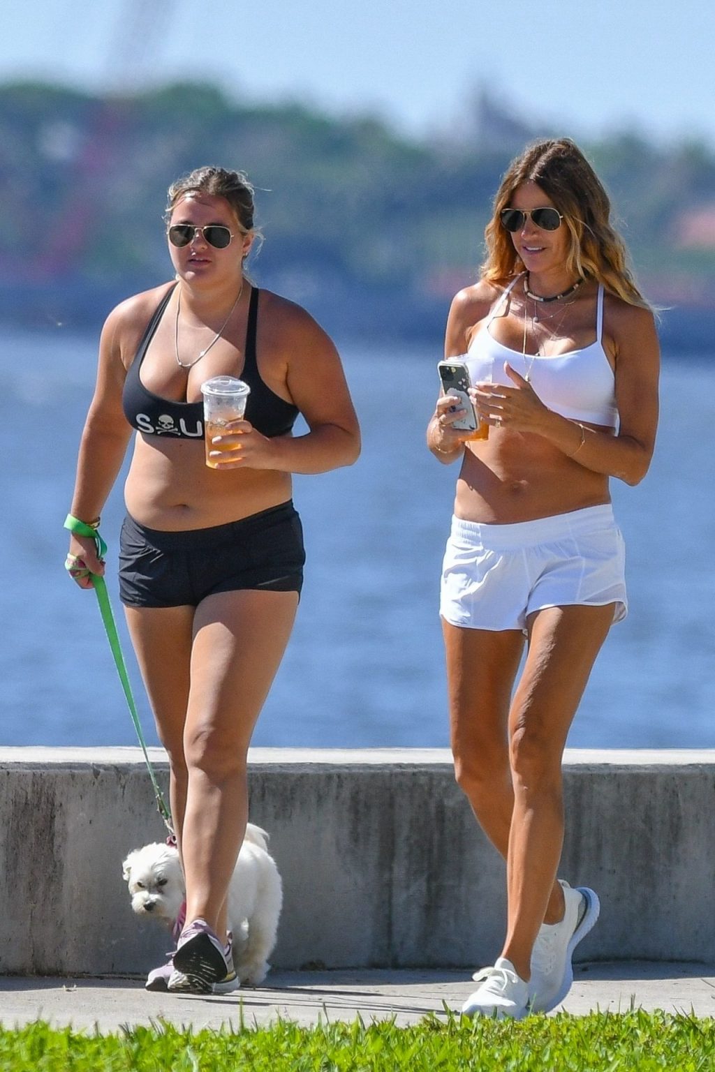 Kelly Bensimon faz uma caminhada em um lindo dia na Flórida com sua filha durante o confinamento em Palm Beach, 01/05/2020. Ela completa 52 anos hoje!