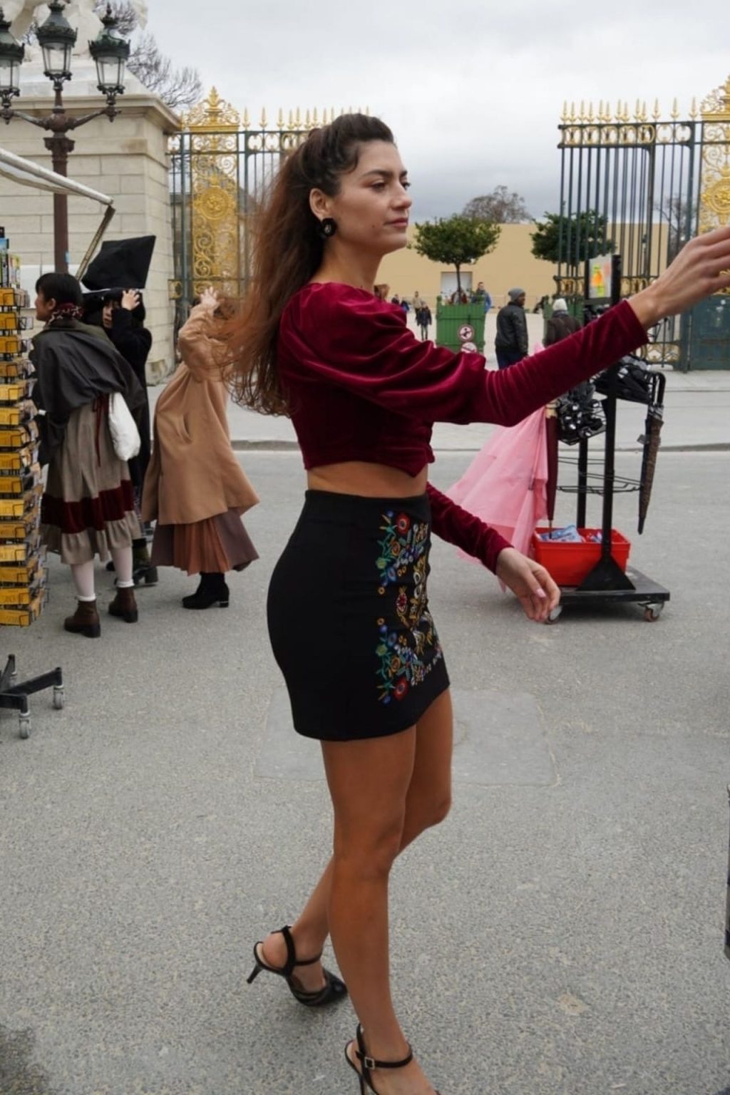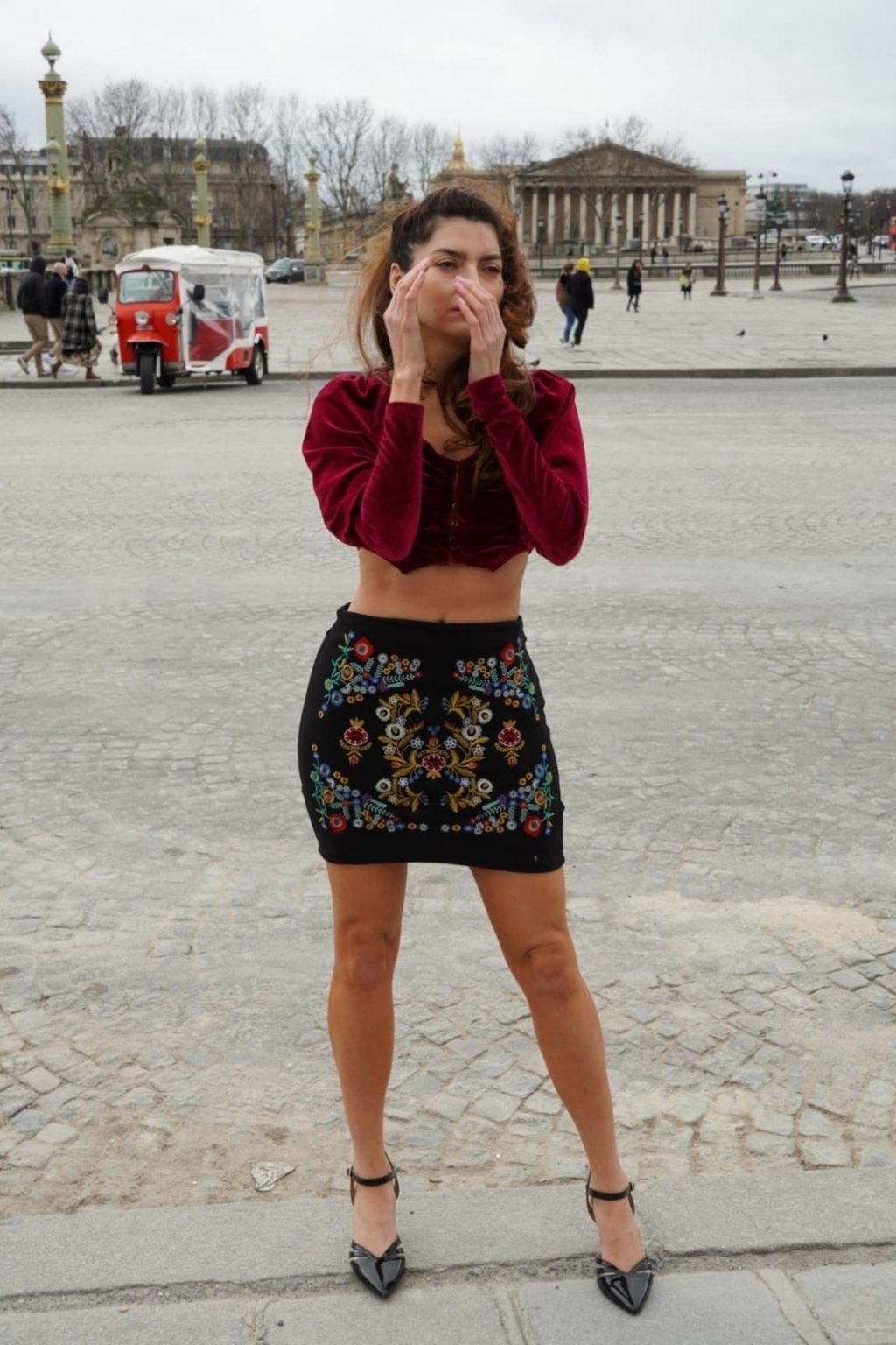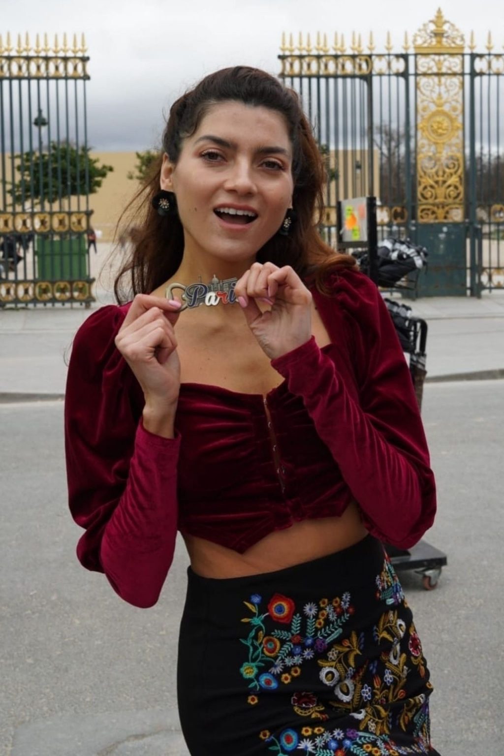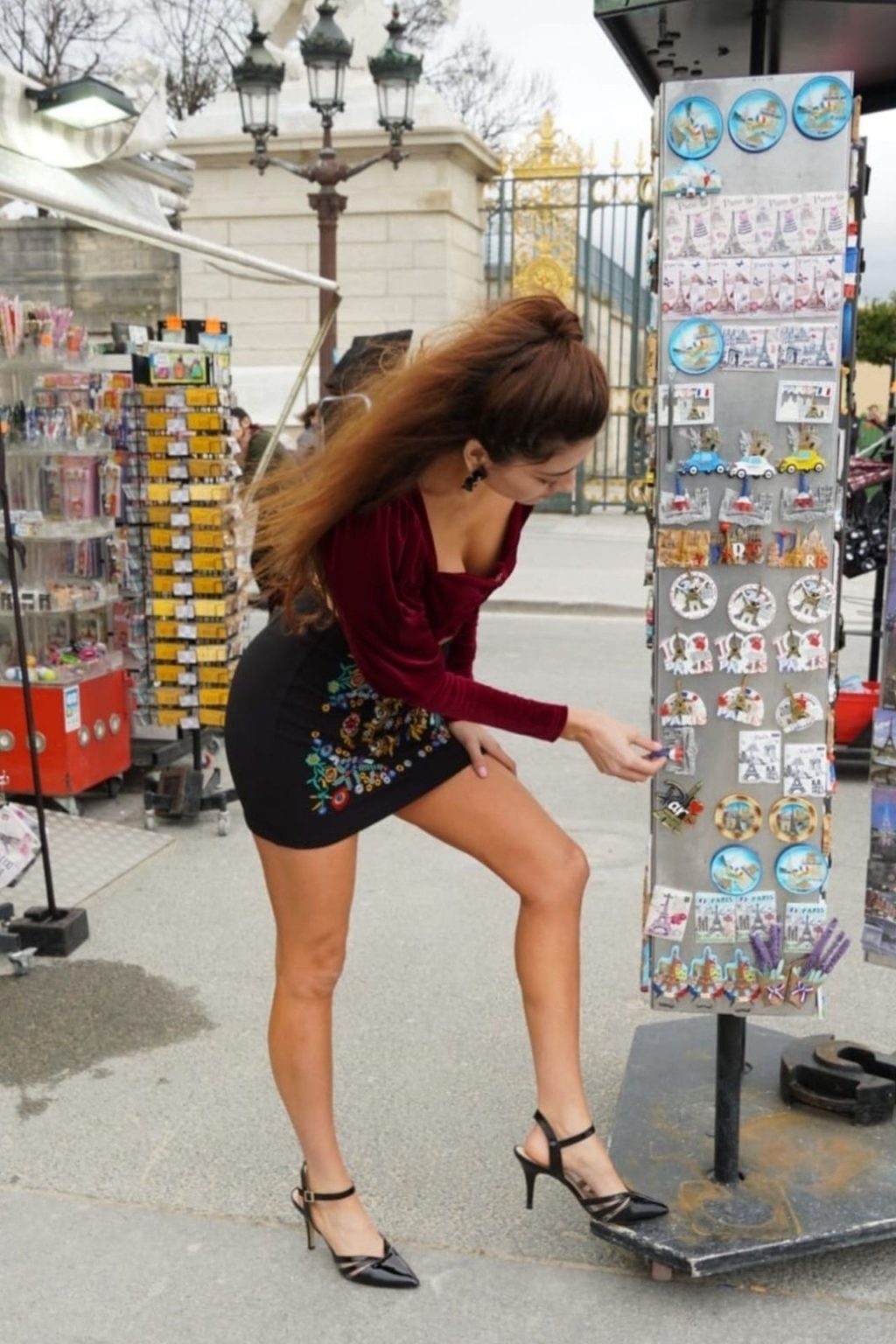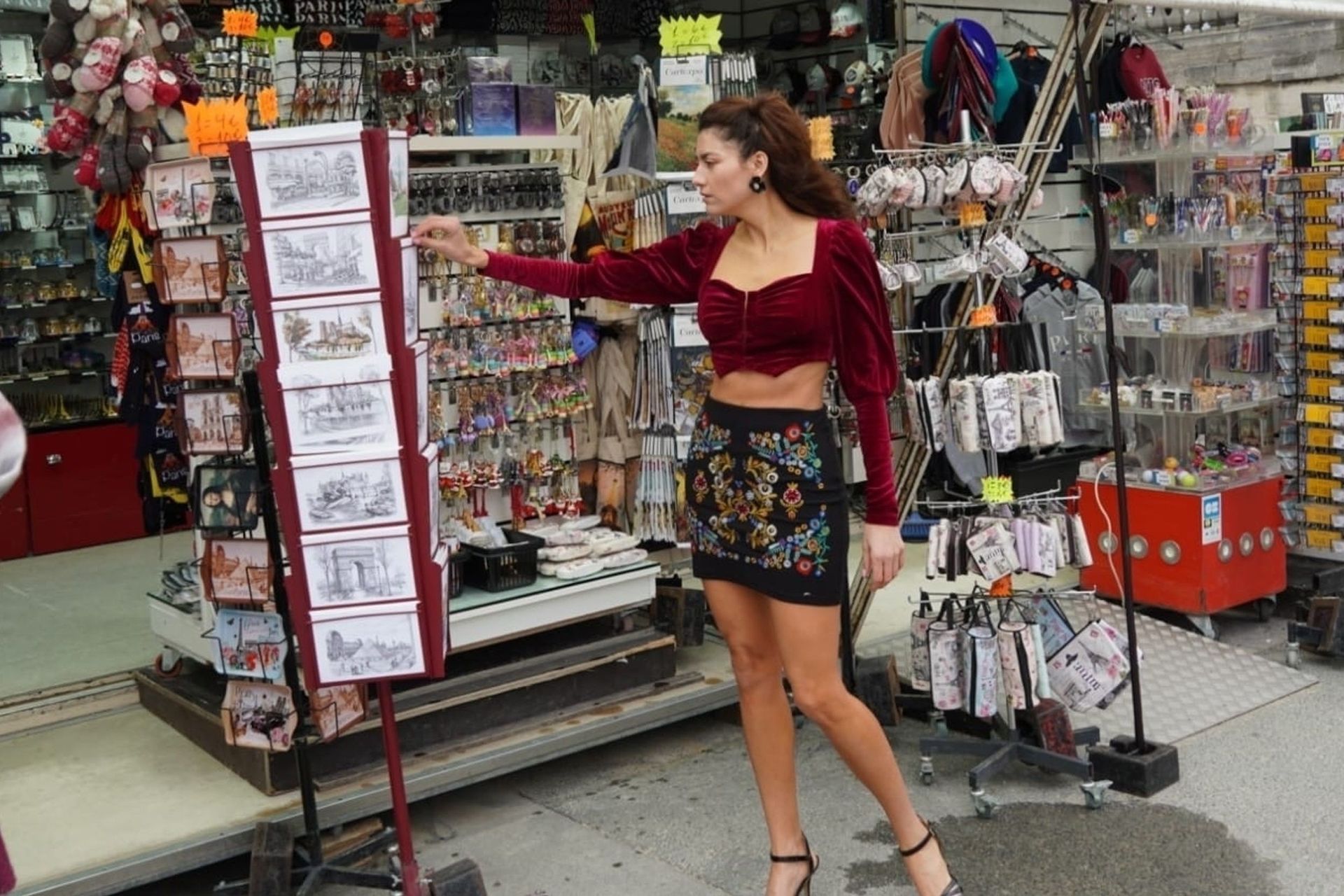 Atriz Blanca Blanco faz turismo e compra souvenirs durante a semana de moda em Paris, 25/02/2020.