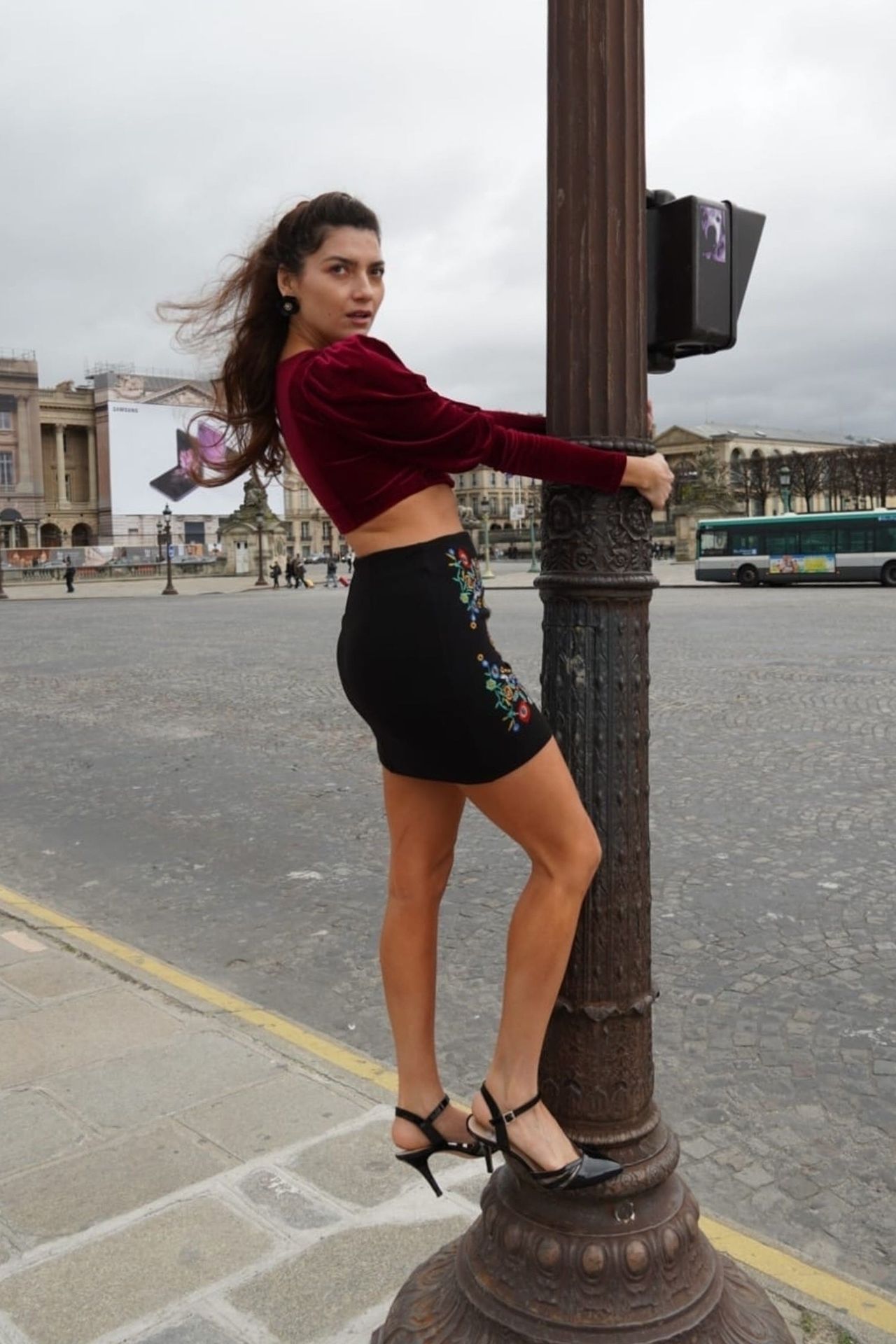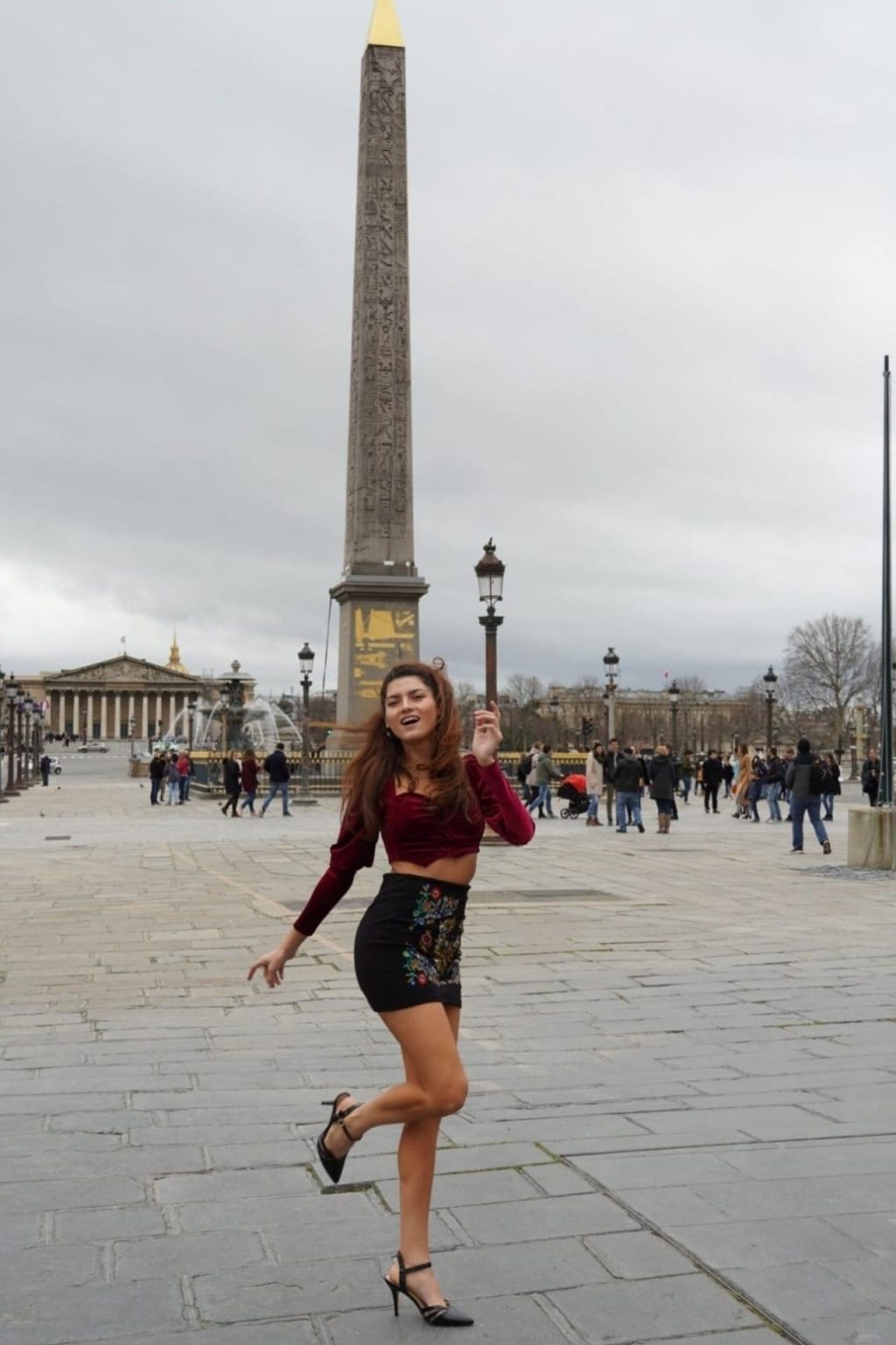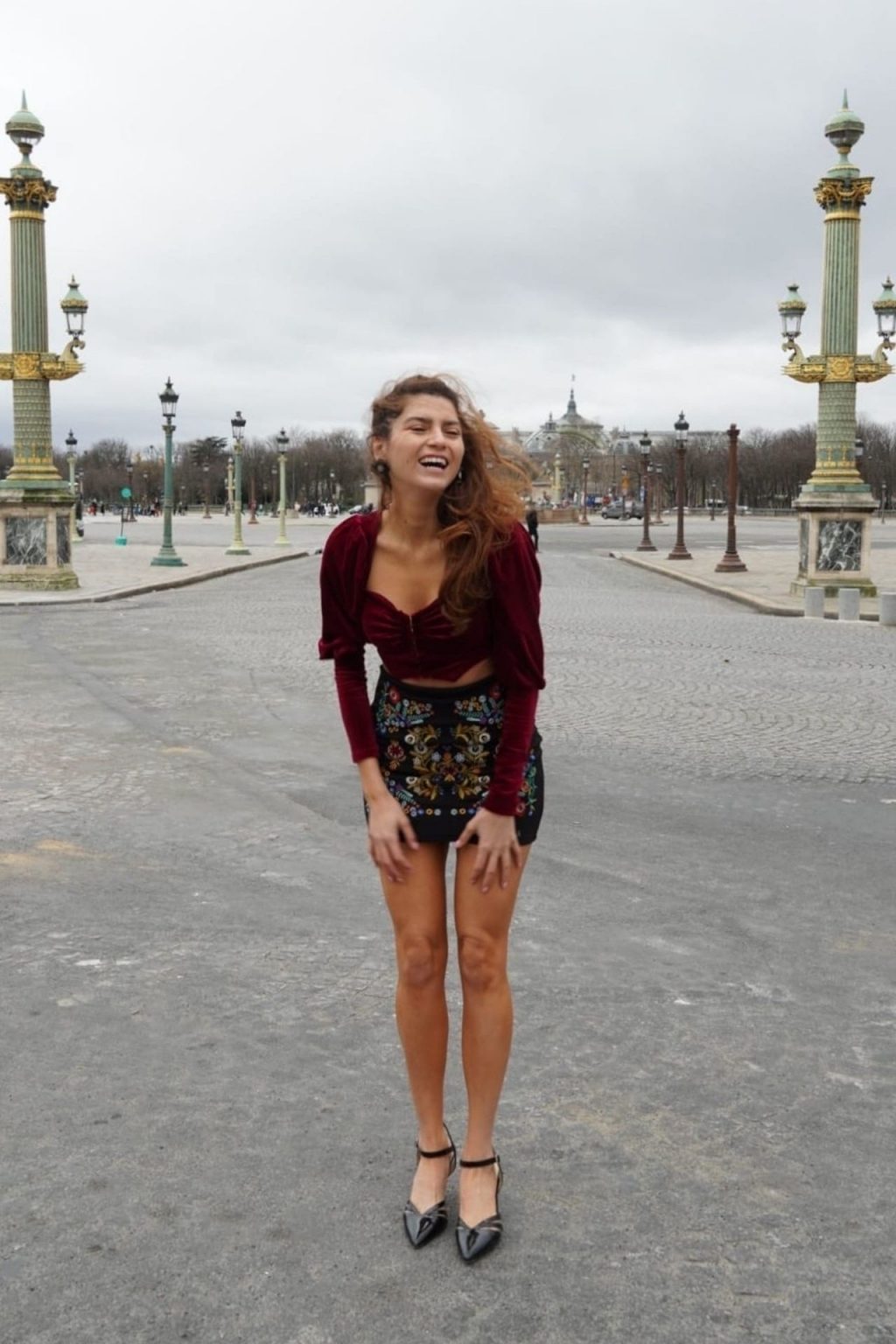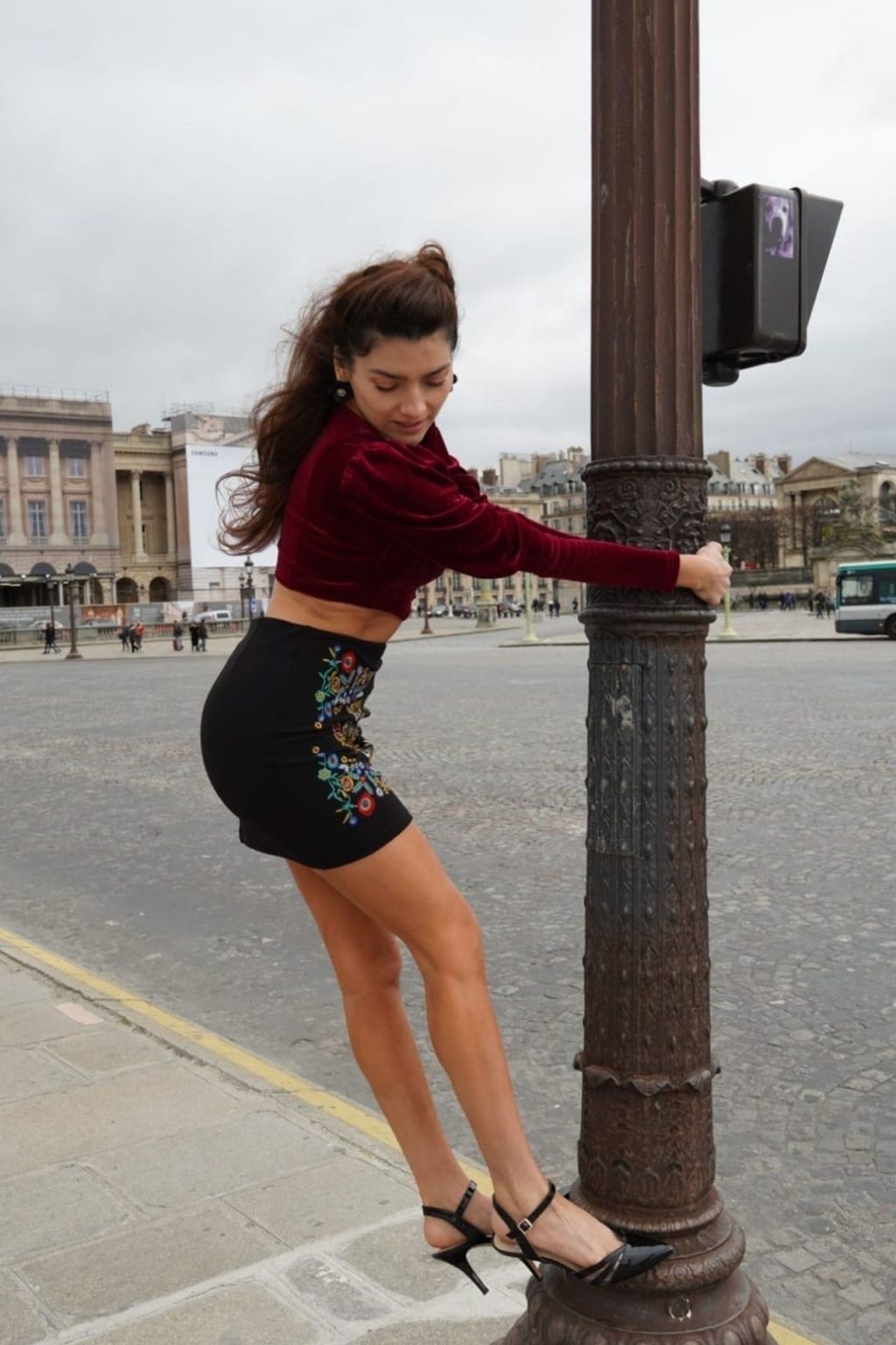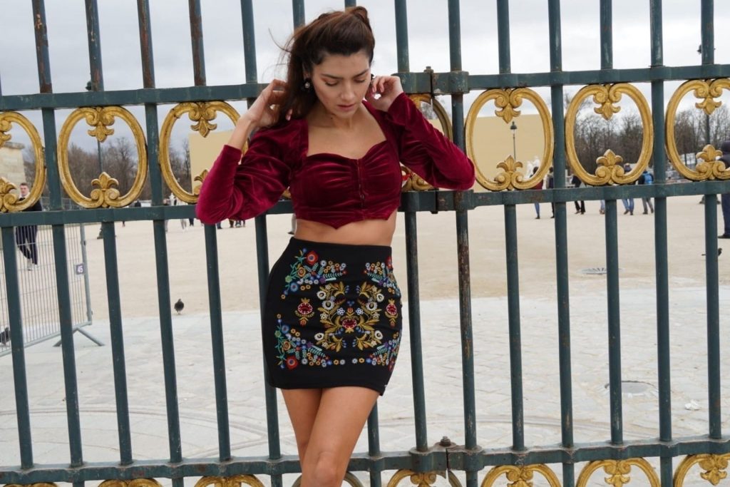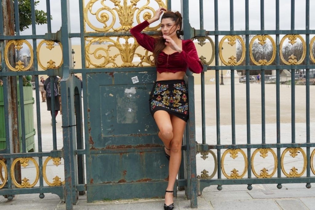 Atriz Blanca Blanco faz turismo e compra souvenirs durante a semana de moda em Paris, 25/02/2020.