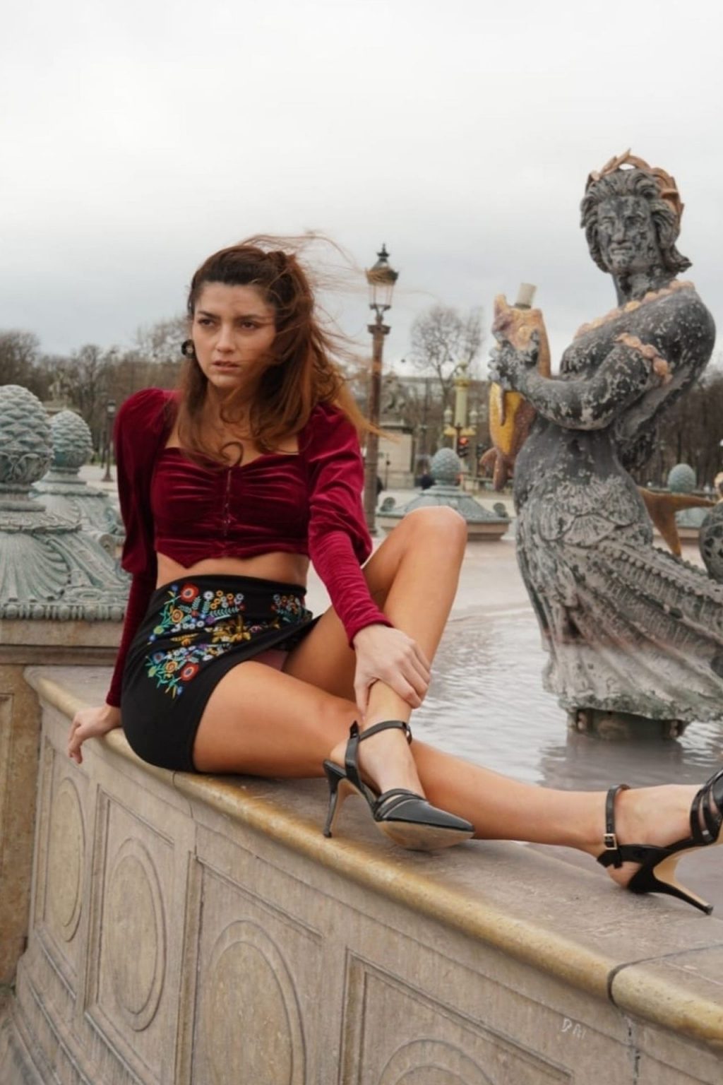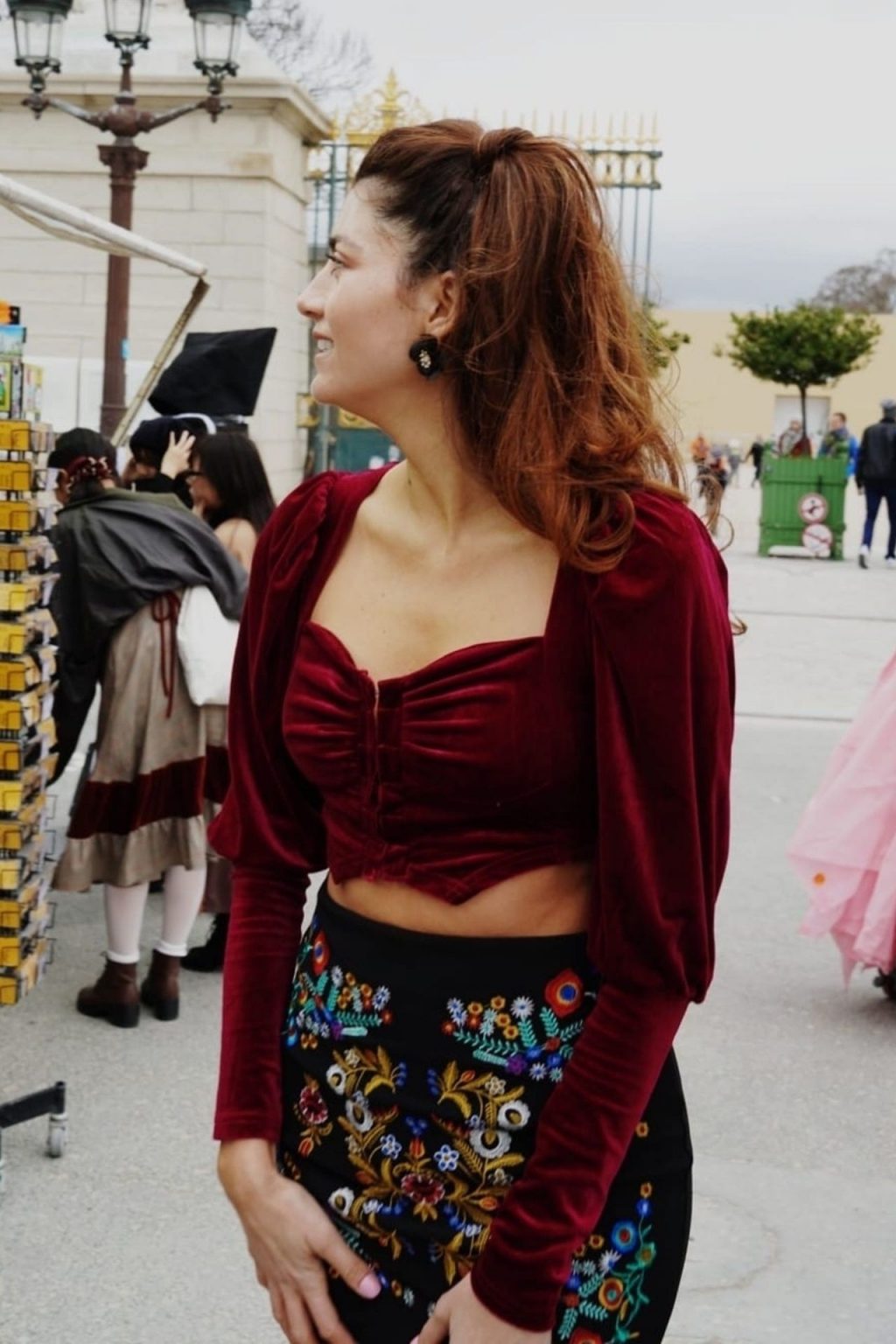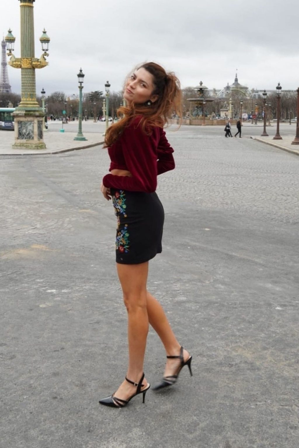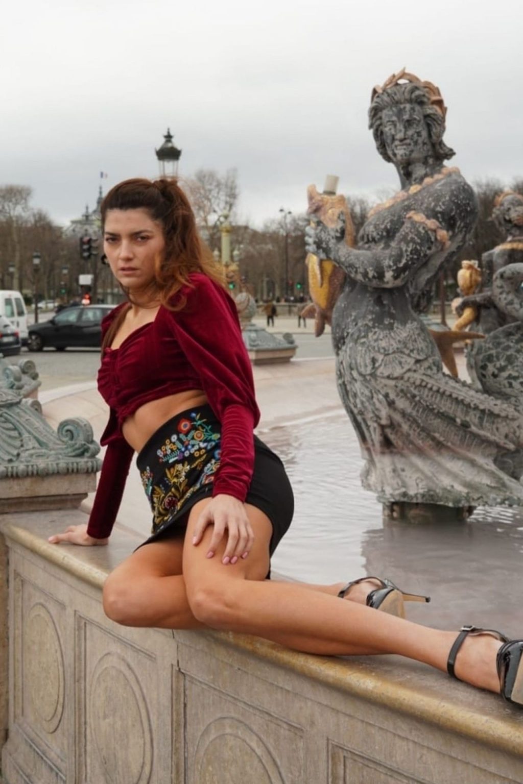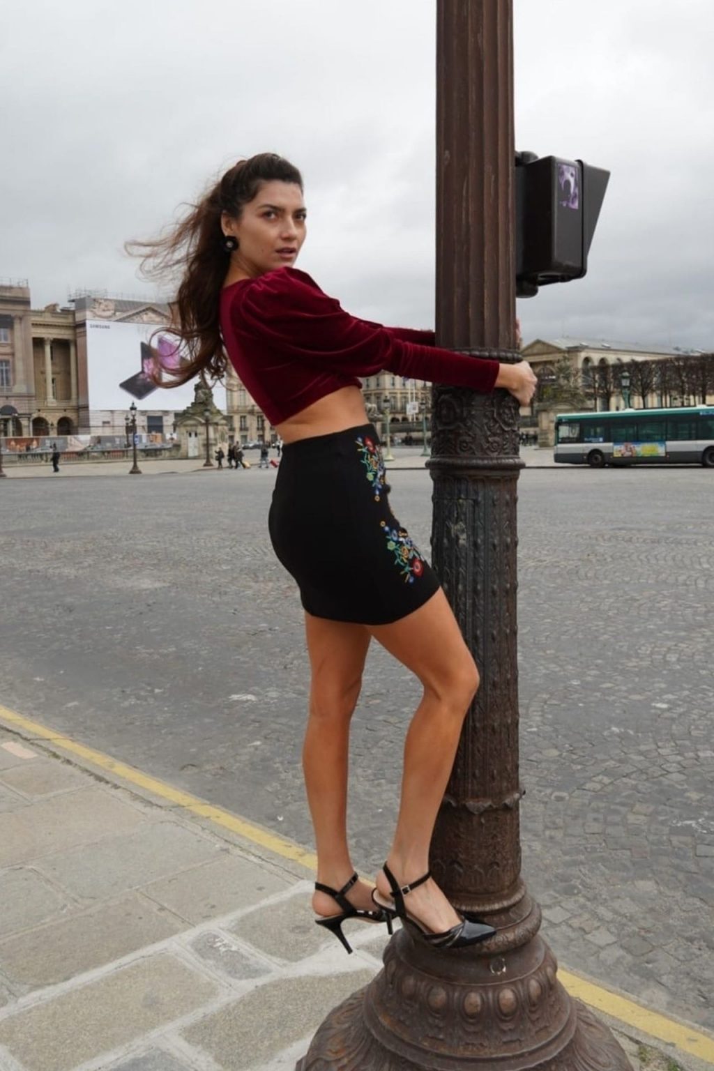 Atriz Blanca Blanco faz turismo e compra souvenirs durante a semana de moda em Paris, 25/02/2020.