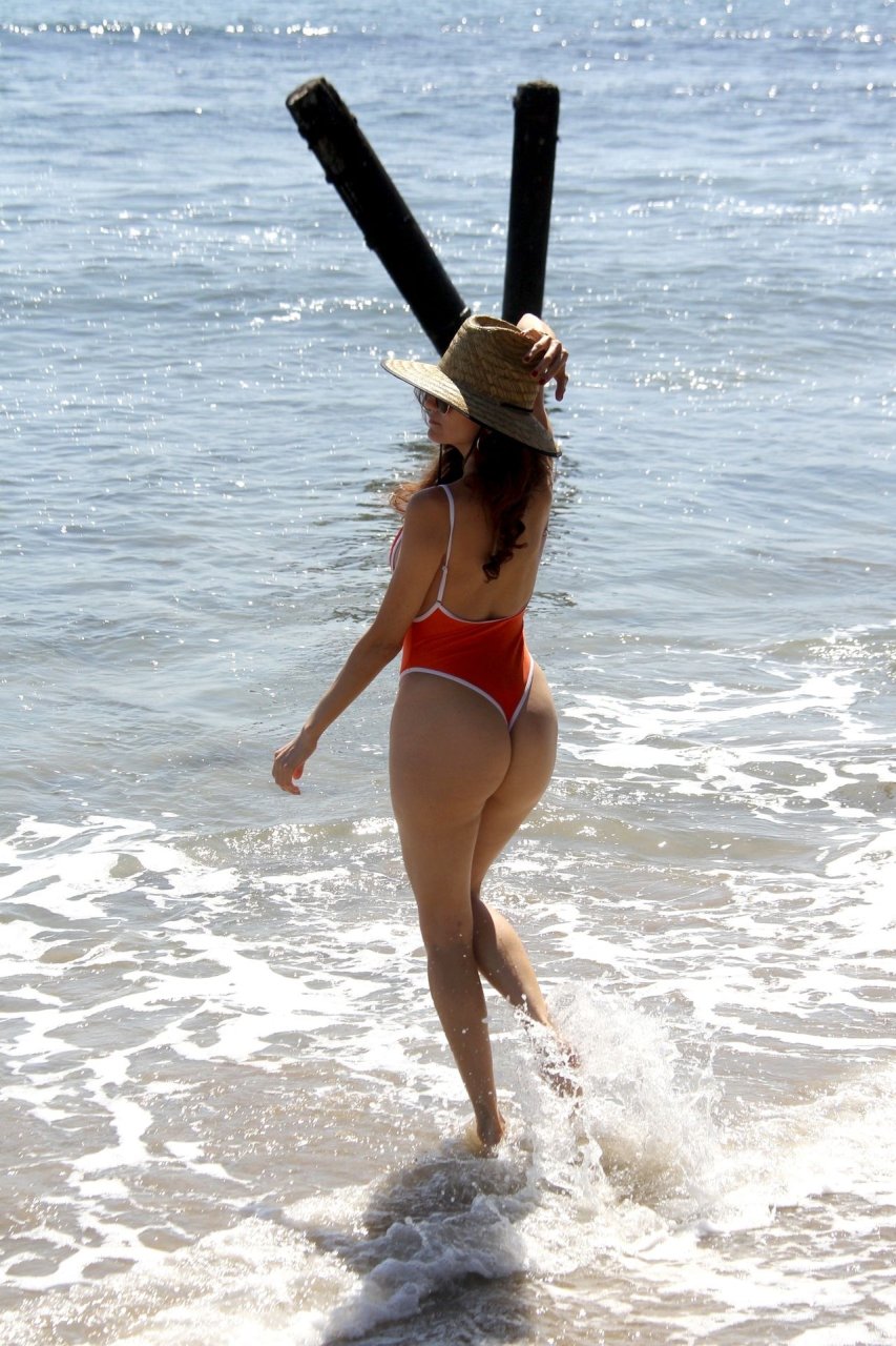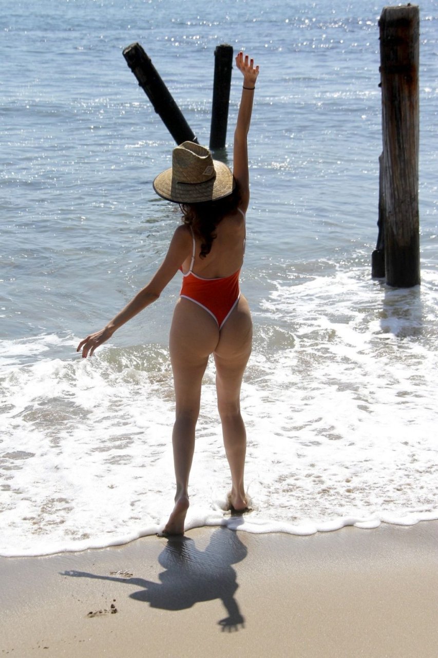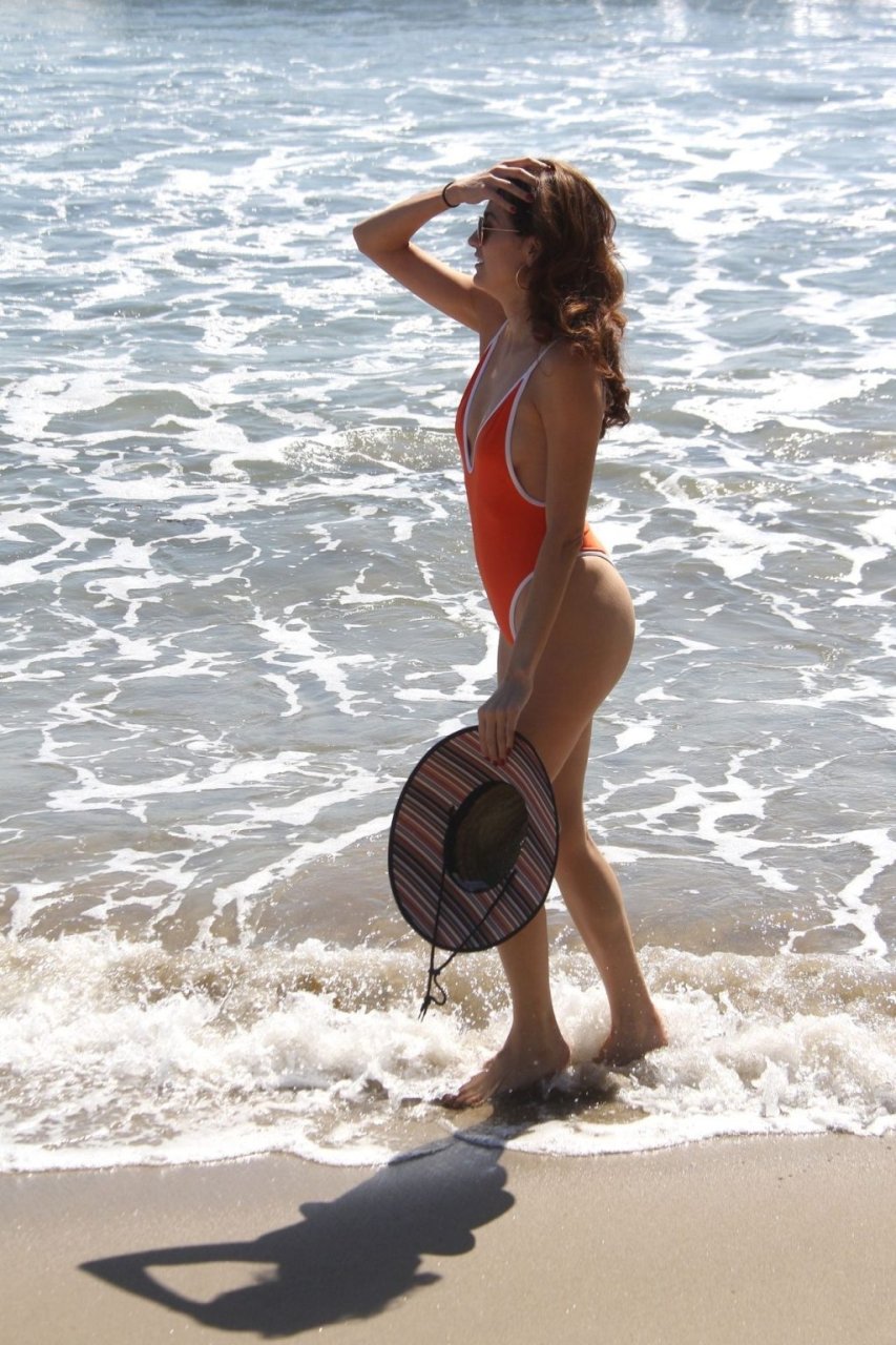 Atriz Blanca Blanco está deslumbrante em um maiô laranja sexy enquanto faz uma longa caminhada na praia em Malibu, 10/10/2019.