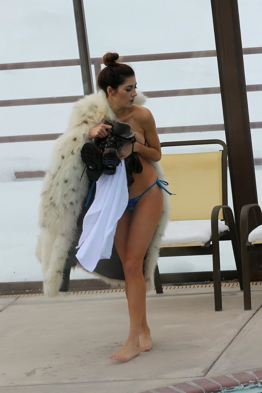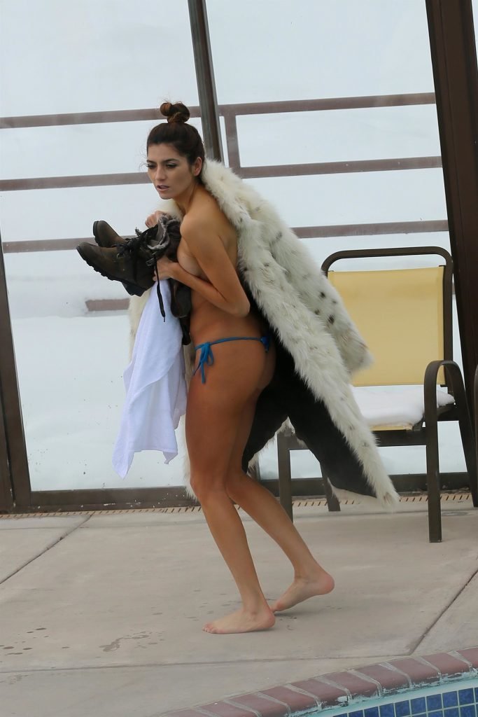 Atriz Blanca Blanco (37) aproveita a banheira de hidromassagem topless fora do Deer Valley Lodge após um longo dia de atividades no Festival de Cinema de Sundance – Park City, 24/01/2018.