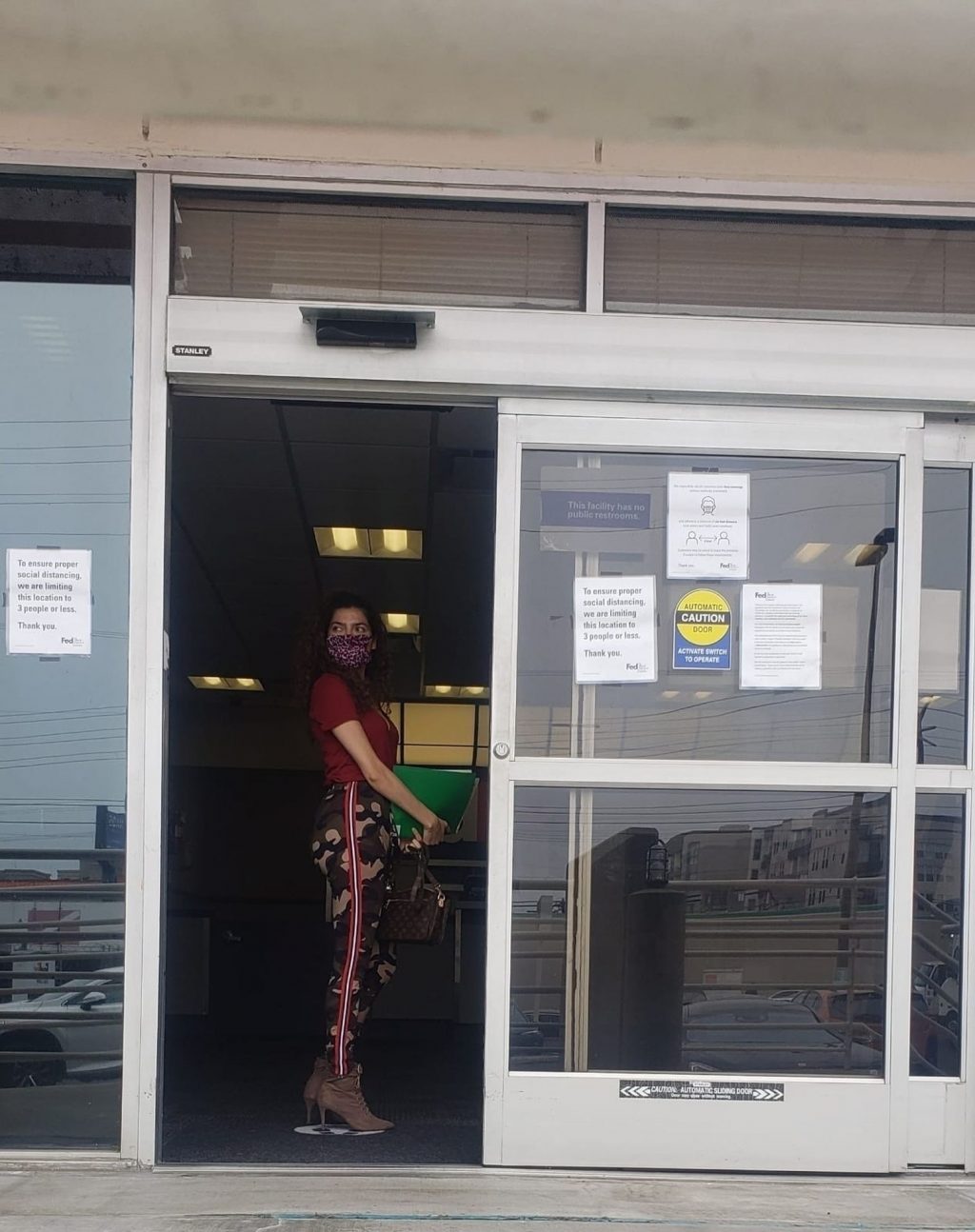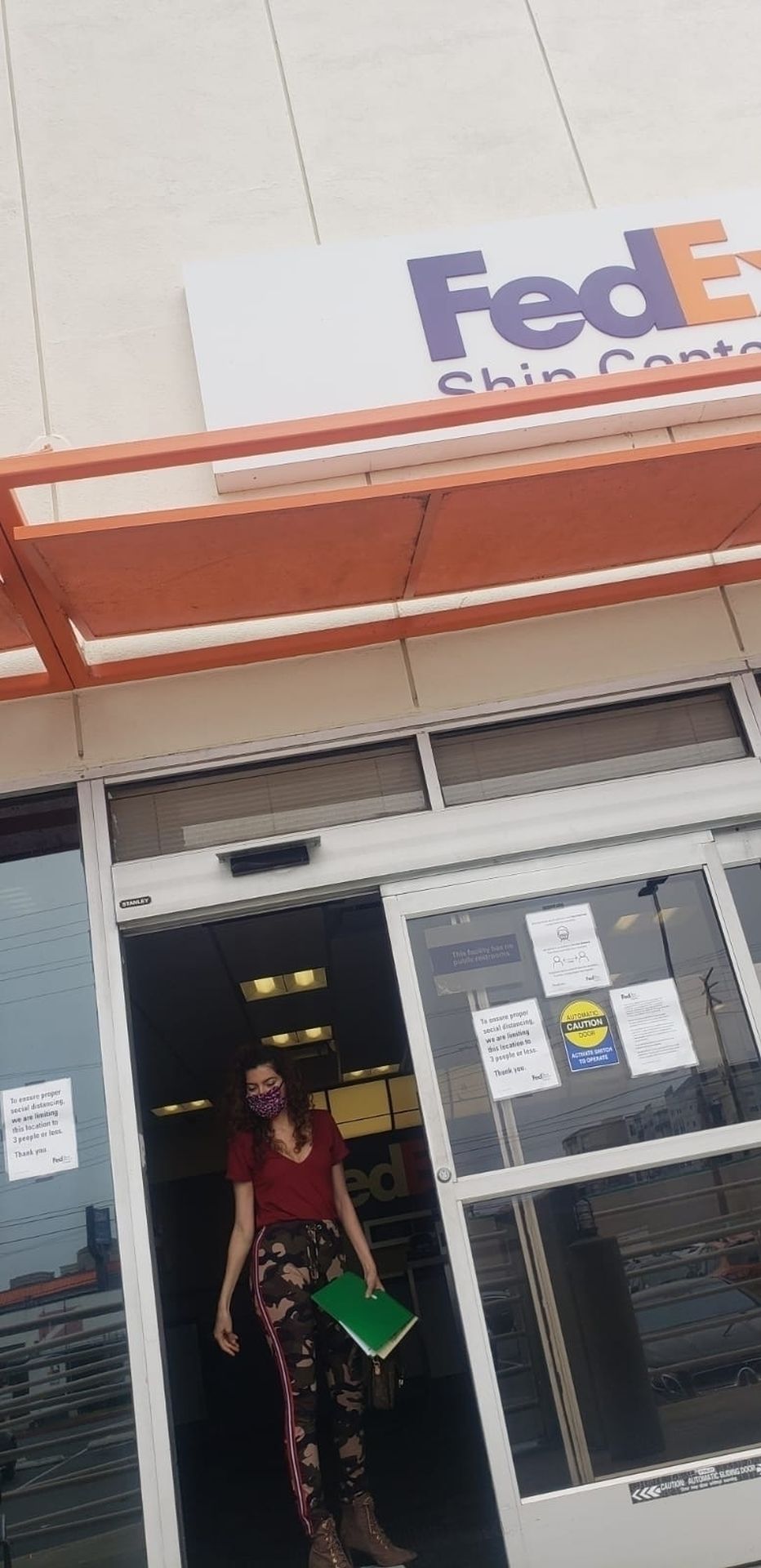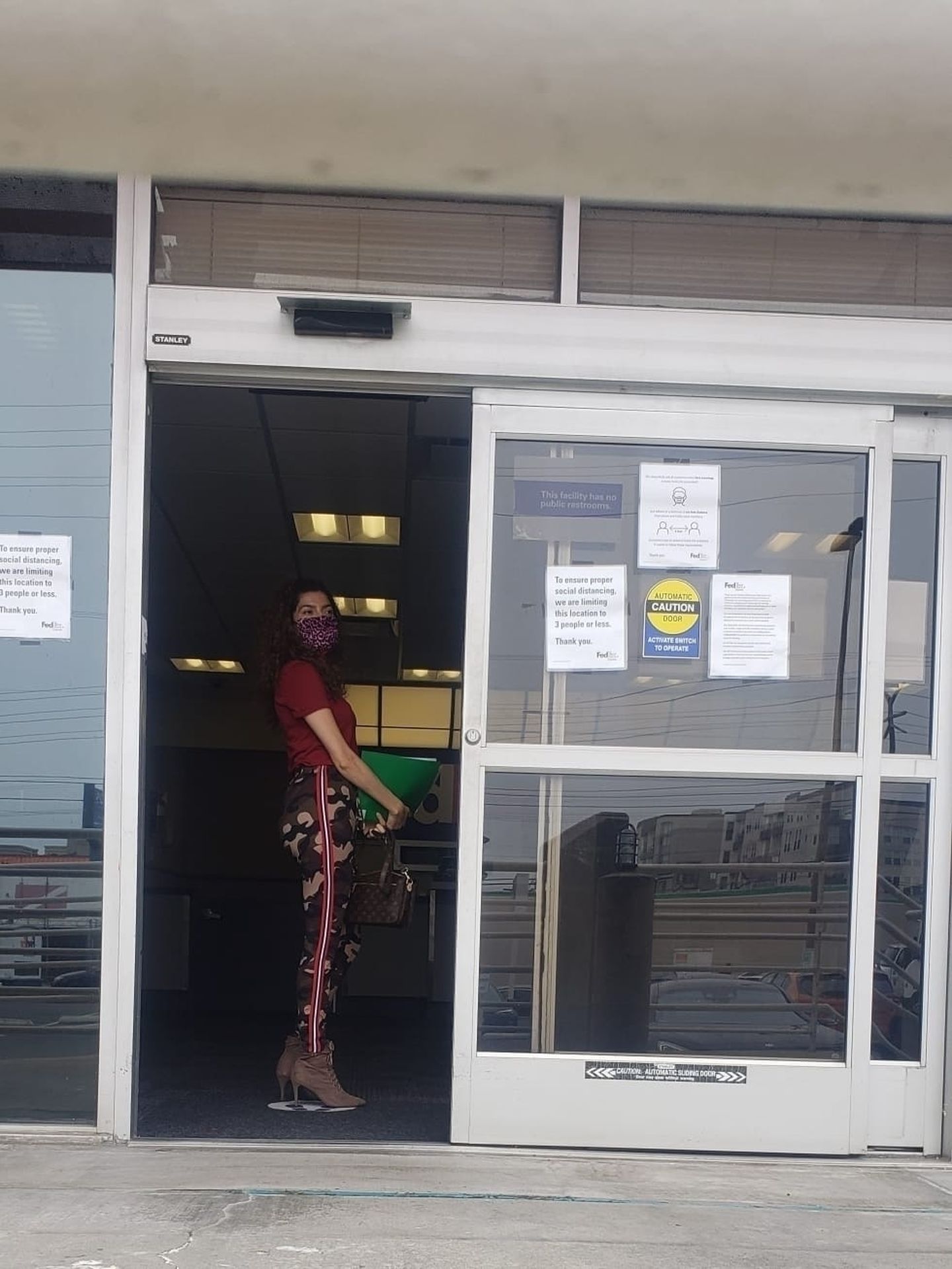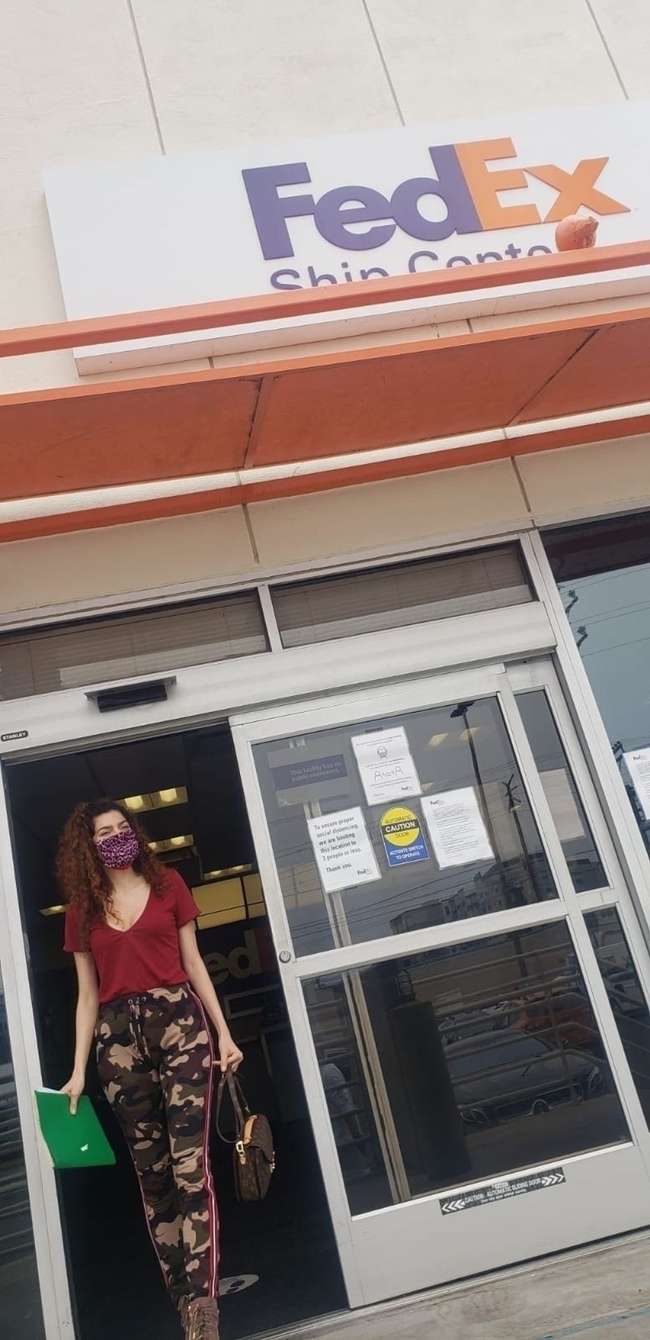 Blanca Blanco vai ao FedEx em Los Angeles, 30/05/2020. A atriz exibe seu decote na rua.
