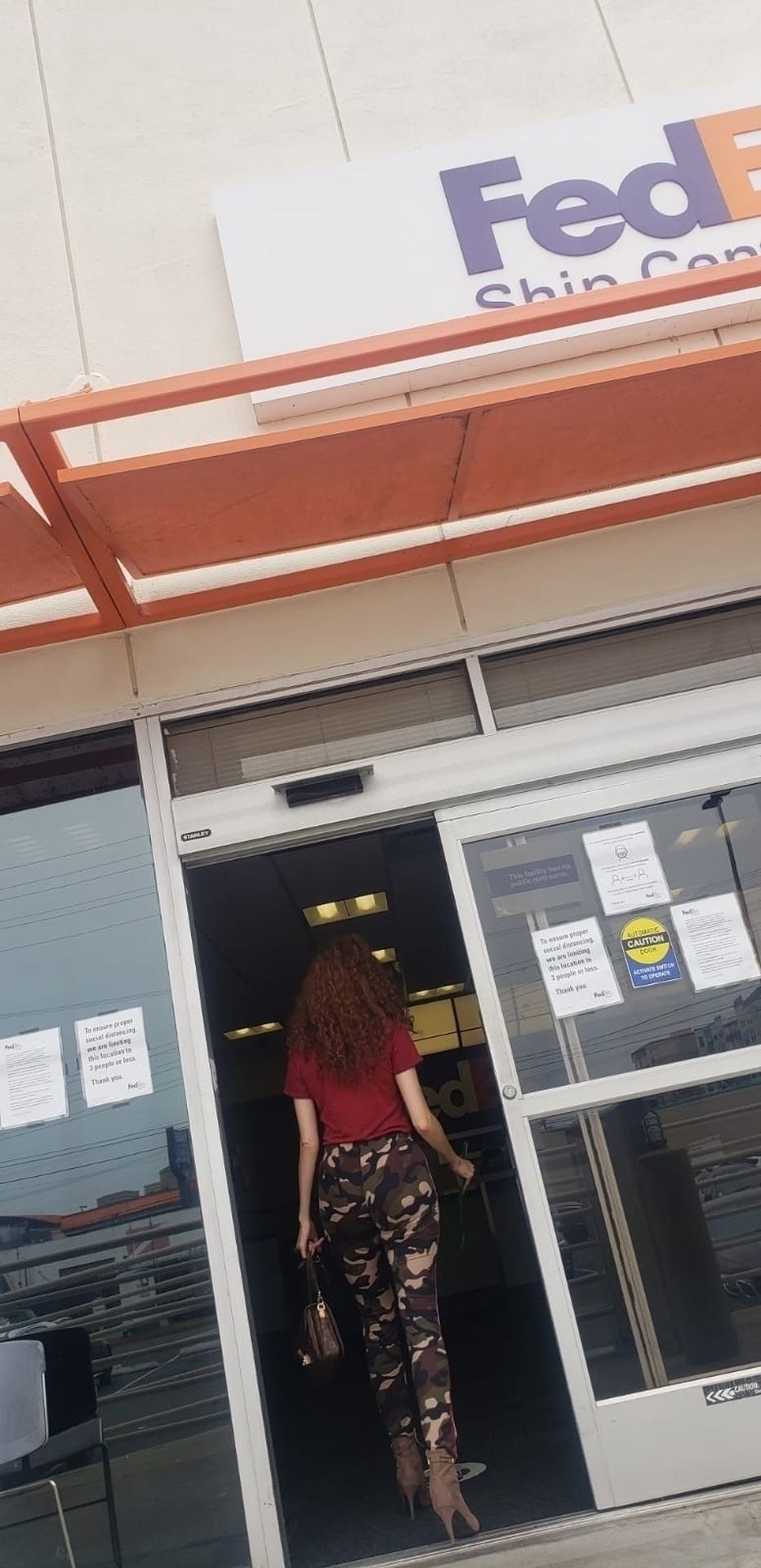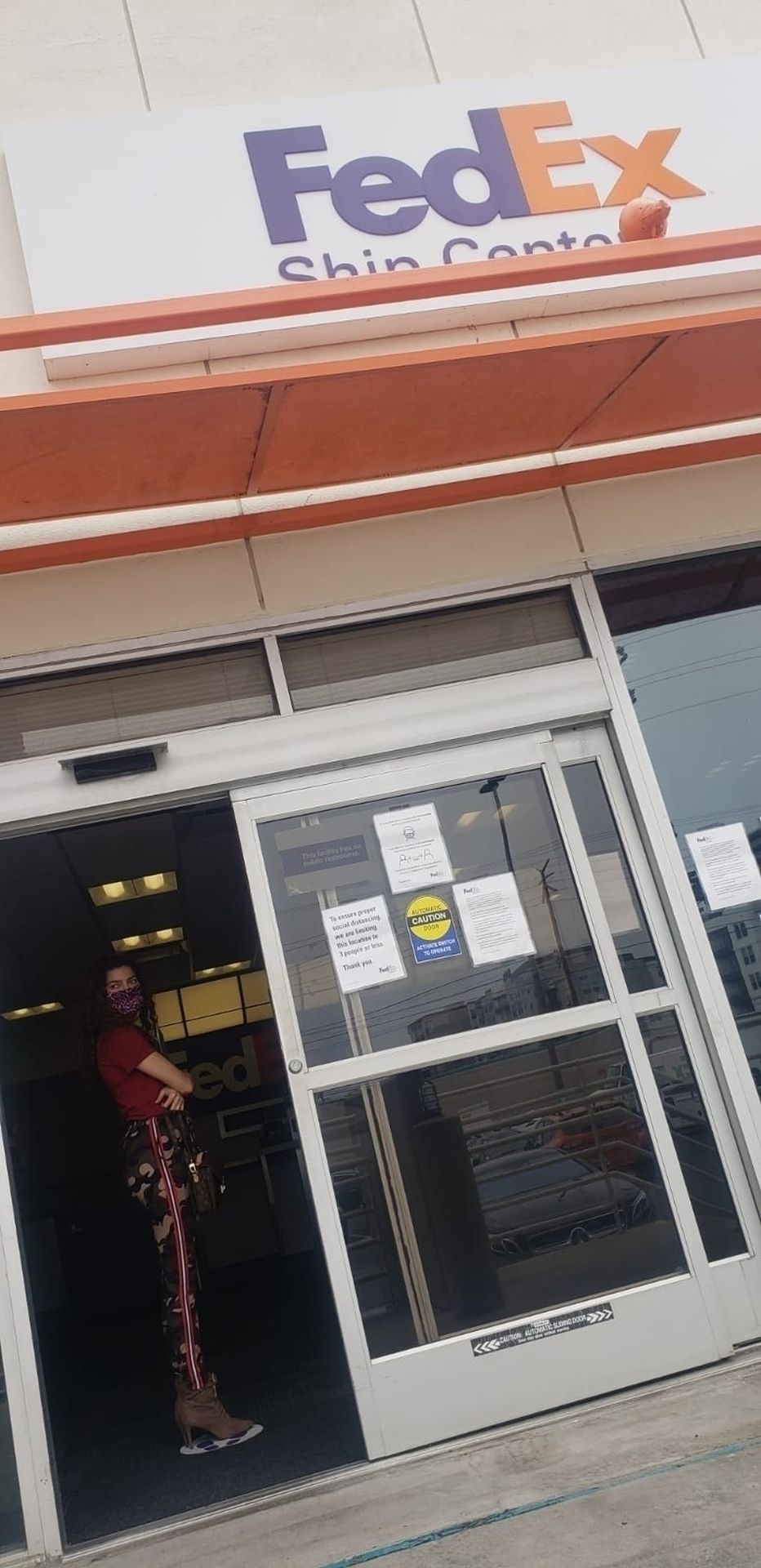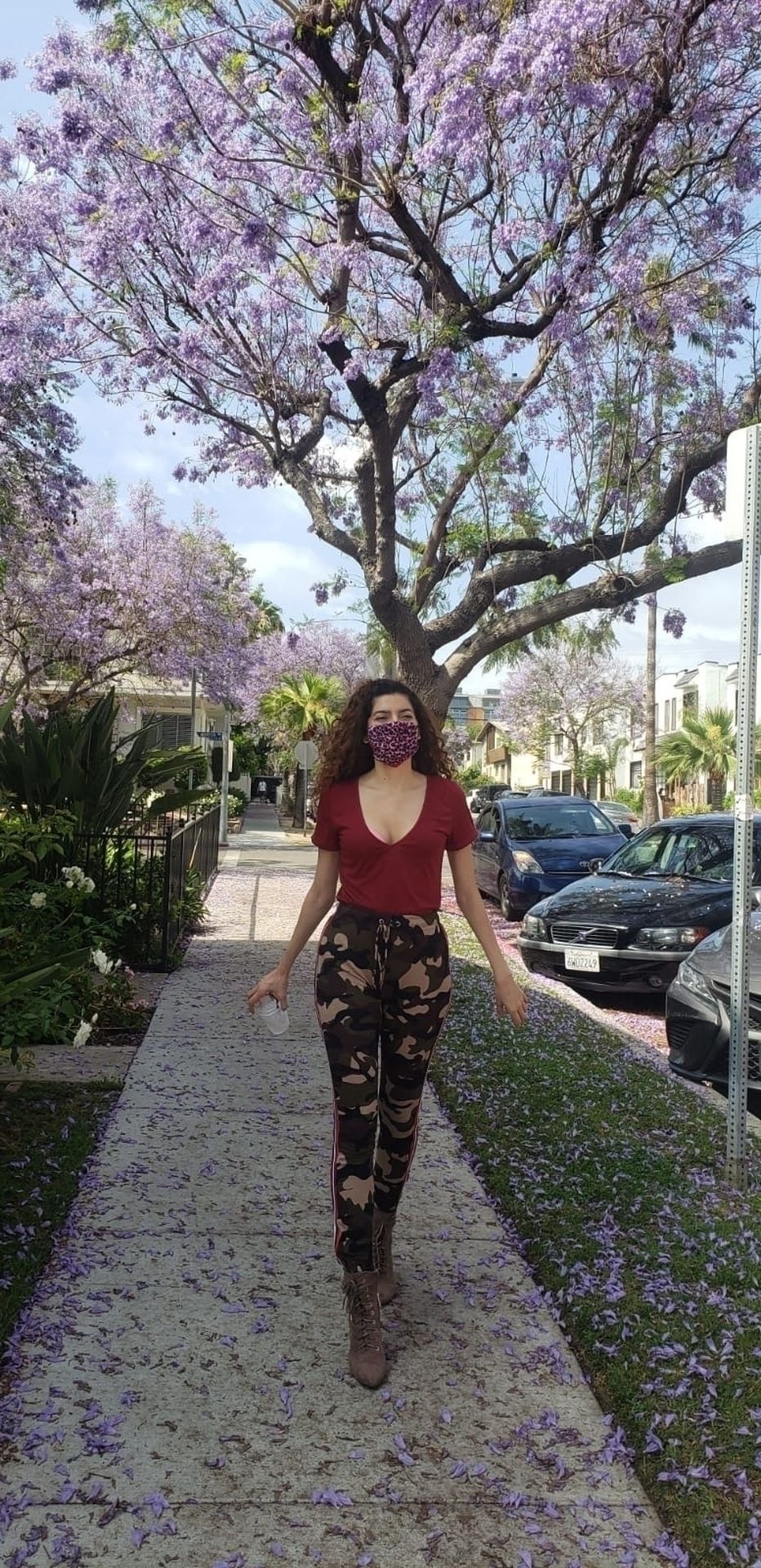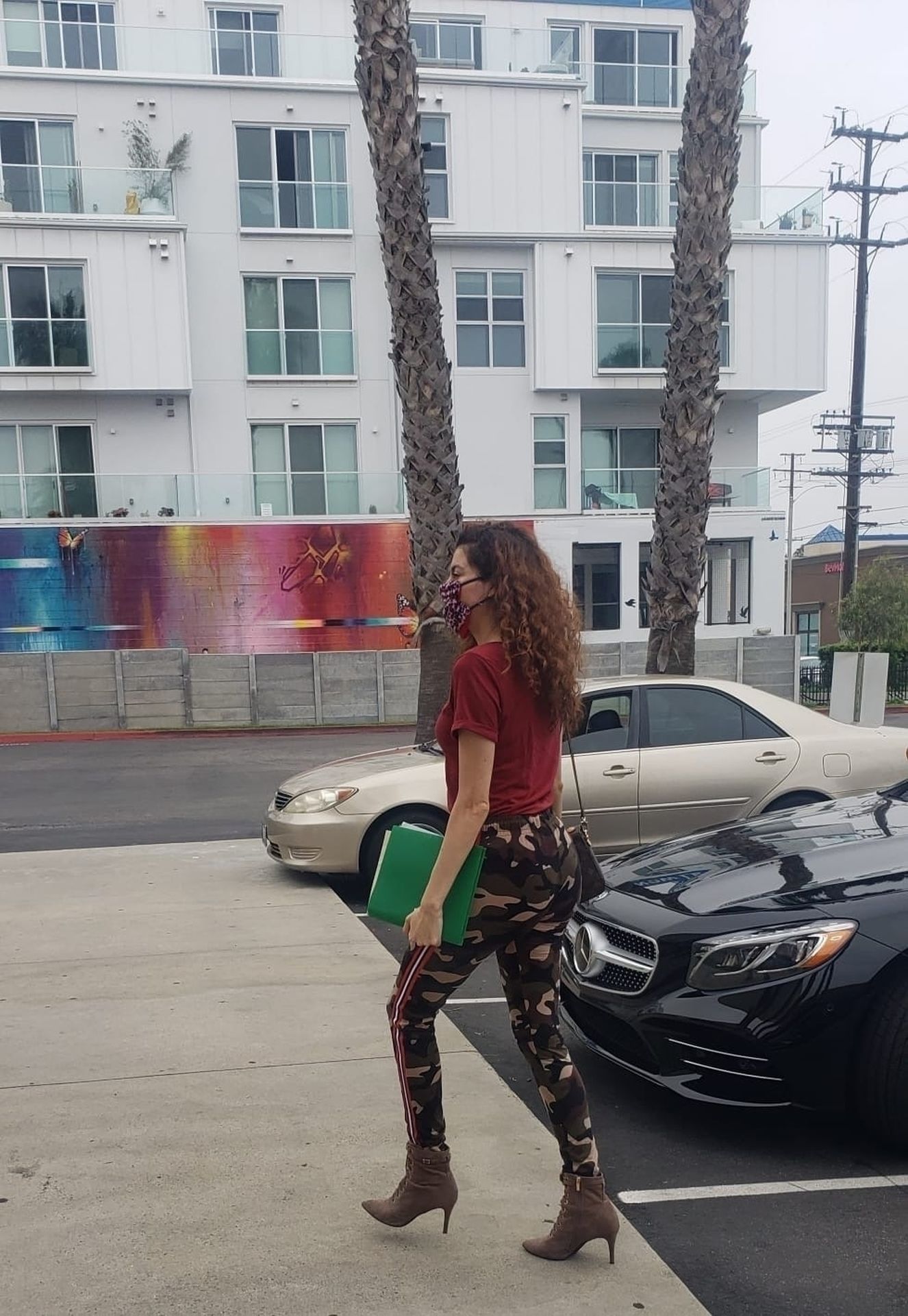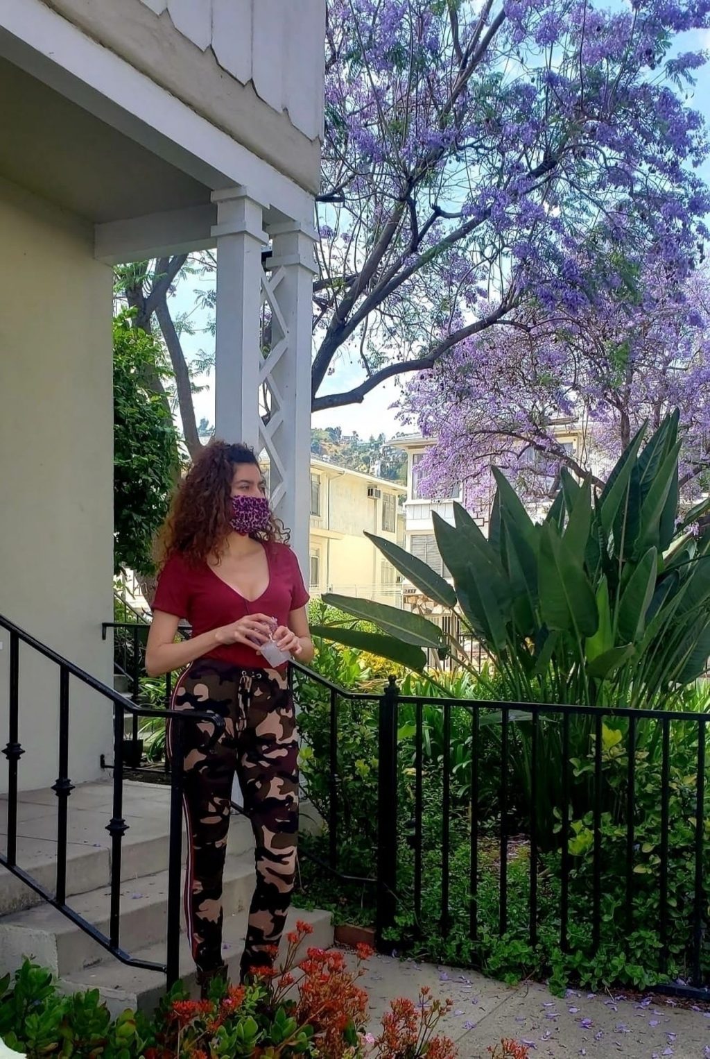 Blanca Blanco vai ao FedEx em Los Angeles, 30/05/2020. A atriz exibe seu decote na rua.