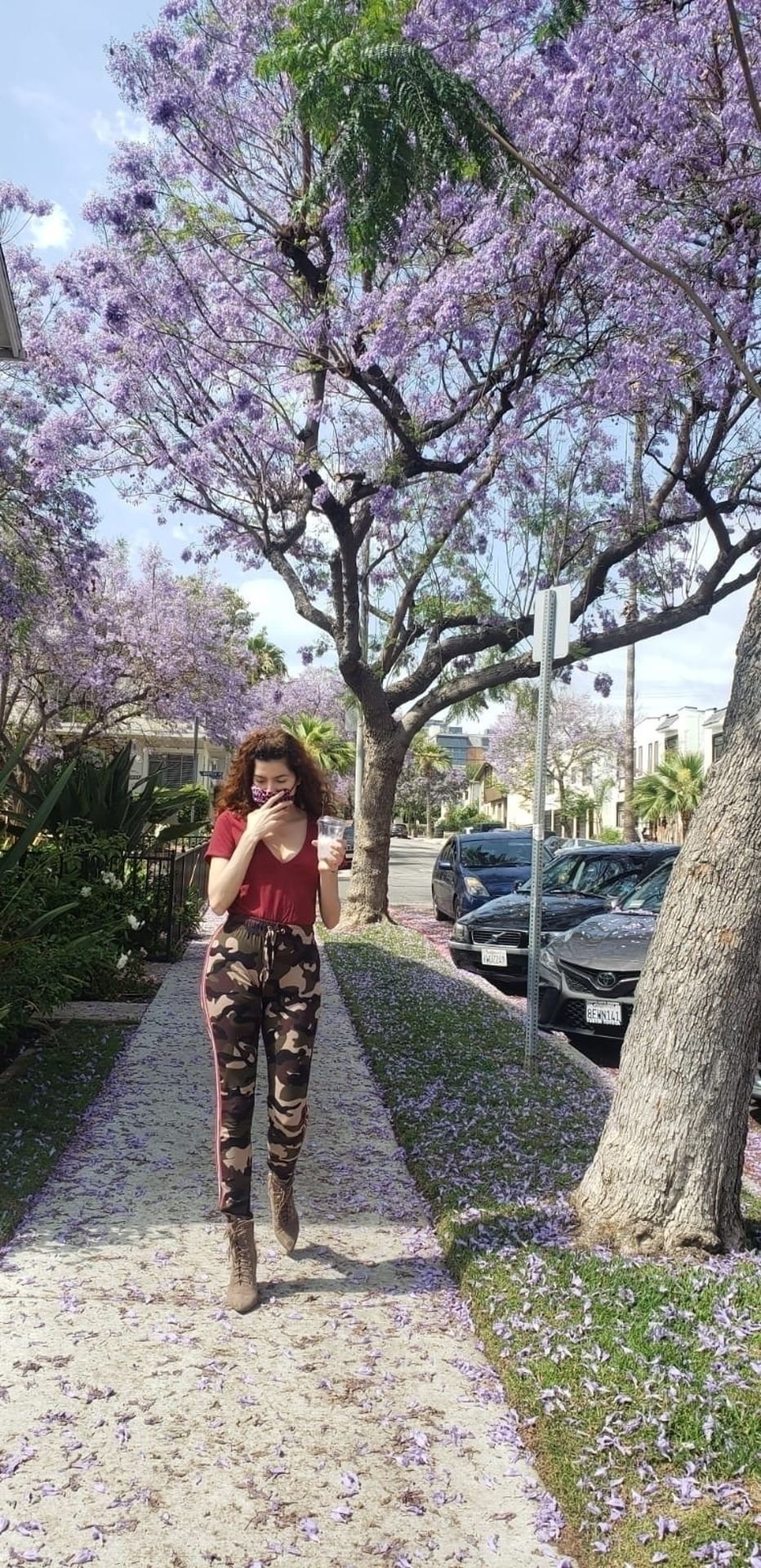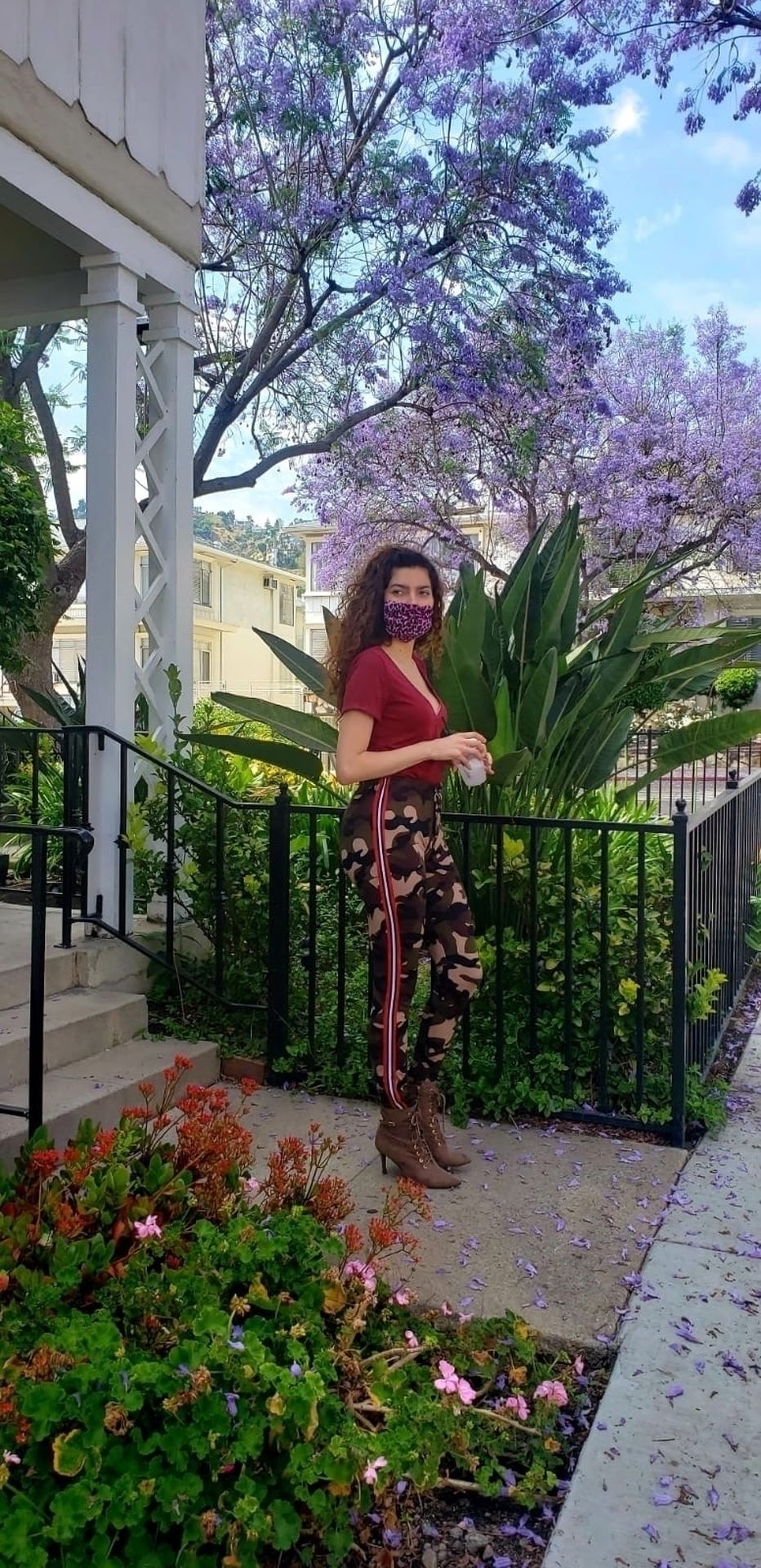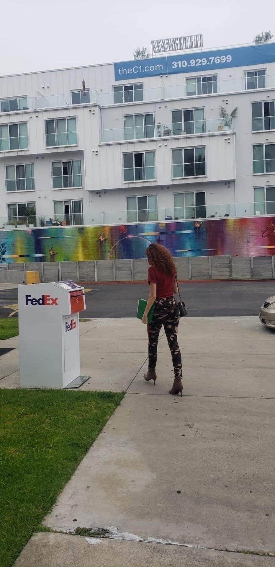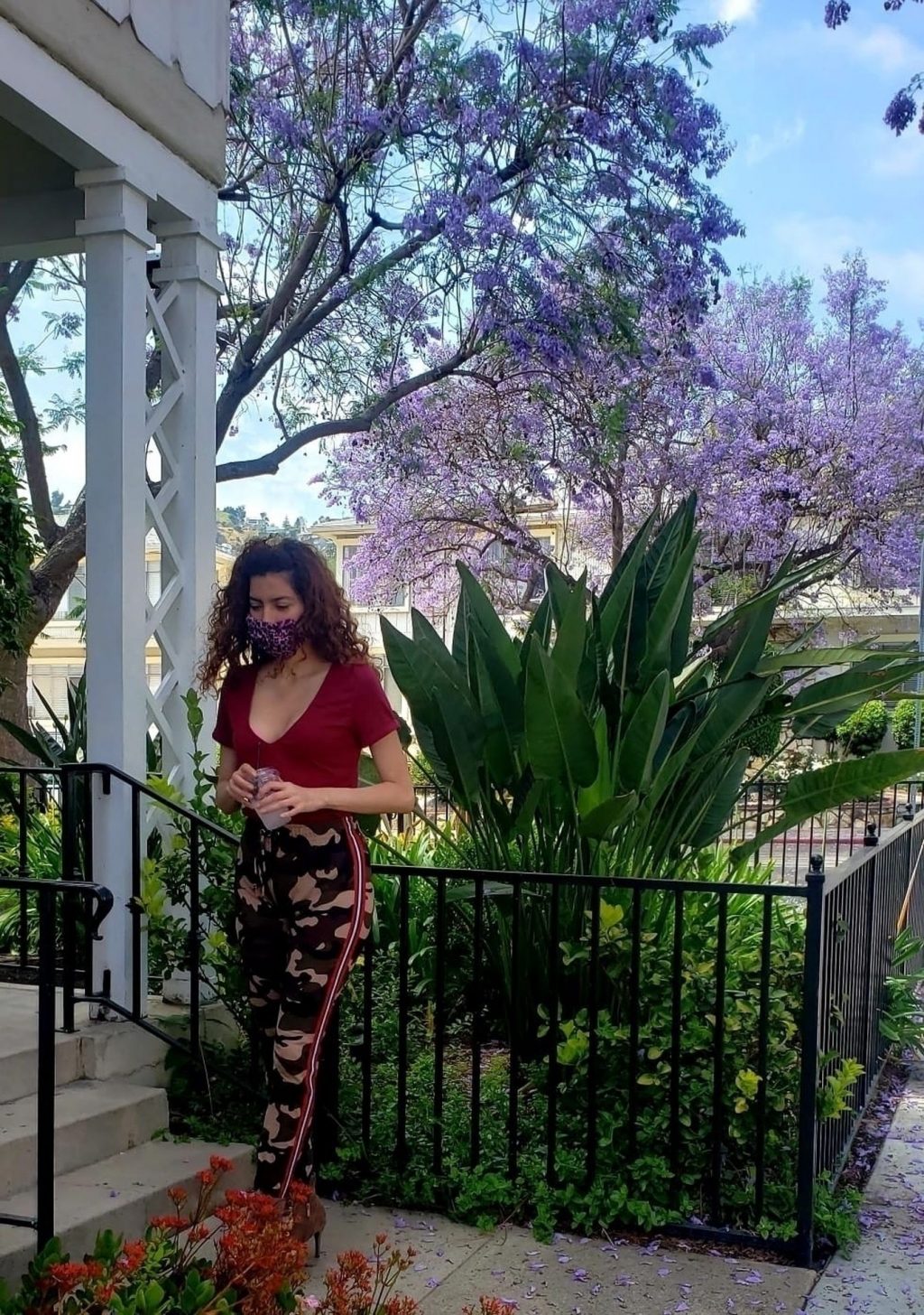 Blanca Blanco vai ao FedEx em Los Angeles, 30/05/2020. A atriz exibe seu decote na rua.