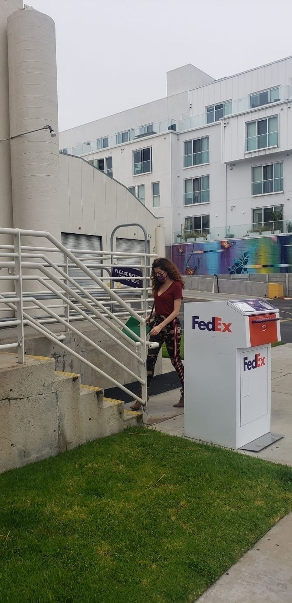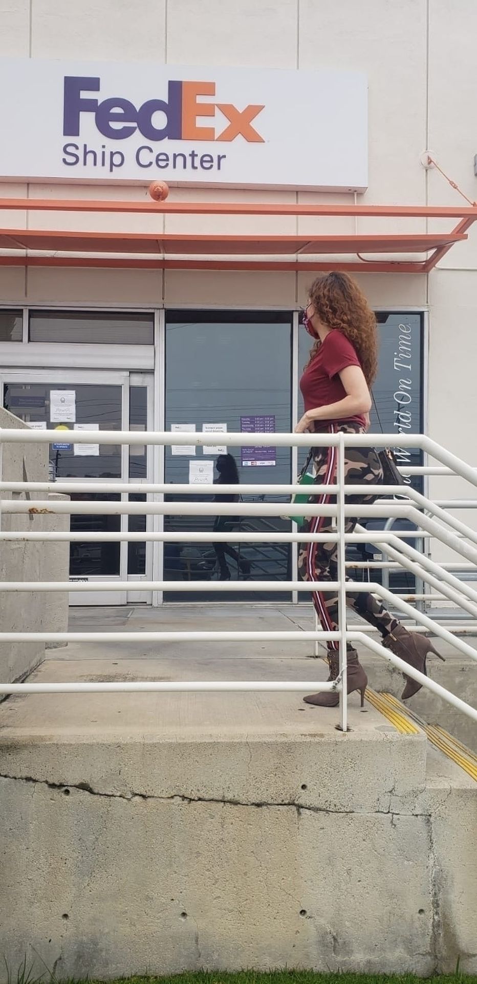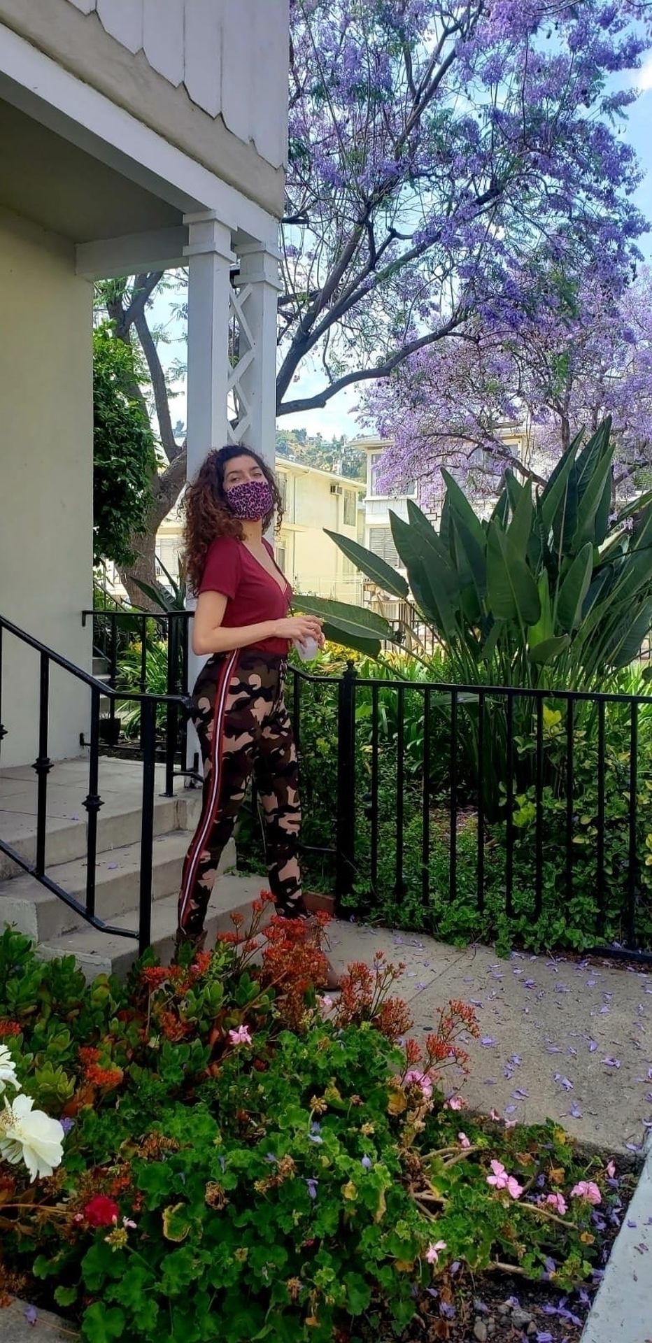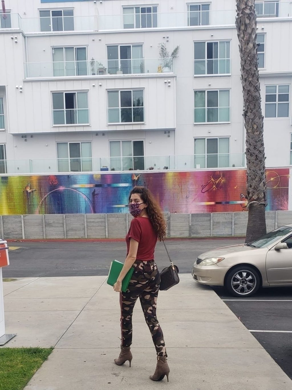 Blanca Blanco vai ao FedEx em Los Angeles, 30/05/2020. A atriz exibe seu decote na rua.