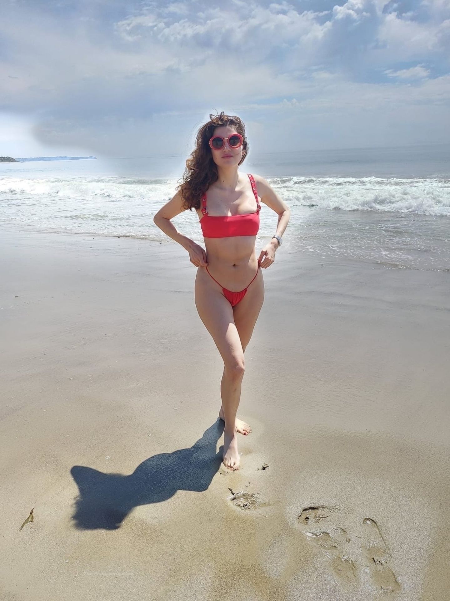 Profissional da área médica que virou atriz, Blanca Blanco tirou um tempo para aproveitar um dia na praia enquanto vestia um biquíni quente em Malibu, 16/04/2021.