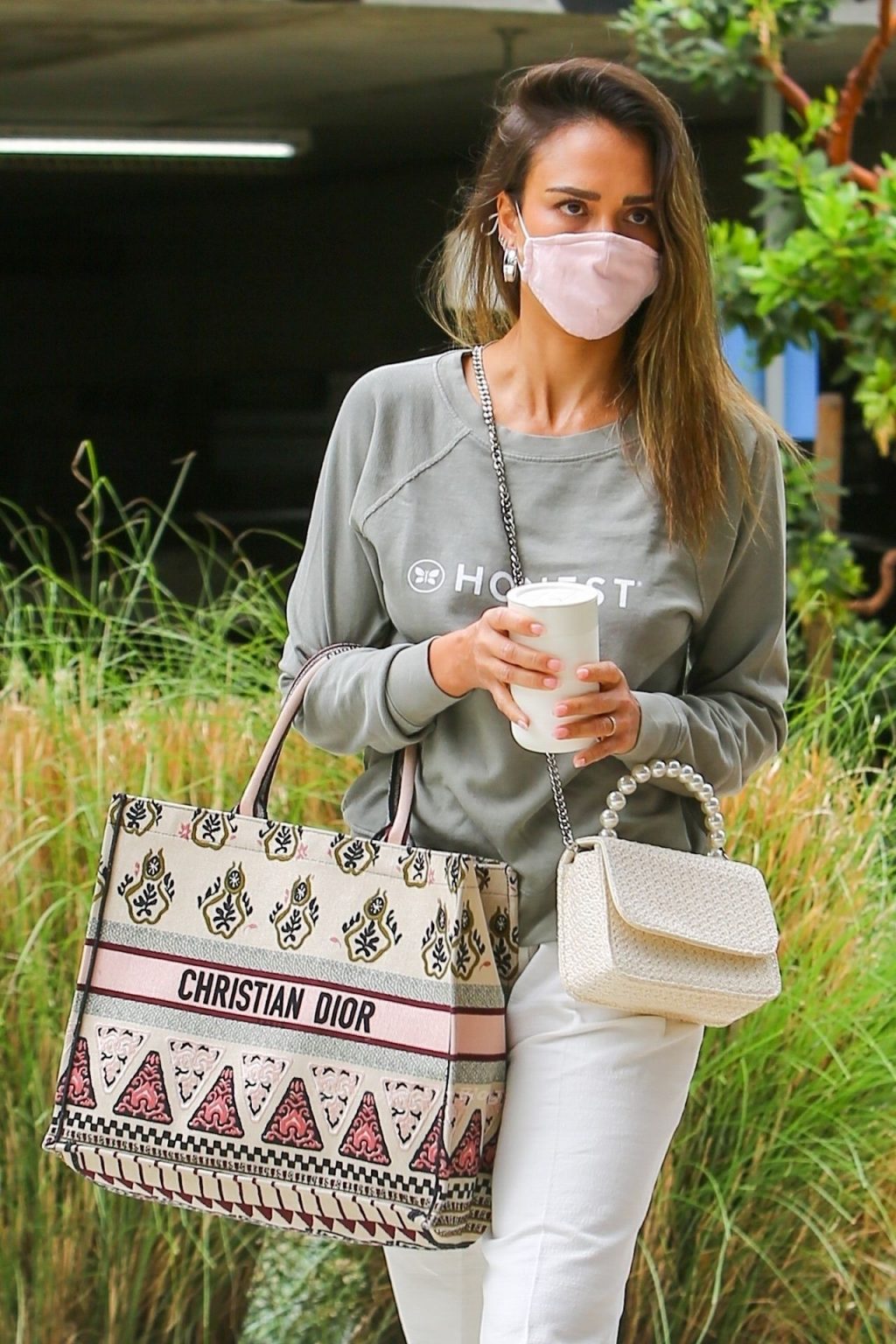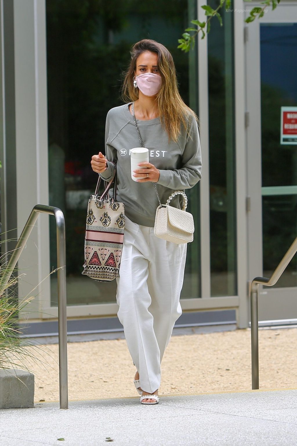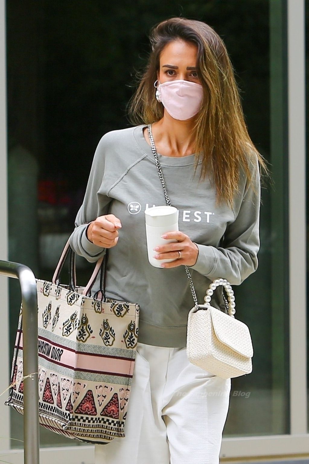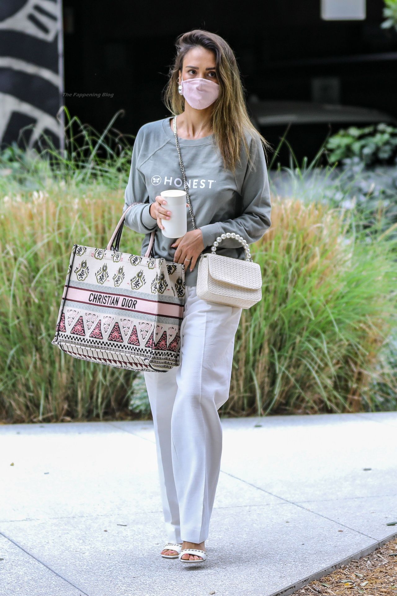 A atriz Jessica Alba chega ao seu escritório vestindo um moletom Honest um dia depois que as ações da empresa caíram abaixo do preço de IPO de US$ 16 – Playa Vista, 12/05/2021.