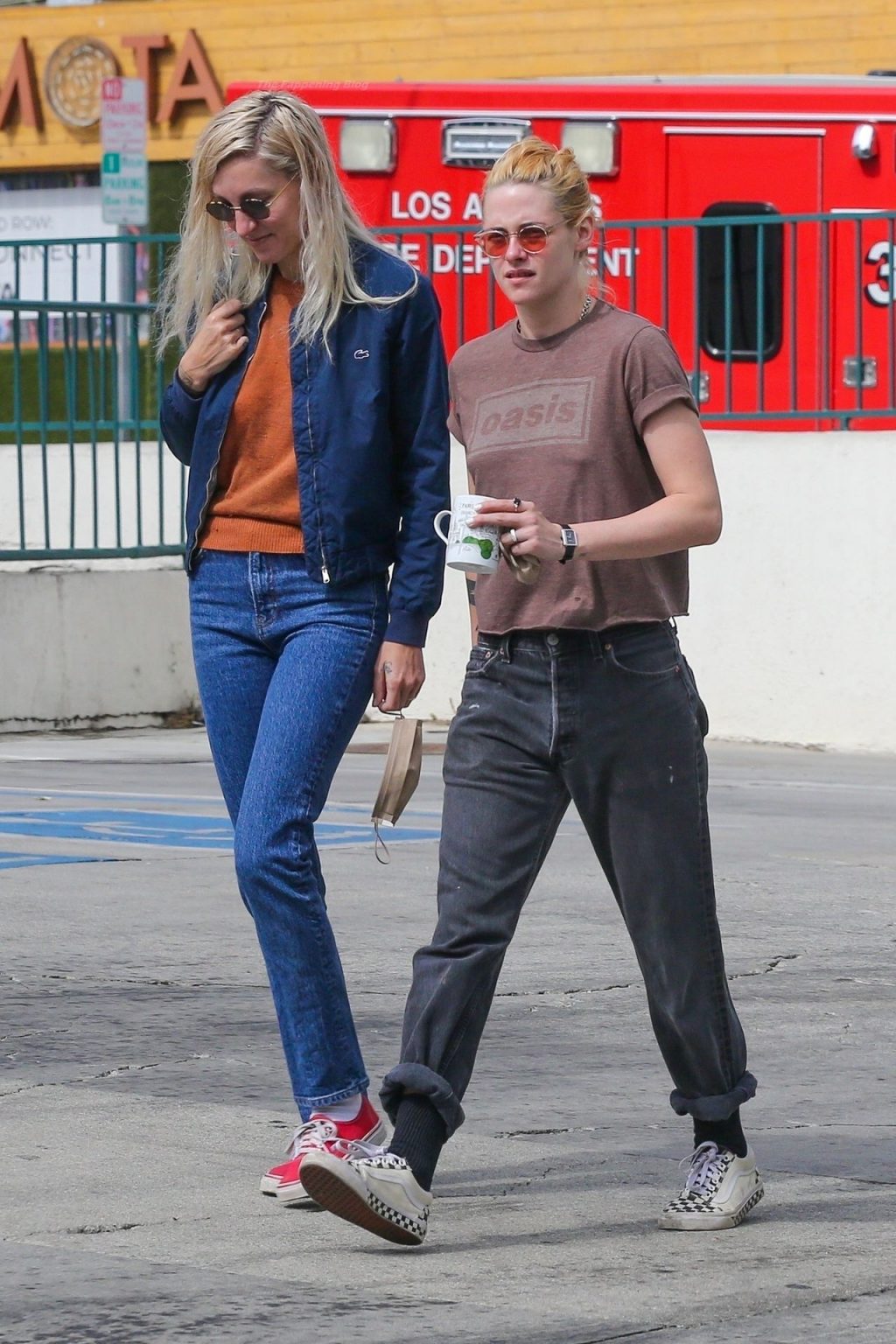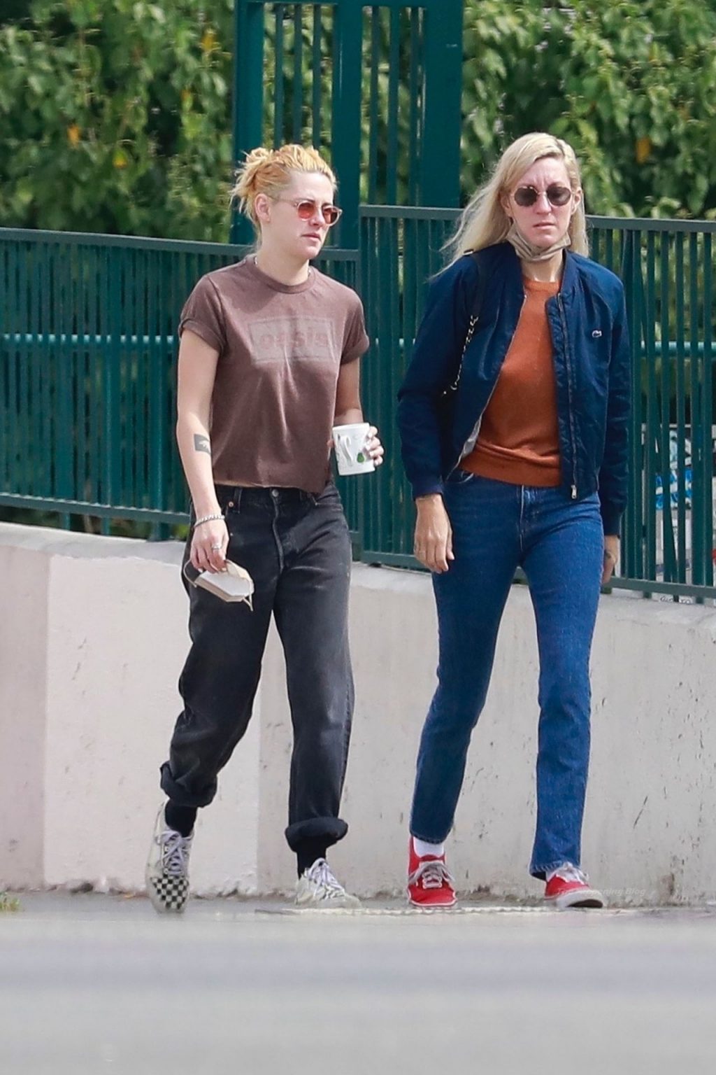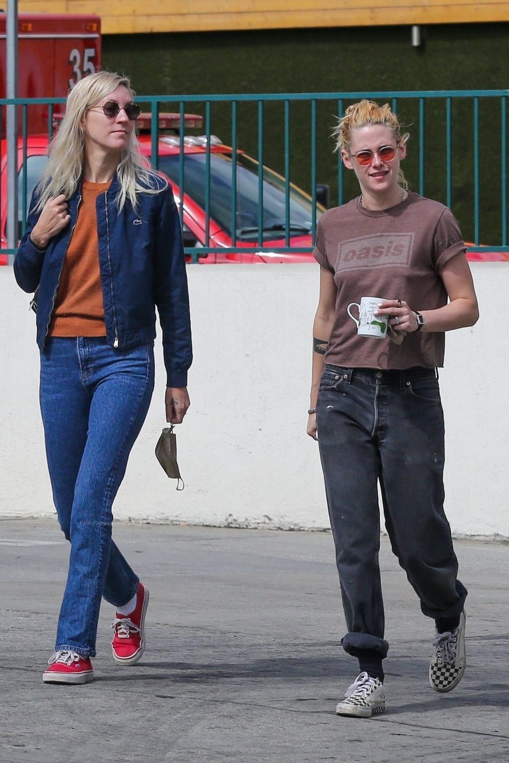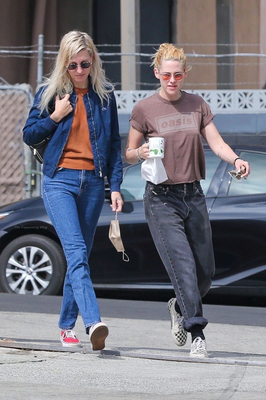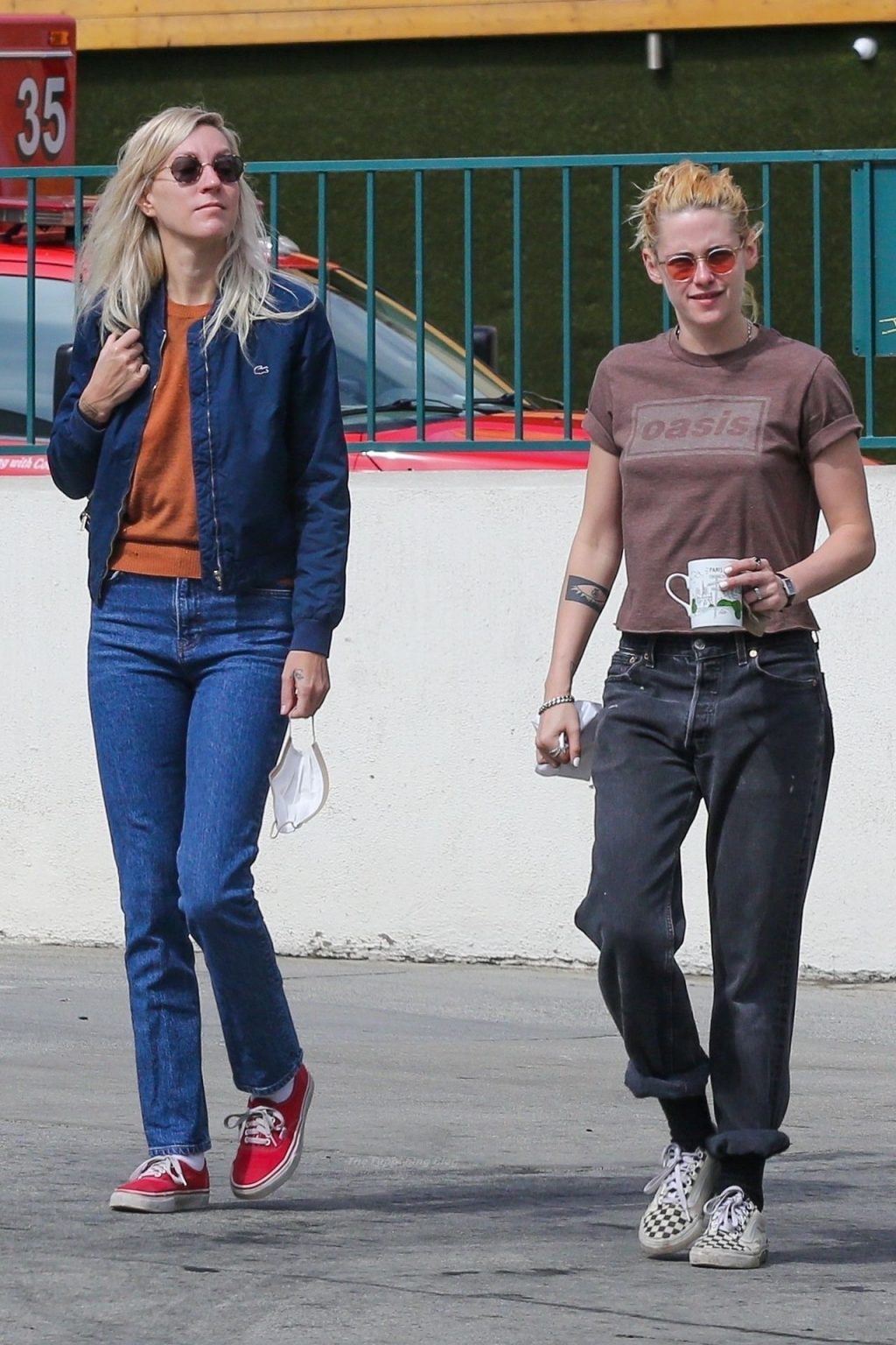 A estrela de The Fappening Kristen Stewart e Dylan Meyer passam pela MOTA – Medicine Of The Angels, 18/09/2021. K-Stew usava uma camiseta legal da banda Oasis com jeans escuro e tênis branco.