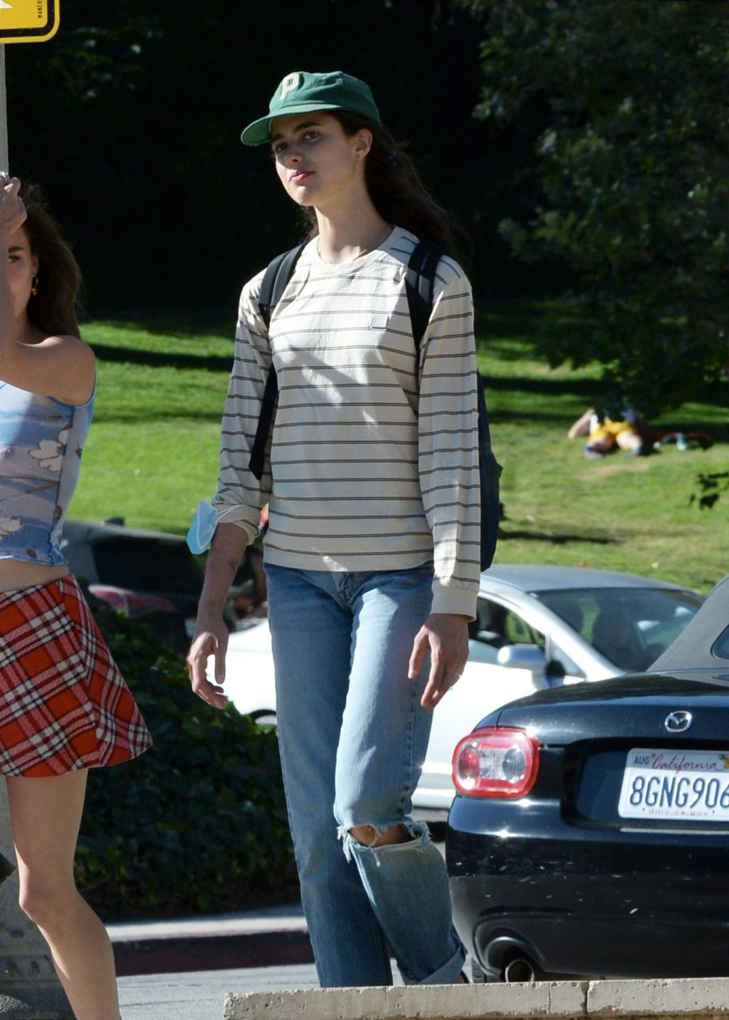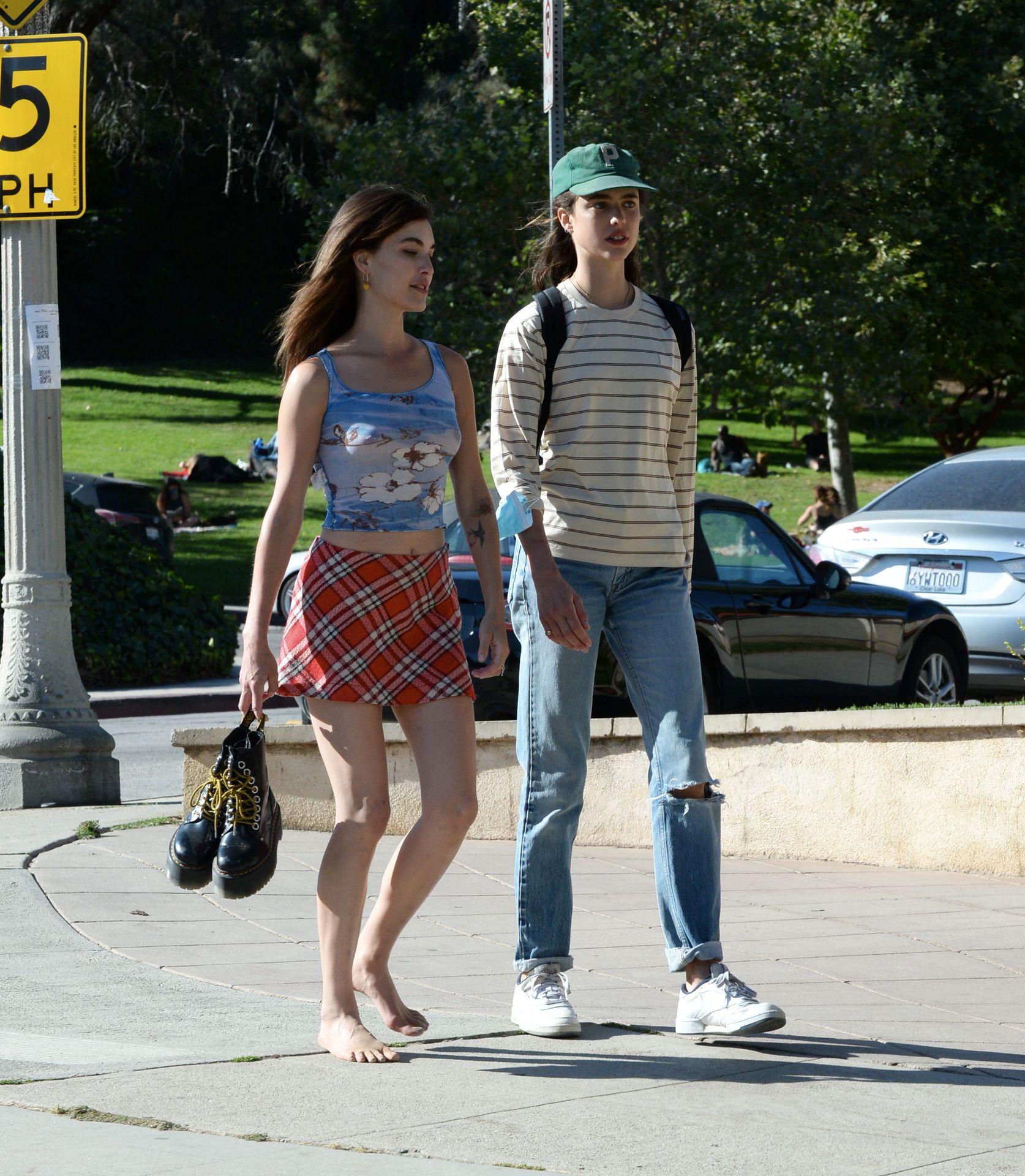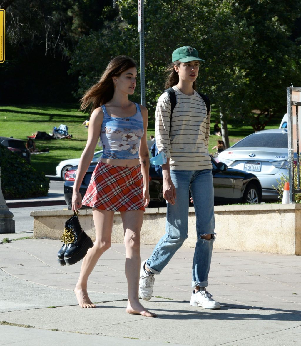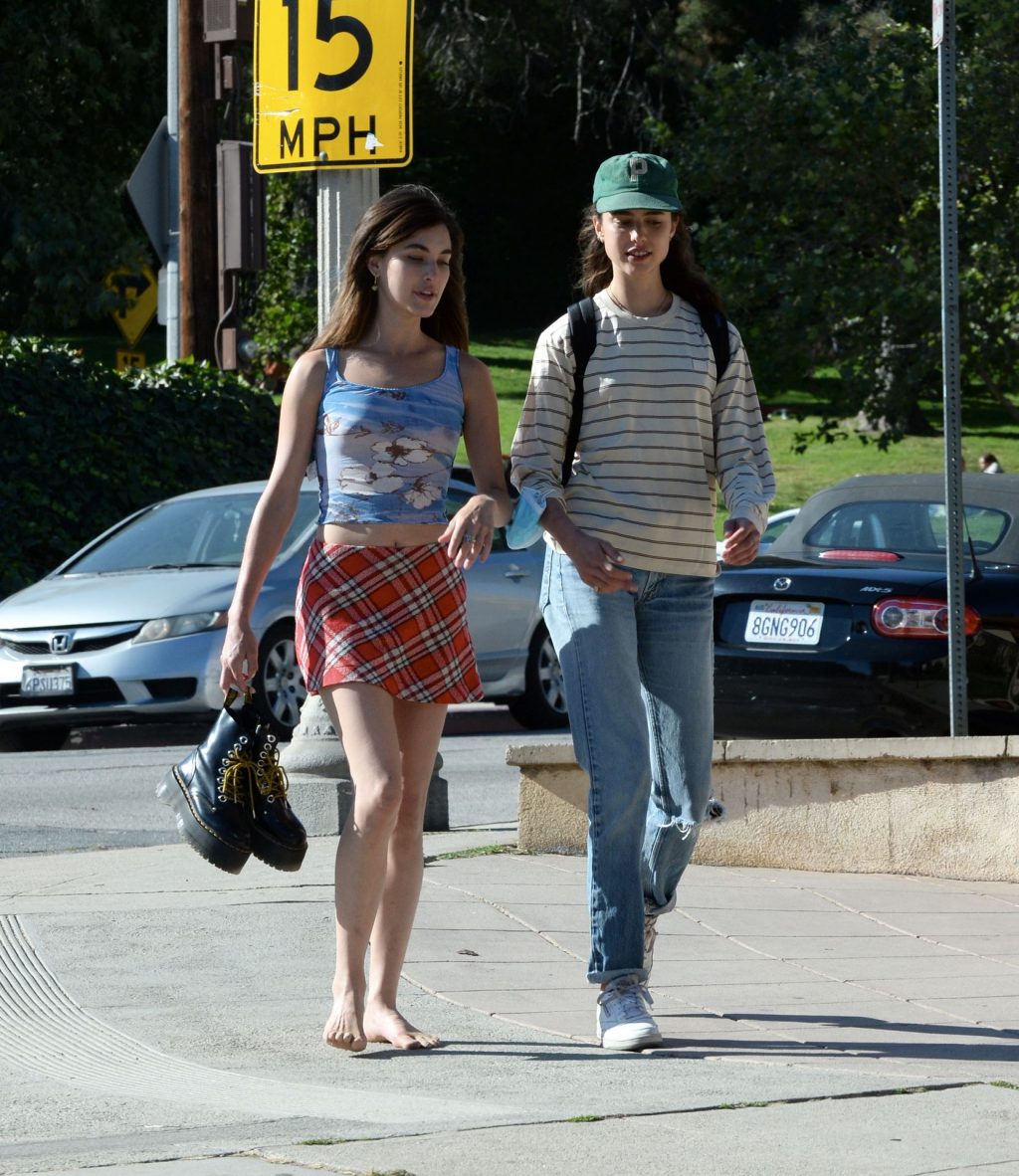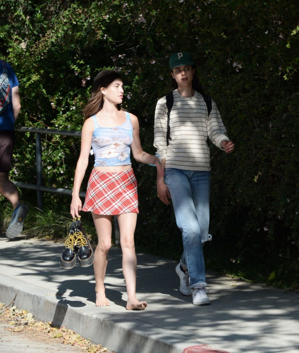 Margaret Qualley foi vista passeando com sua irmã Rainey, que mostrou seus seios sem sutiã em Silverlake, Los Angeles, 13/06/2020.