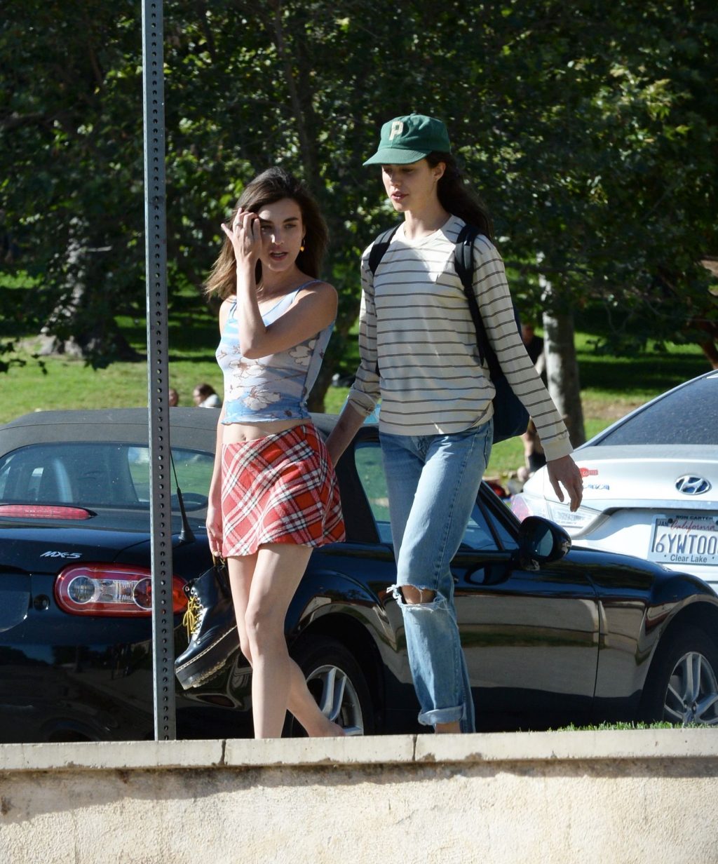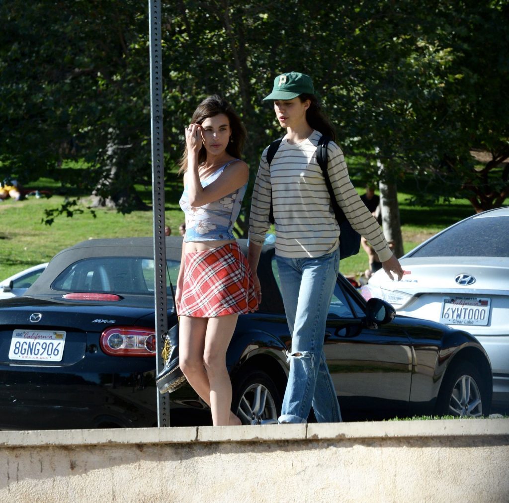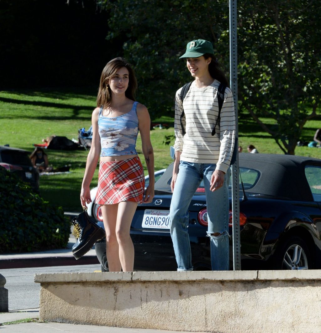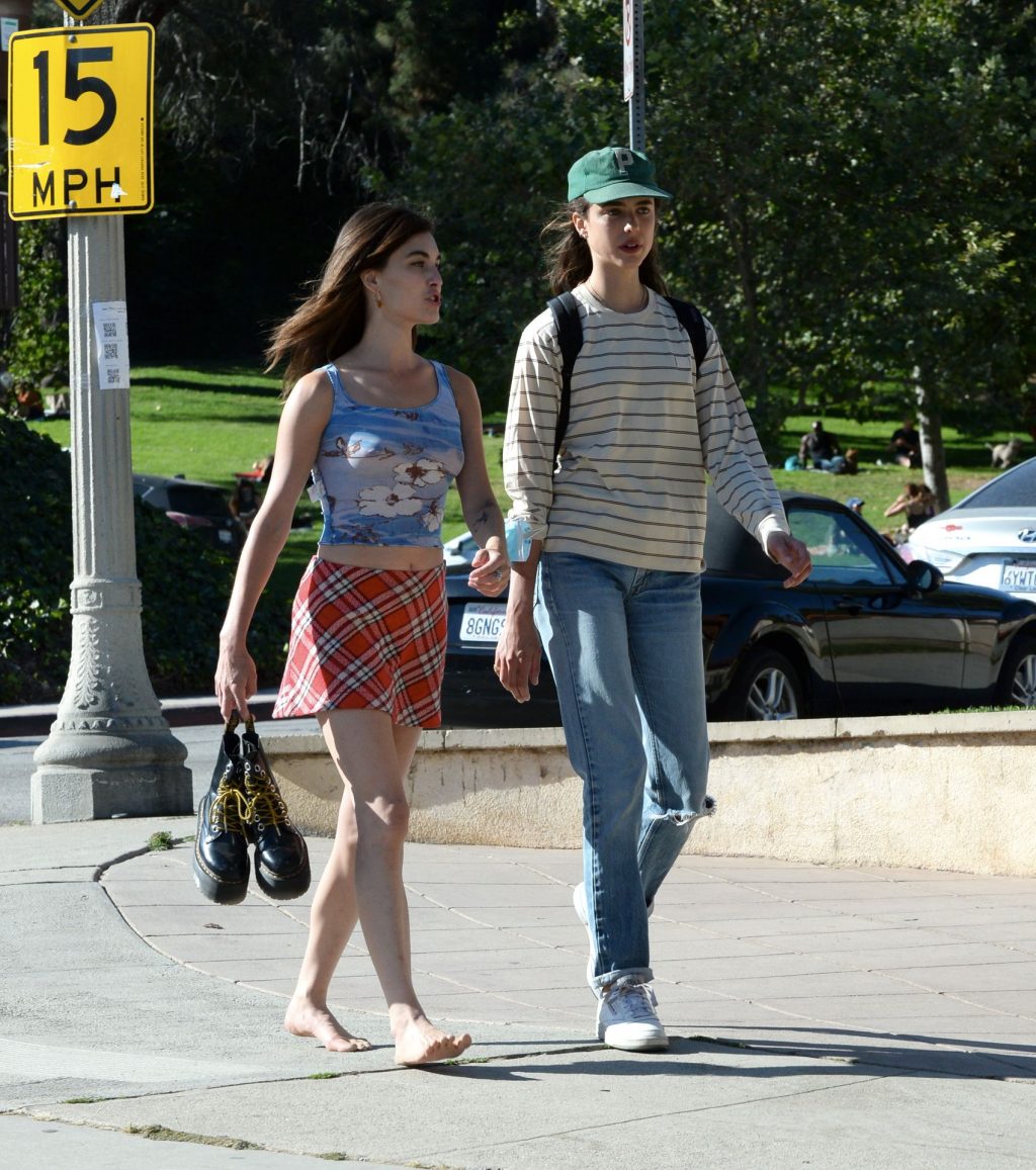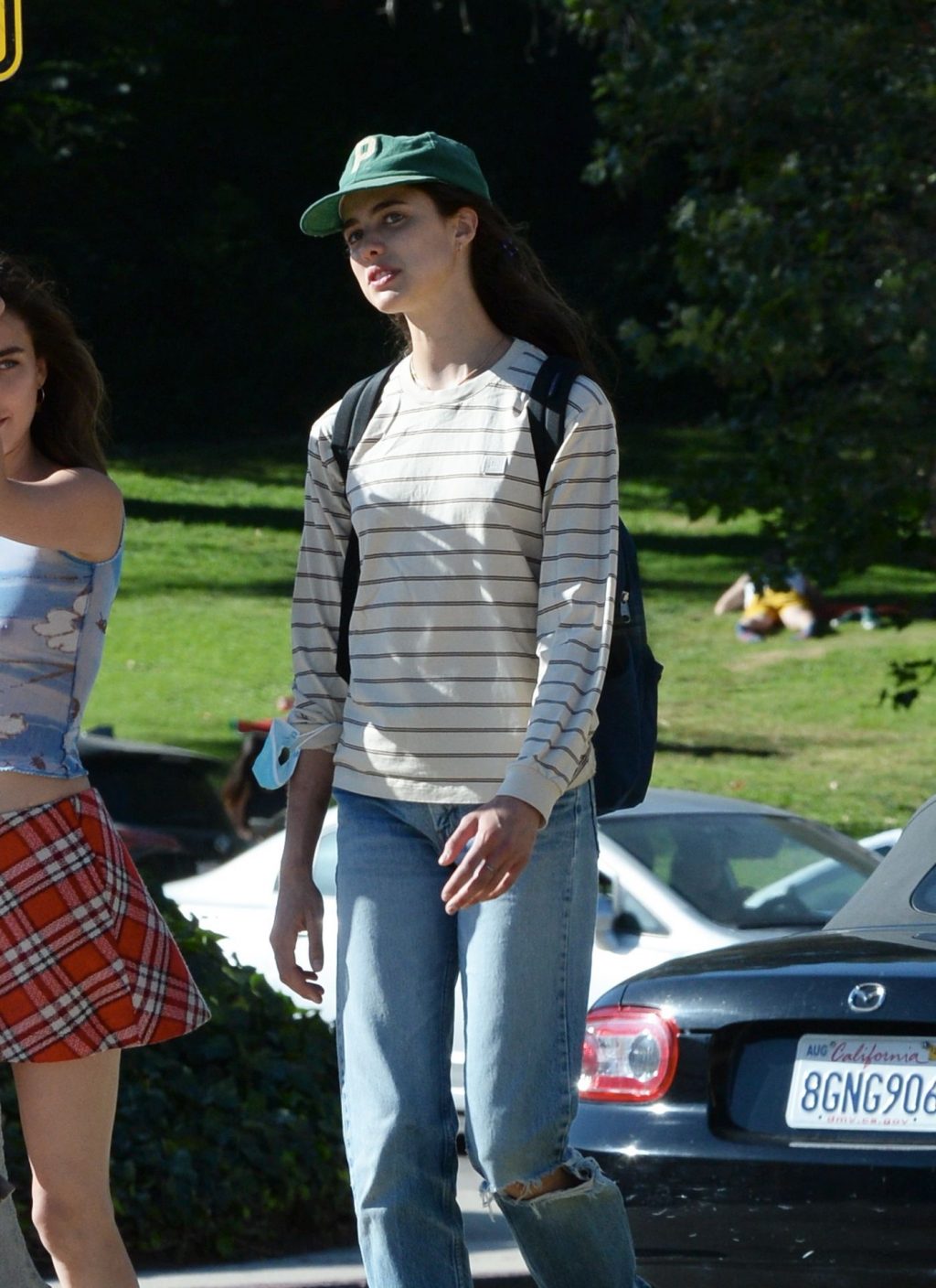 Margaret Qualley foi vista passeando com sua irmã Rainey, que mostrou seus seios sem sutiã em Silverlake, Los Angeles, 13/06/2020.