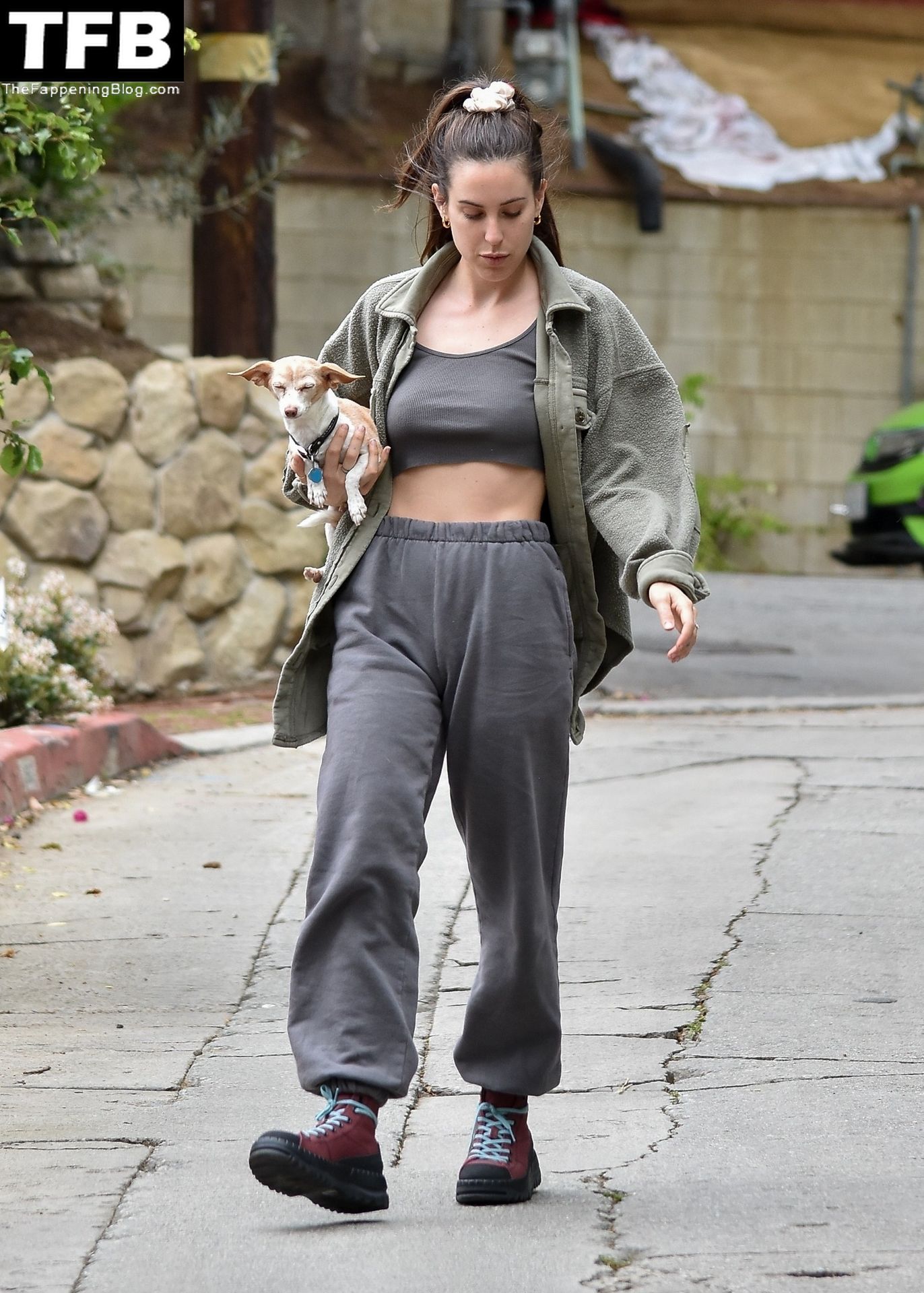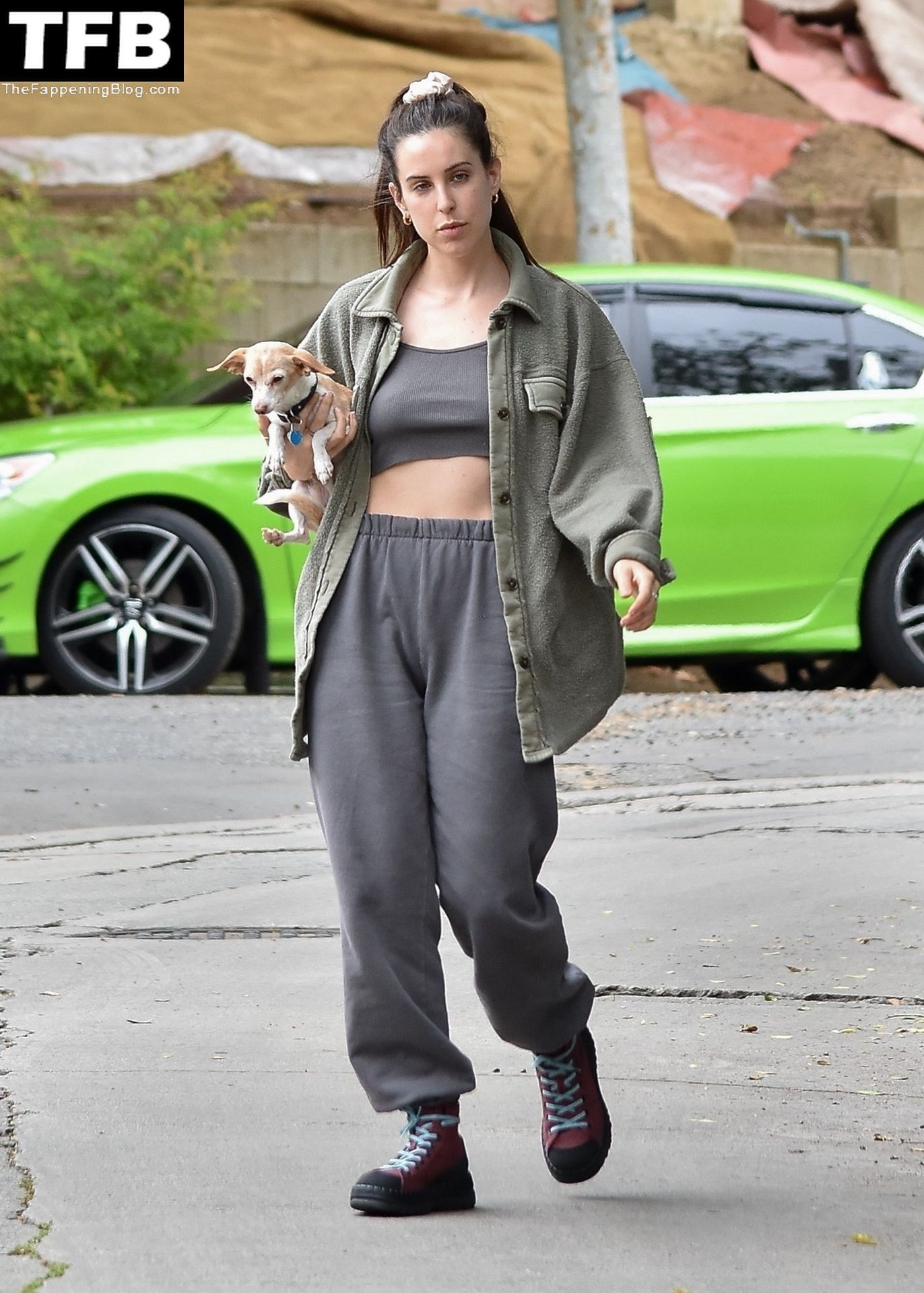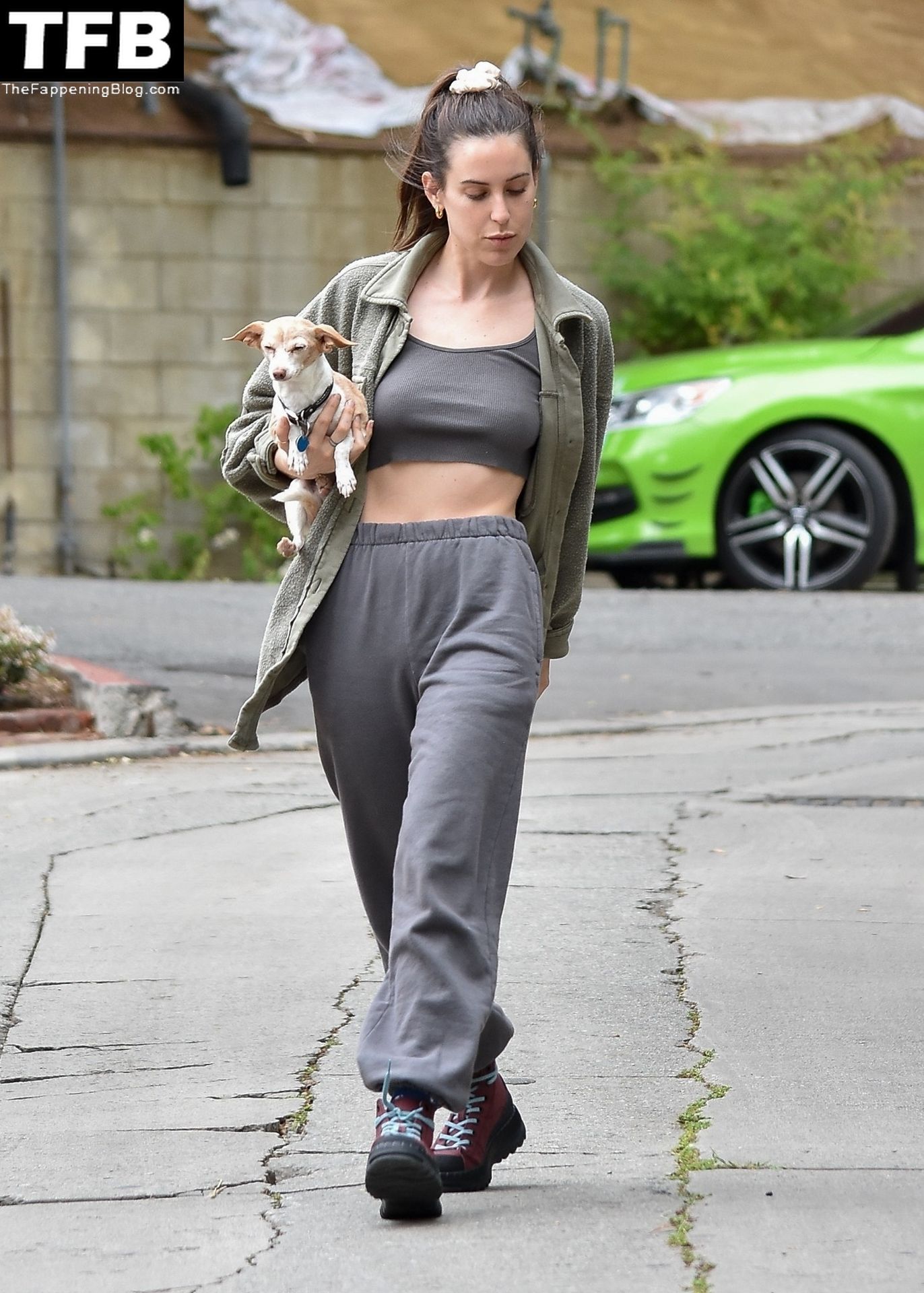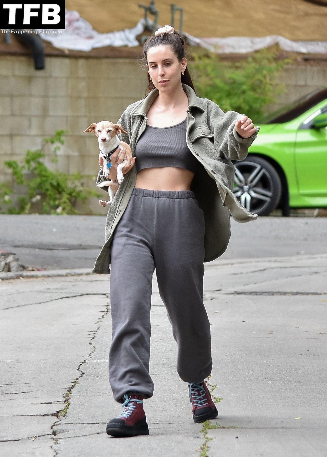 A atriz Scout Willis exibe sua barriga firme visitando uma amiga com seu cachorro Grandma em Los Feliz, 31/03/2022.