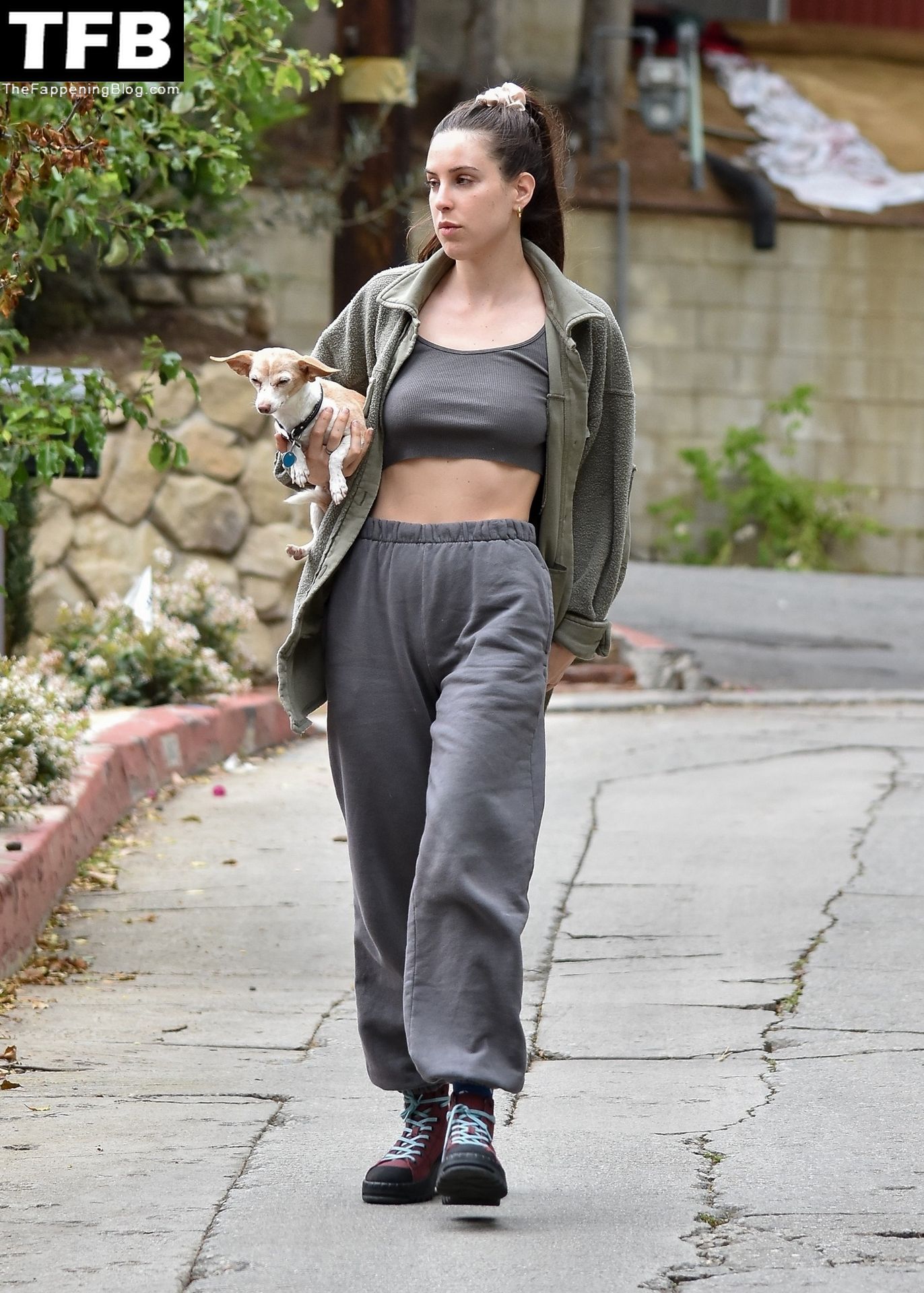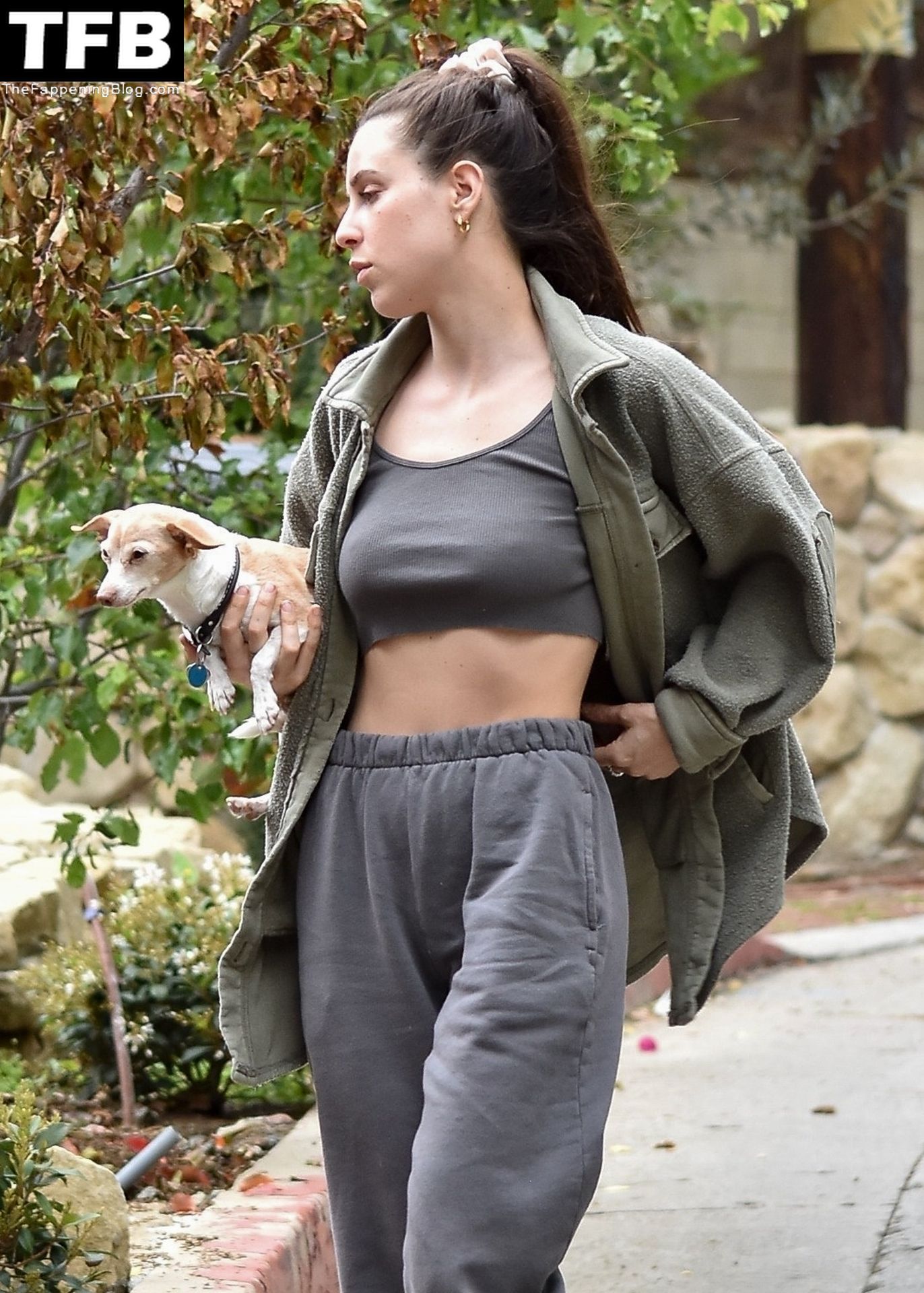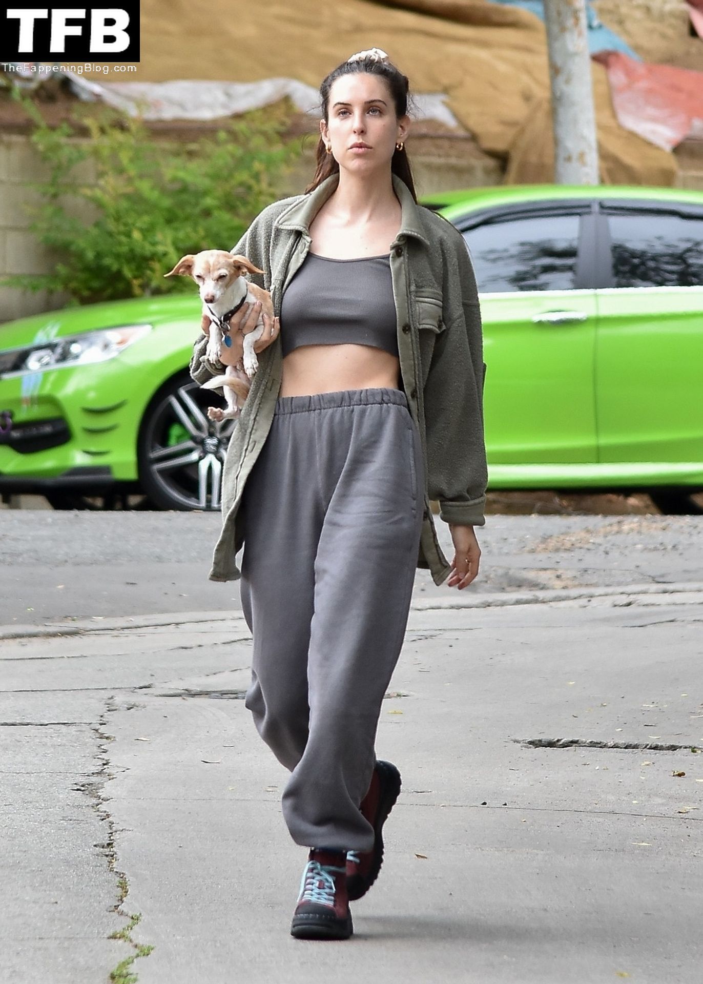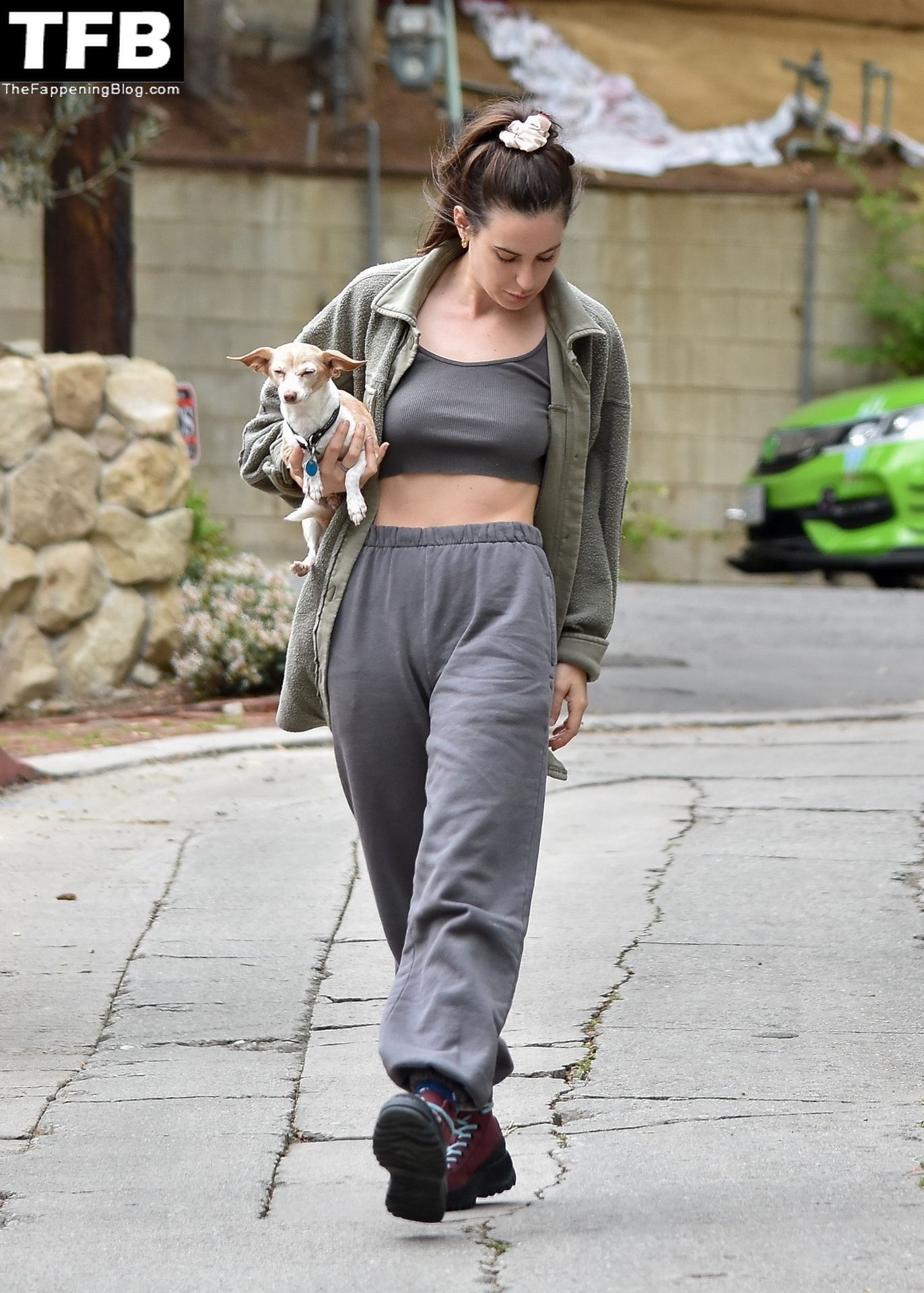 A atriz Scout Willis exibe sua barriga firme visitando uma amiga com seu cachorro Grandma em Los Feliz, 31/03/2022.