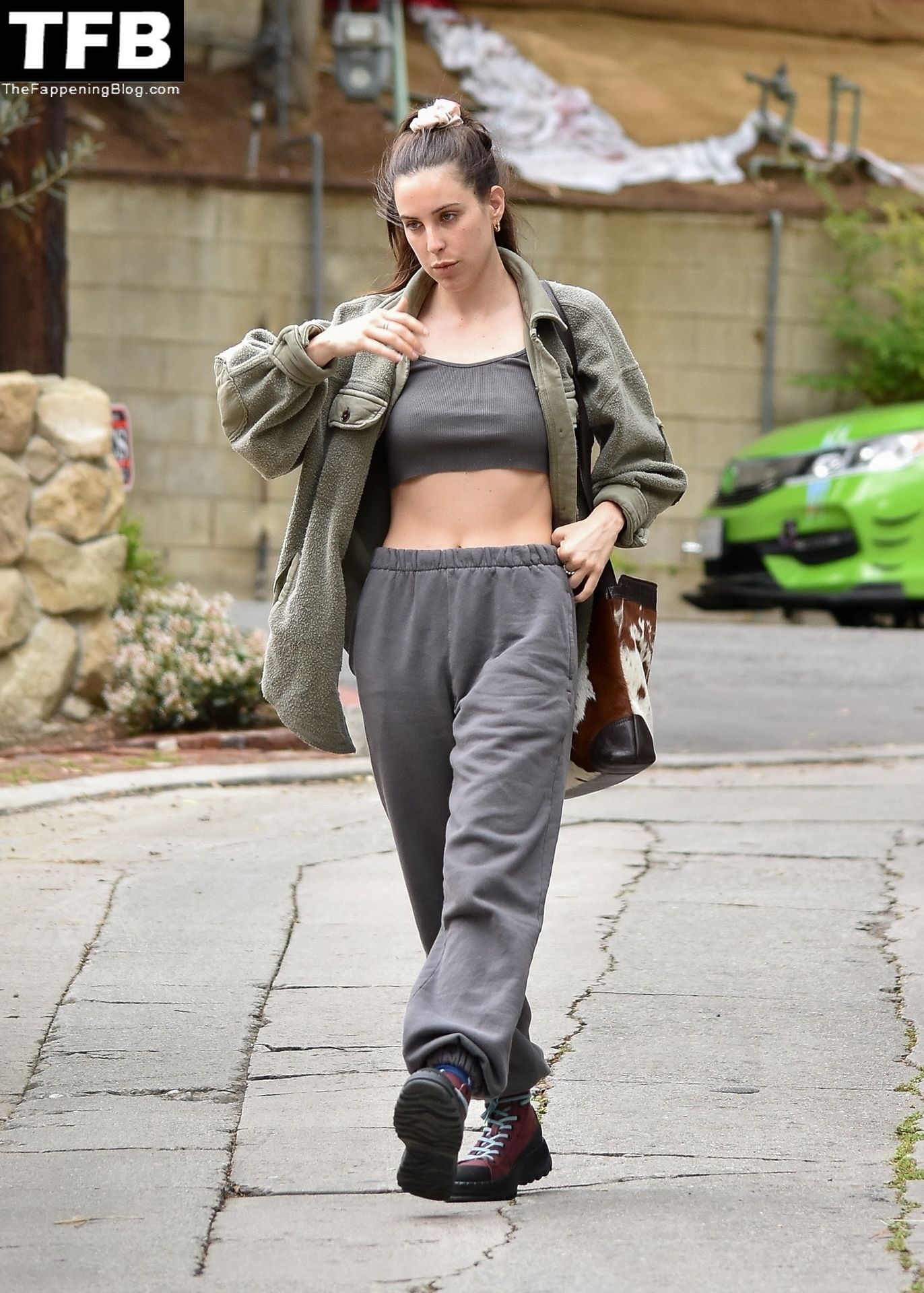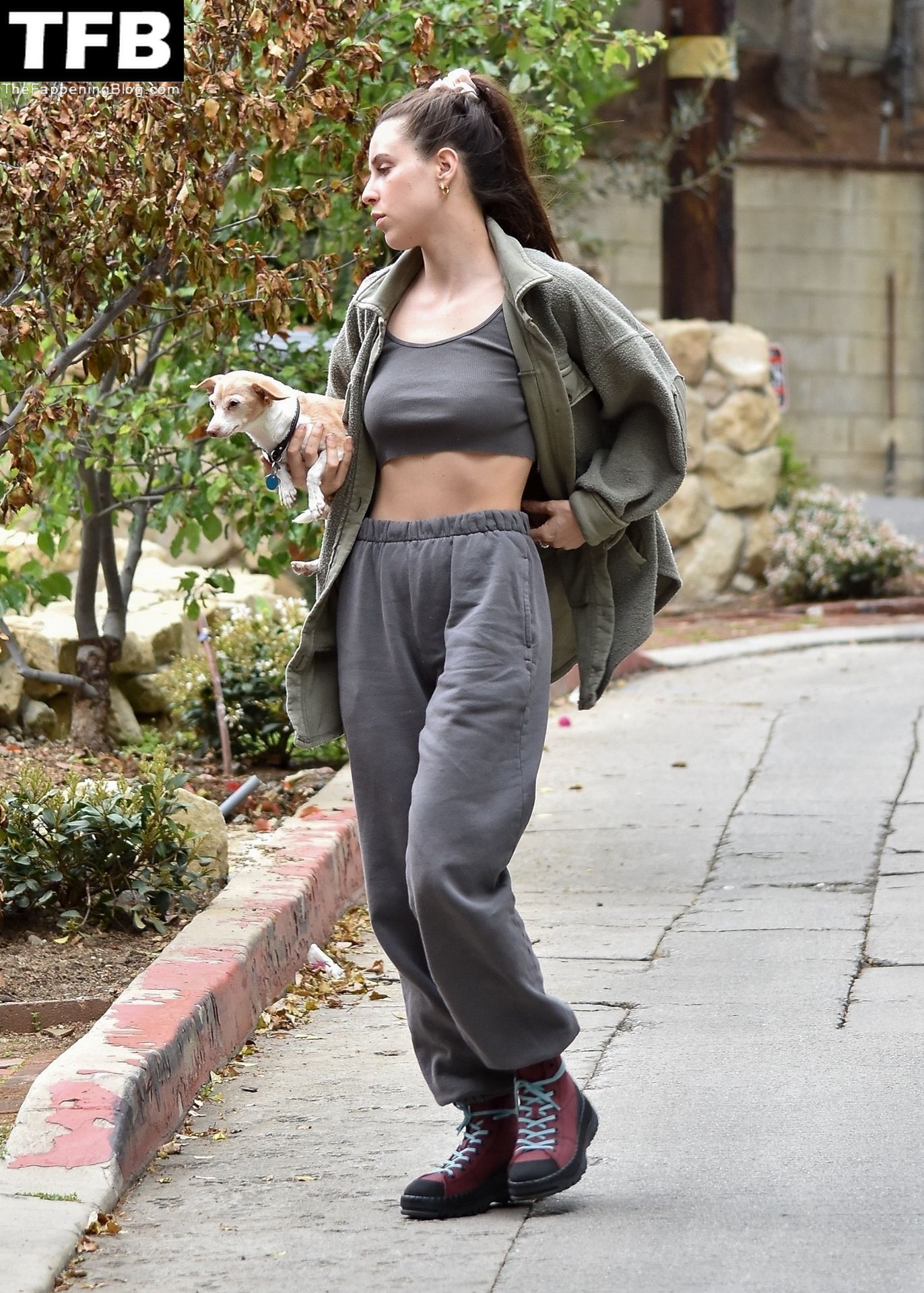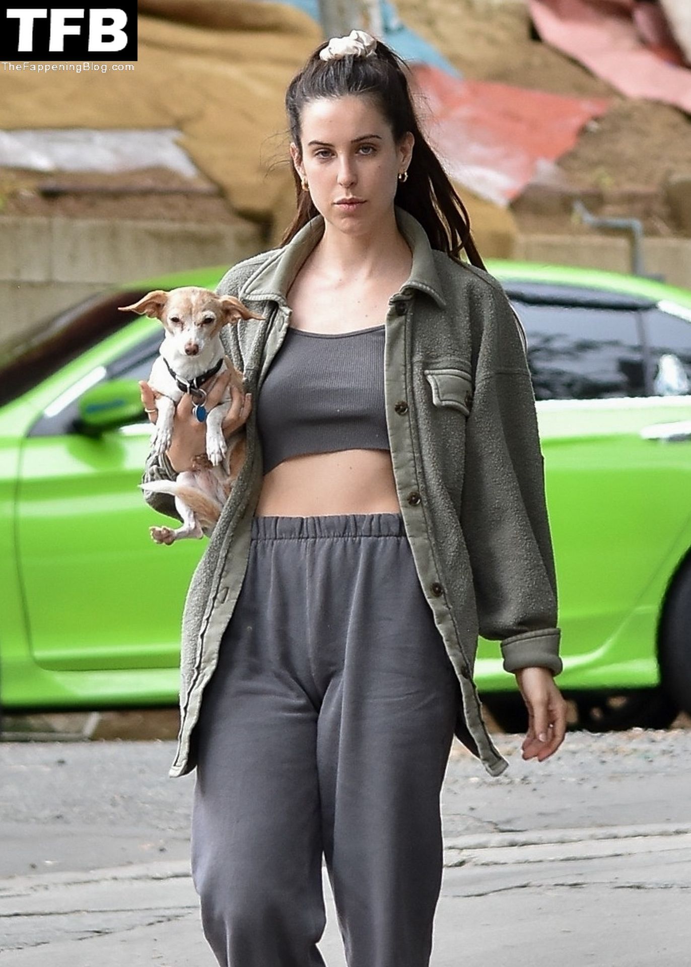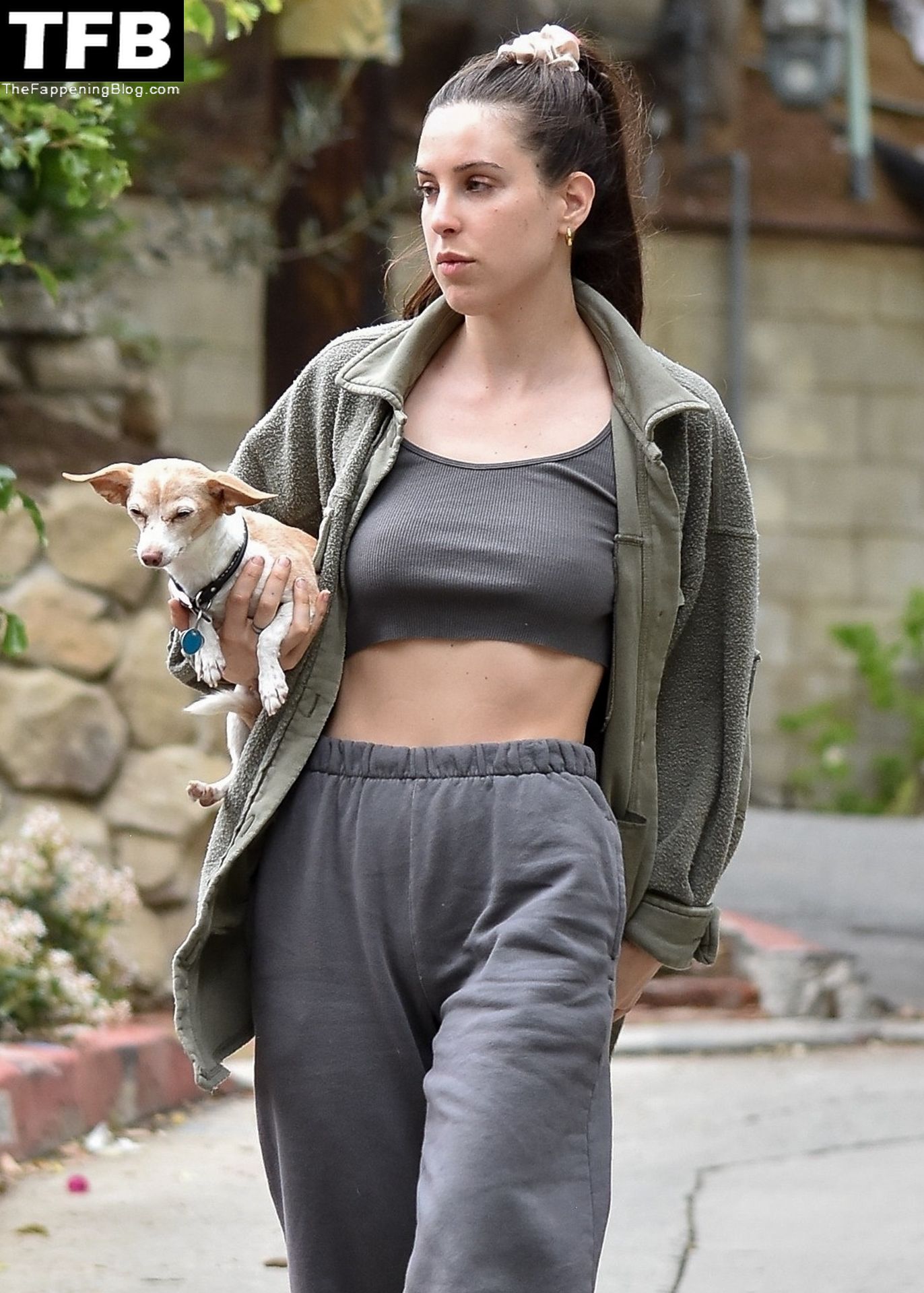 A atriz Scout Willis exibe sua barriga firme visitando uma amiga com seu cachorro Grandma em Los Feliz, 31/03/2022.