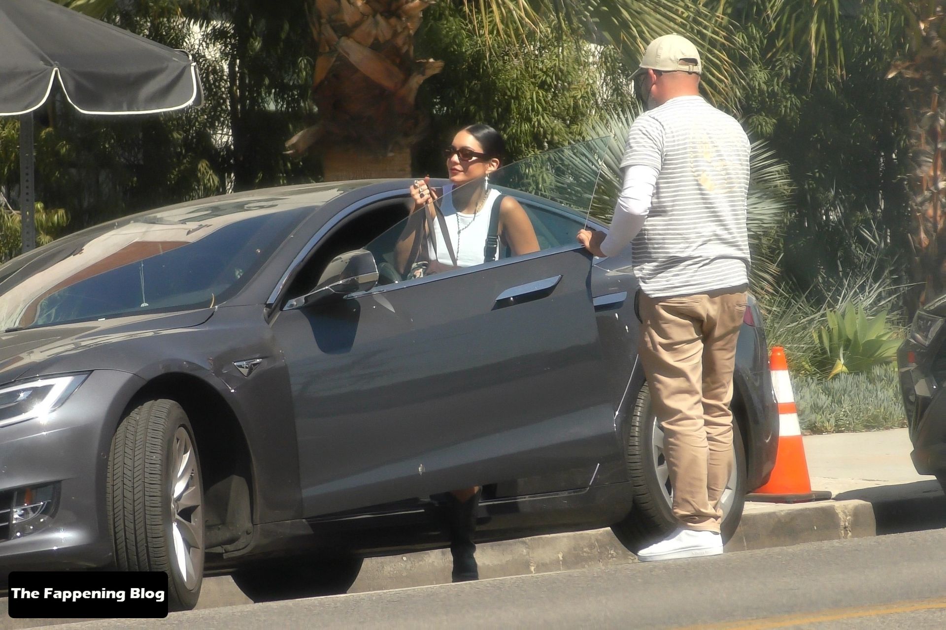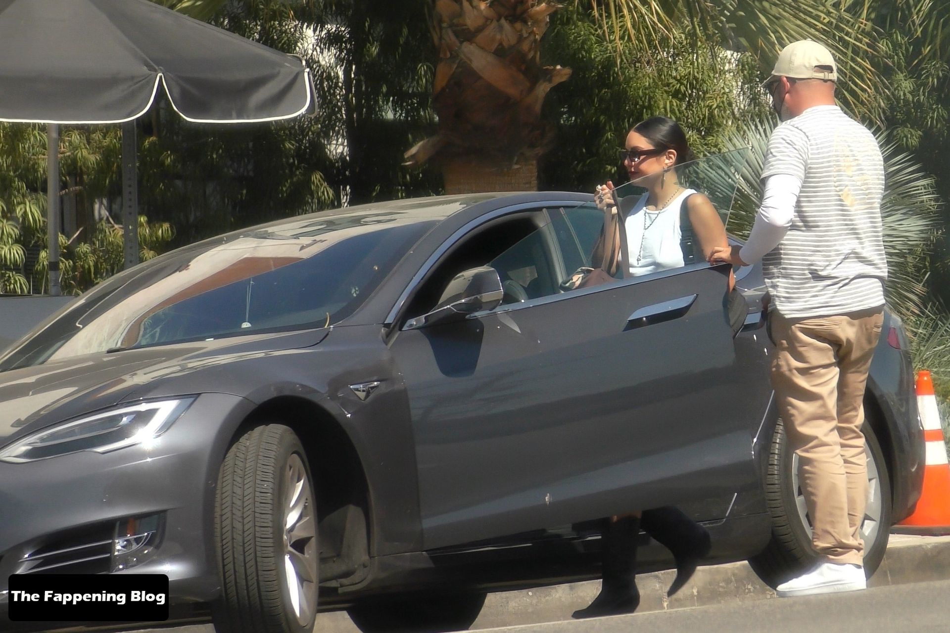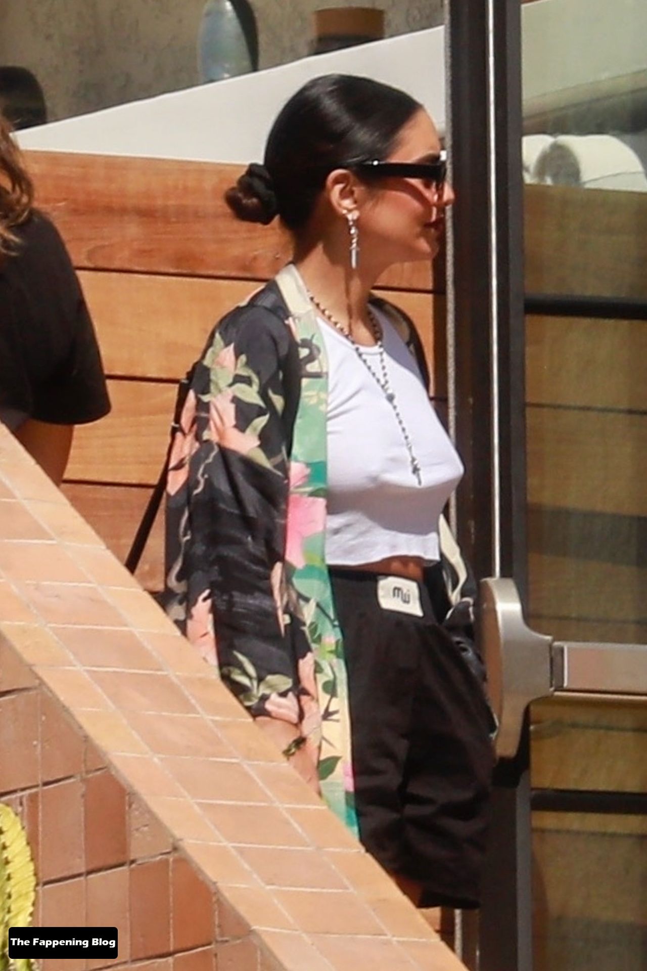 Vanessa Hudgens sem sutiã passa a tarde com uma amiga no Hotel Marco Polo, 01/10/2021.