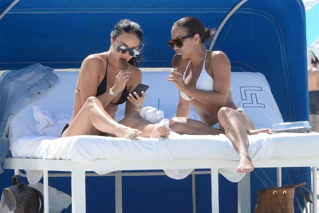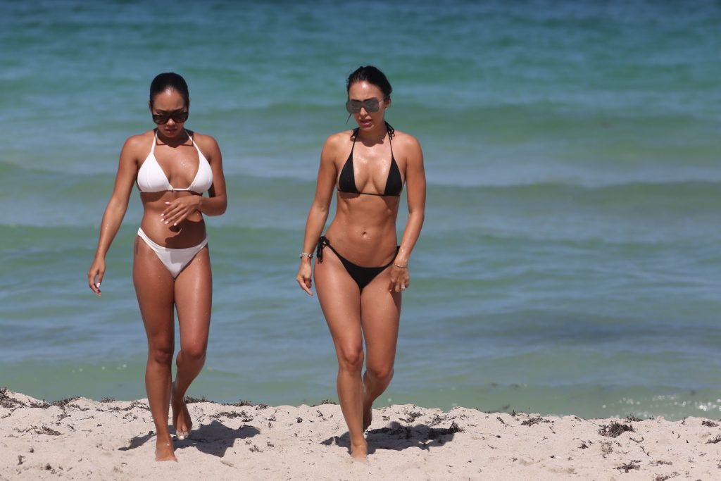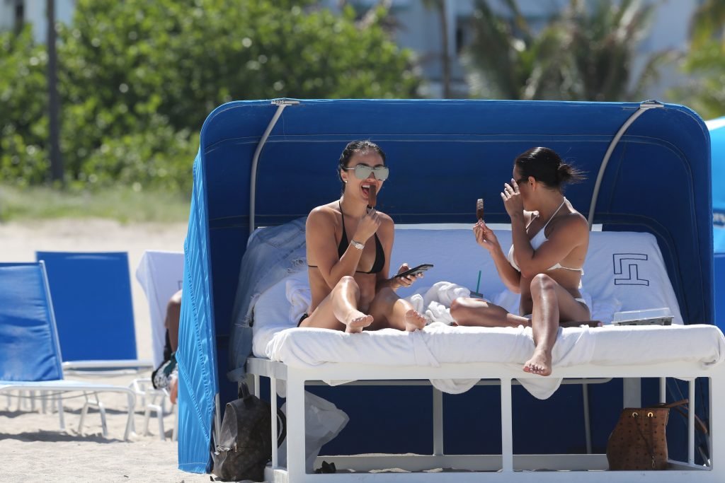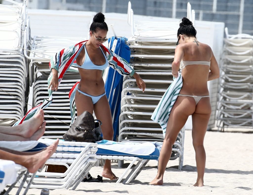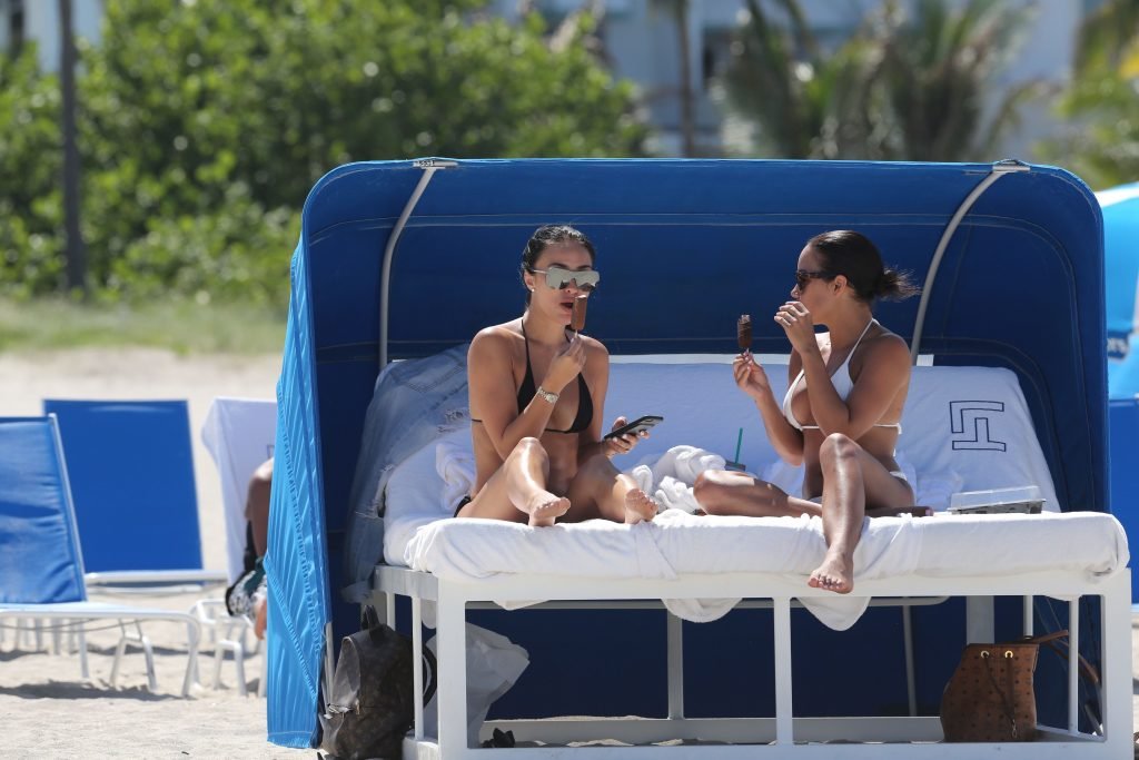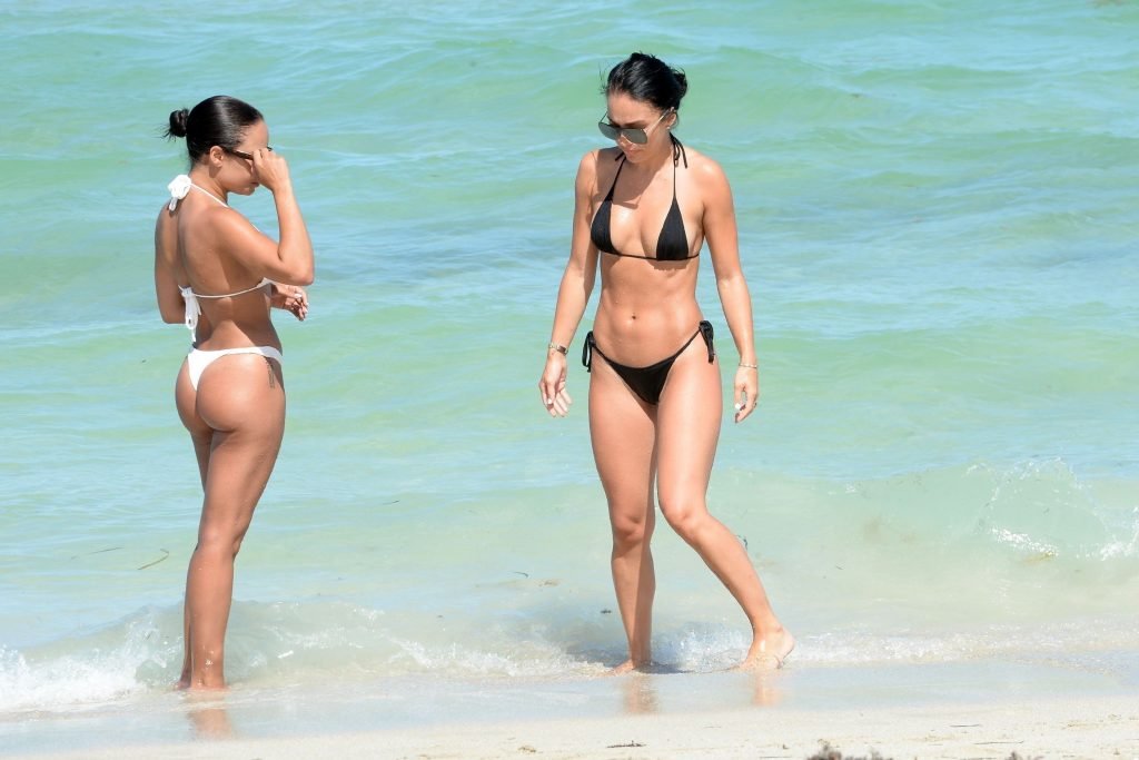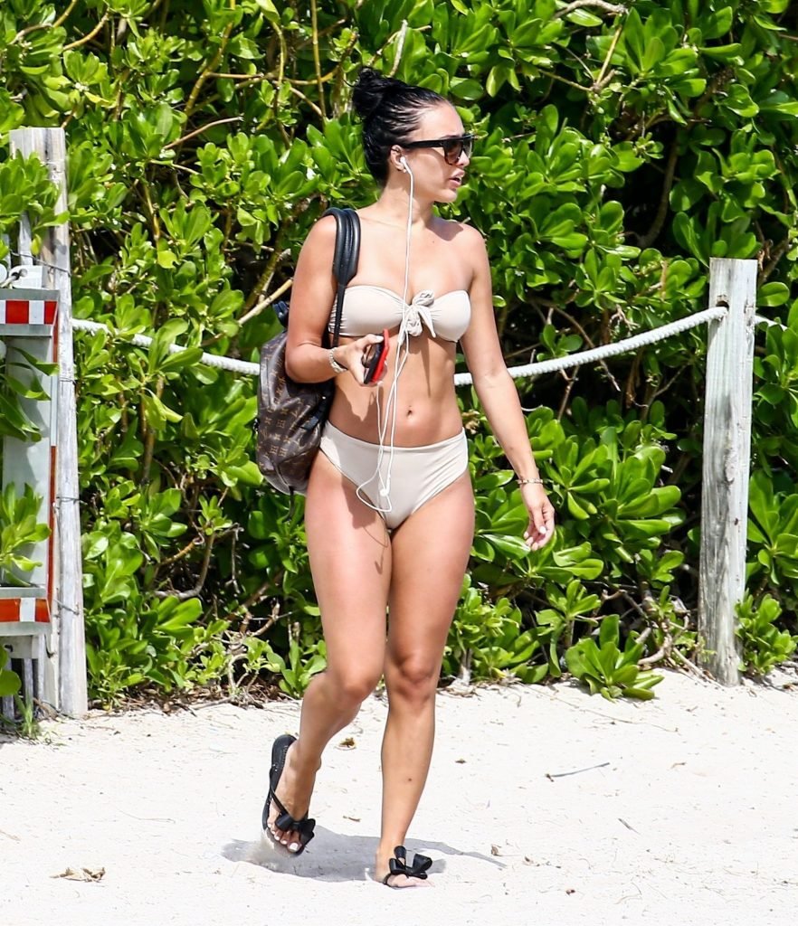 Bre Tiesi, que está noiva do ex-jogador da NFL Johnny Manziel, envolvido em escândalos, exibiu seu corpo de biquíni na praia em Miami, 15/06/2017. Bre Tiesi é uma modelo americana. Idade: 26.