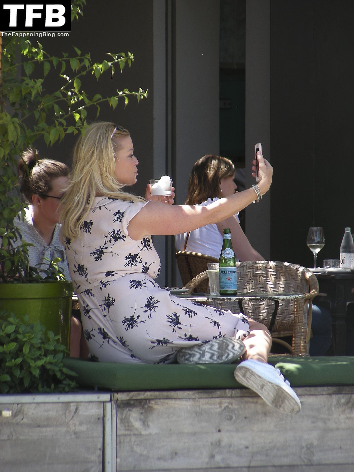 A apresentadora de TV holandesa Bridget Maasland mostra sua calcinha no Beach Bar em Barcelona, Espanha, 18/06/2017.